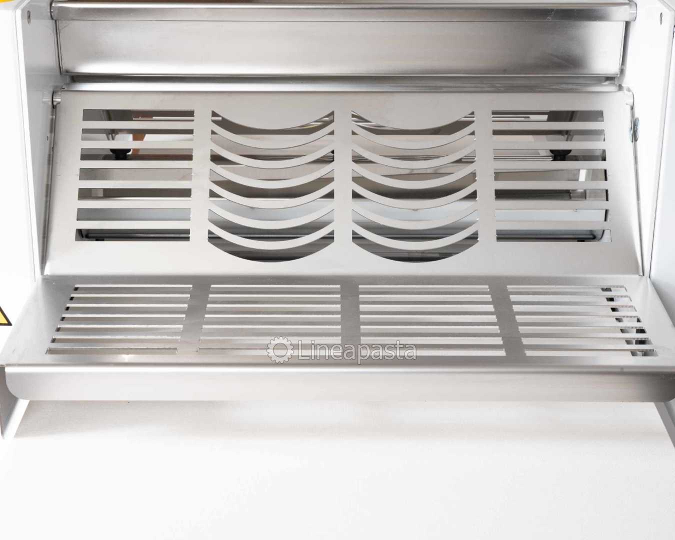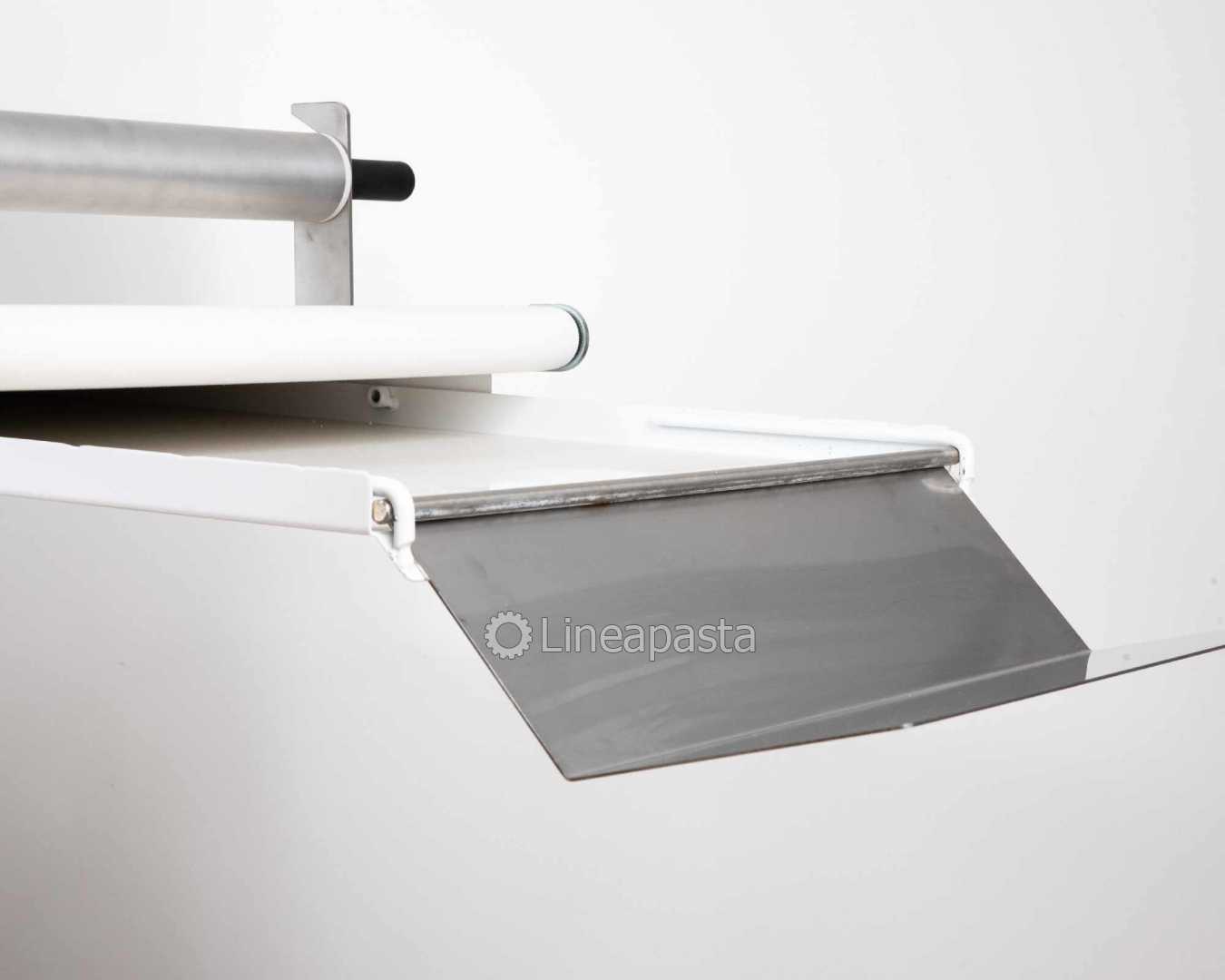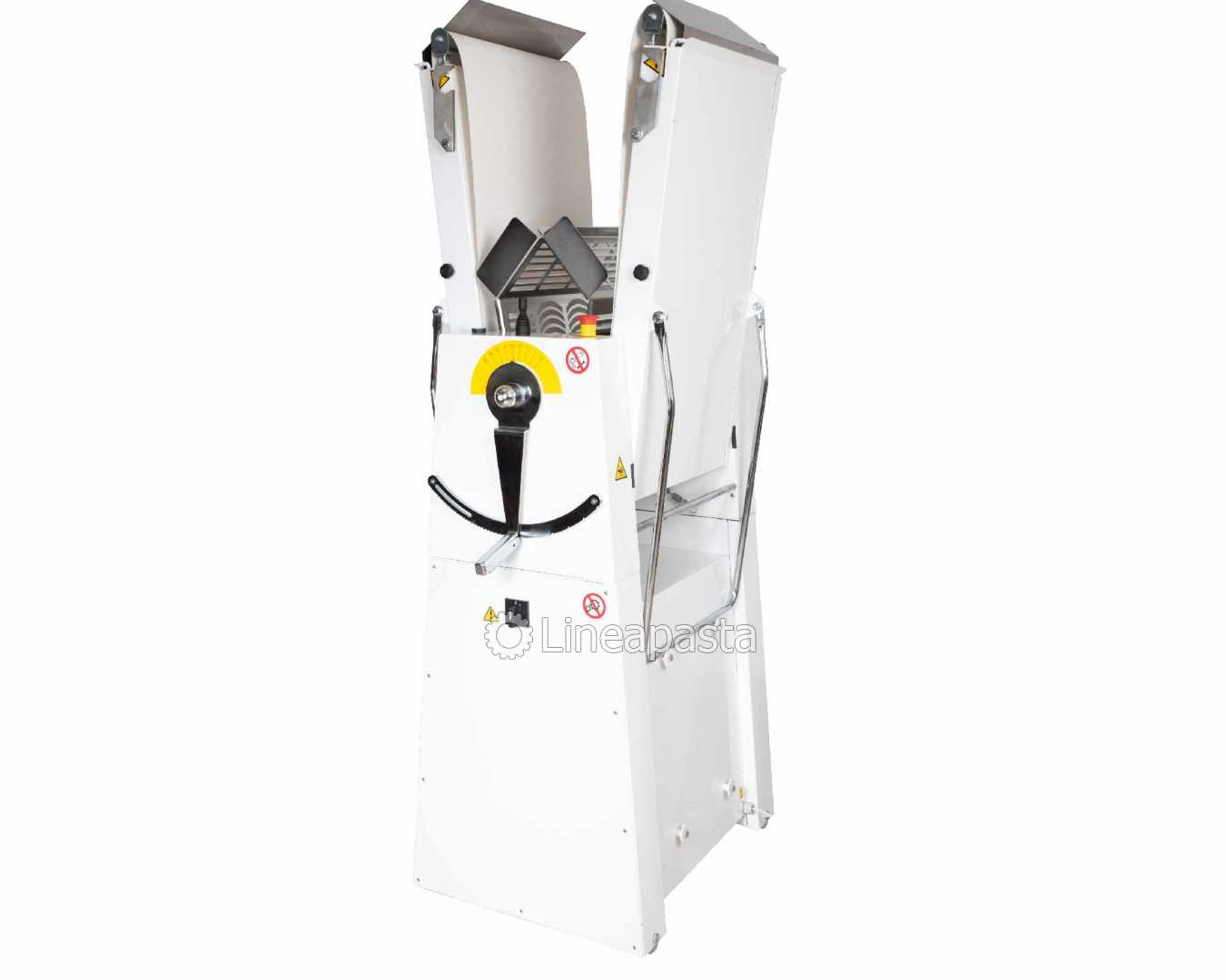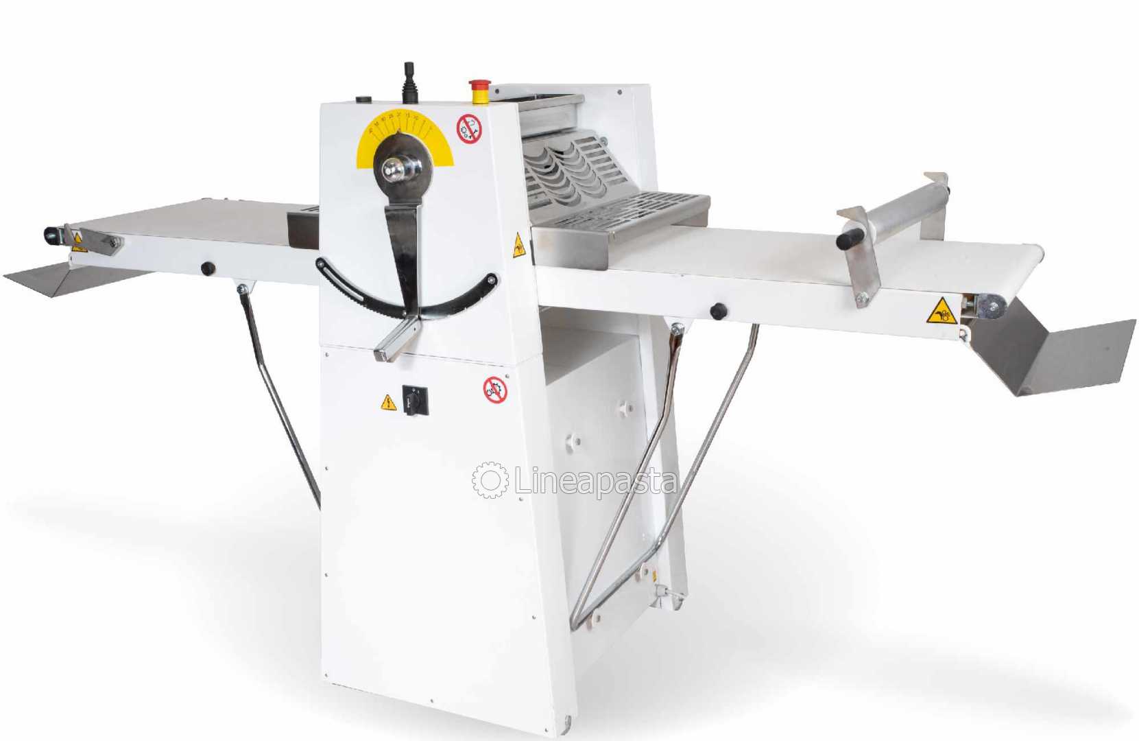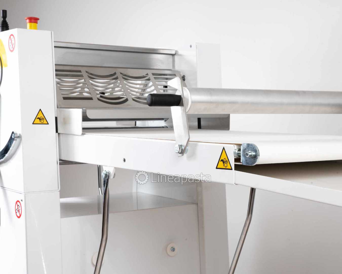 The SE 500 sheeter is a sheeter equipped with 500mm cylinders suitable for the production of dough sheeter both for pastry shops and restaurants, designed for easy use and for a long life. The SE 500 dough sheeter is available in 3 versions depending on the length of the tables: 700mm, 1000mm, 1200mm. It can work different types of pasta with adjustable thickness, up to obtaining very thin thicknesses. It is also equipped with conveyor belts with different speeds, operated by joysticks. The structure of the dough sheeter is in painted steel, and is mounted on wheels to facilitate the movement of the machine. It is equipped with a stainless steel safety guard with electric lock.