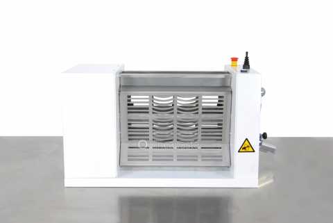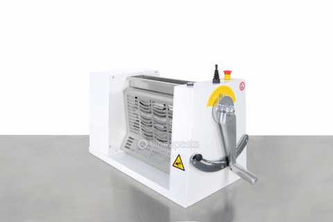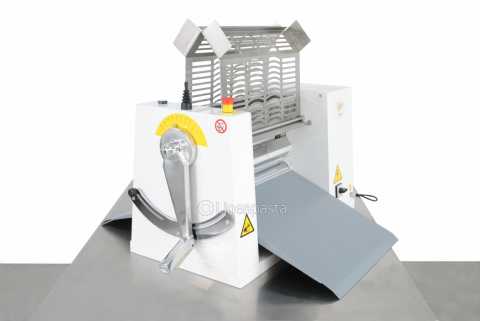 The SE 500ST sheeter is a sheeter without belts with 500mm cylinders and which works with two inclined teflon tables. It has been designed and engineered to reduce dough pastry sheet to the most suitable thickness for use in pastry and pizzeria. When working with sugarpaste and shortcrust pastry, it is not recommended to reach too thin thickness as the dough may break. The SE 500ST sheeter is robust, resistant, compact and easy to use. It is also equipped with a flour basin.
