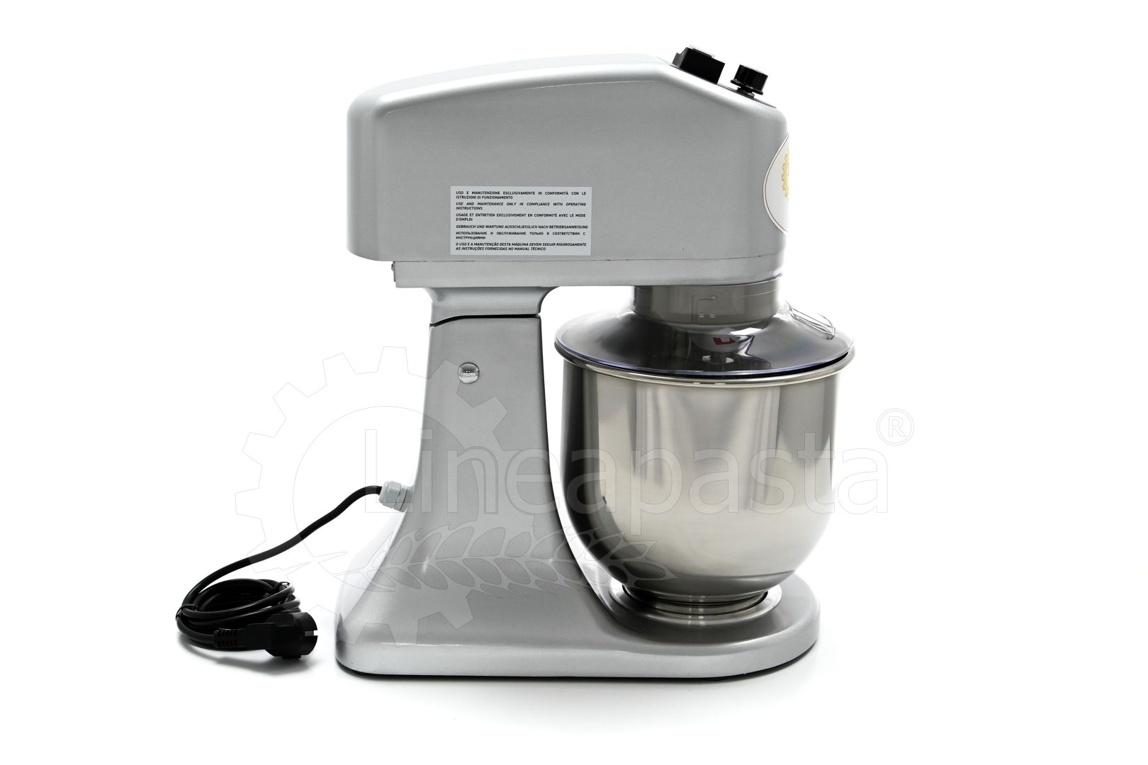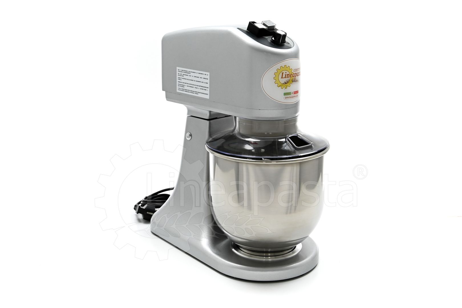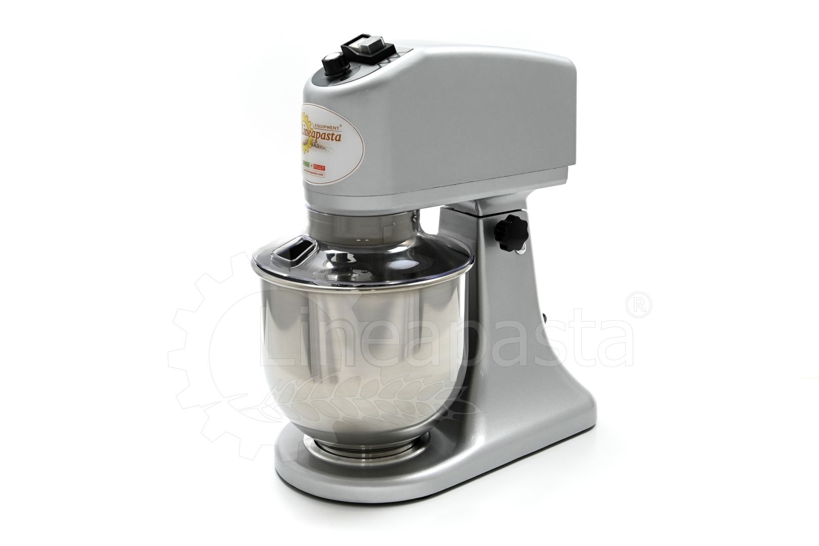 The planetary mixer IP 7 is suitable for the preparation of soft and medium-consistency dough like bread and pasta. Built entirely of metal, the IP 7 model is equipped with a removable stainless steel vat of 7 liters, an NVR device and micro switches for adjusting the speed placed on the head lift. The planetary kneader IP 7 is equipped with a reclining head, useful to facilitate the replacement of tools and the cleaning of the machinery, while the CC motor is equipped with a speed variator and a gear transmission lubricated with grease, that allow the whip to perform up to 75 revolutions per minute. Together with the planetary mixer IP 7 are included three interchangeable accessories suitable for dough processing: a whisk, a spatula and an aluminum hook.