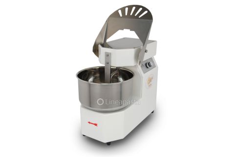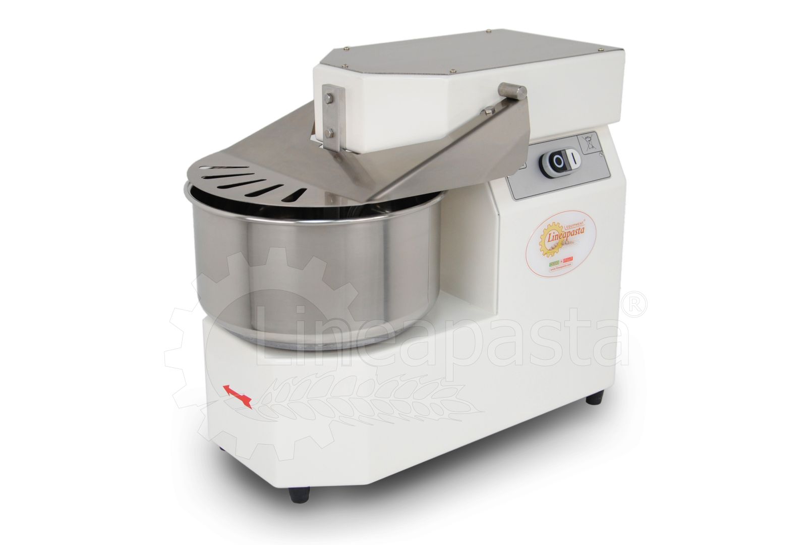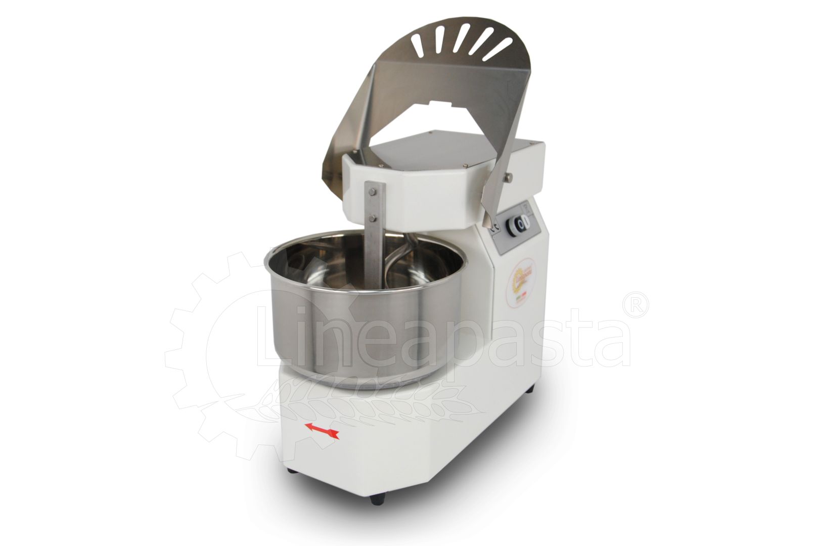 The spiral kneader IS 15 inverter is a kneader equipped with a stainless steel 304 tank with kneading capacity up to 8 kg. This machine is equipped with a spiral, a tank protection and a column "split dough" stainless steel suitable for food contact and designed to withstand strong stresses. The transmission takes place with chains and belt, in such a way as to eliminate both the need to lubricate the mechanical parts with oil and the tedious noises and expensive maintenance. The machine is equipped with a control panel and a start button, as well as a protection with micron blocking for user safety. In particular, this version is equipped with an inverter that allows you to adjust the speed through a potentiometer, up to a maximum of 6.50 beats per minute (tank/spiral ratio). The inverter spiral kneader is a machine suitable for processing ingredients such as flour, sugar, fat, salt, yeast etc. for the production of dough for bread and pizza (suitable for high hydration dough, from 65% water).