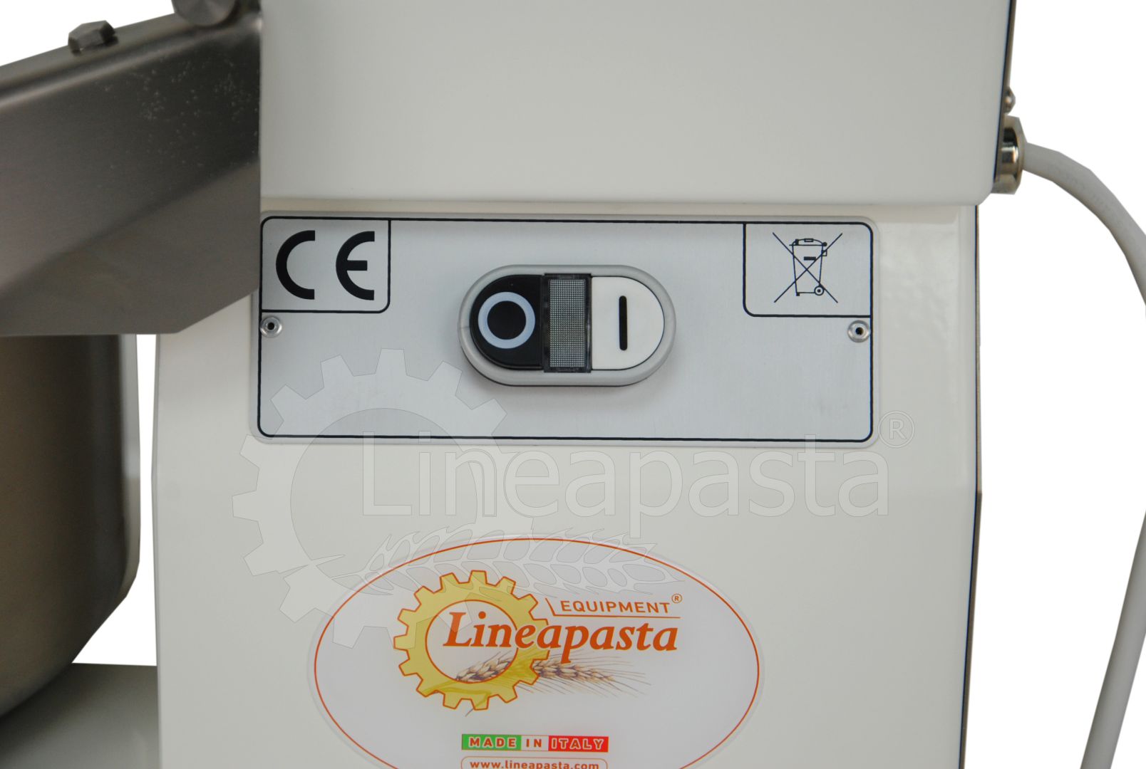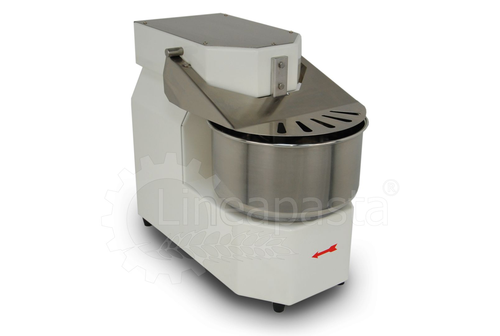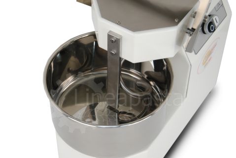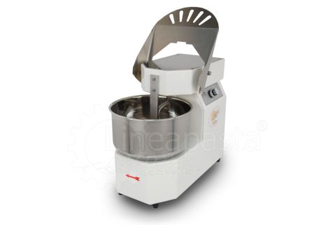 The spiral kneader IS 20 inverter is a kneader equipped with a stainless steel 304 tank with kneading capacity up to 17 kg. This machine is equipped with a spiral, a tank protection and a column "split dough" stainless steel suitable for food contact and designed to withstand strong stresses. The transmission takes place with chains and belt, in such a way as to eliminate both the need to lubricate the mechanical parts with oil and the tedious noises and expensive maintenance. The machine is equipped with a control panel and a start button, as well as a protection with micron blocking for user safety. In particular, this version is equipped with an inverter that allows you to adjust the speed through a potentiometer, up to a maximum of 8.50 beats per minute (tank/spiral ratio). The inverter spiral kneader is a machine suitable for processing ingredients such as flour, sugar, fat, salt, yeast etc. for the production of dough for bread and pizza (suitable for high hydration dough, from 65% water).