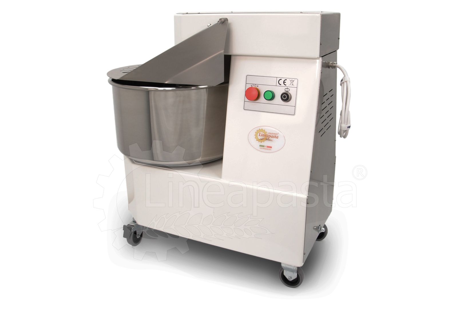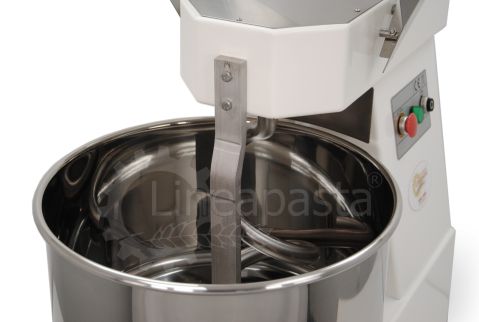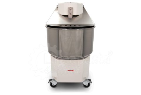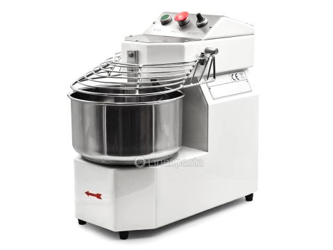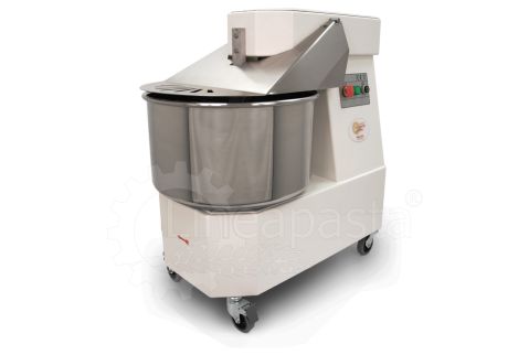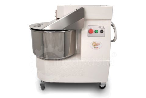 The spiral kneader IS 40 inverter is a kneader equipped with a stainless steel 304 tank with kneading capacity up to 35 kg. This machine is equipped with a spiral, a tank protection and a column "split dough" stainless steel suitable for food contact and designed to withstand strong stresses. The transmission takes place with chains and belt, in such a way as to eliminate both the need to lubricate the mechanical parts with oil and the tedious noises and expensive maintenance. The machine is equipped with a control panel and a start button, as well as a protection with micron blocking for user safety. In particular, this version is equipped with an inverter that allows you to adjust the speed through a potentiometer, up to a maximum of 8.50 beats per minute (tank/spiral ratio). The inverter spiral kneader is a machine suitable for processing ingredients such as flour, sugar, fat, salt, yeast etc. for the production of dough for bread and pizza (suitable for high hydration dough, from 65% water).