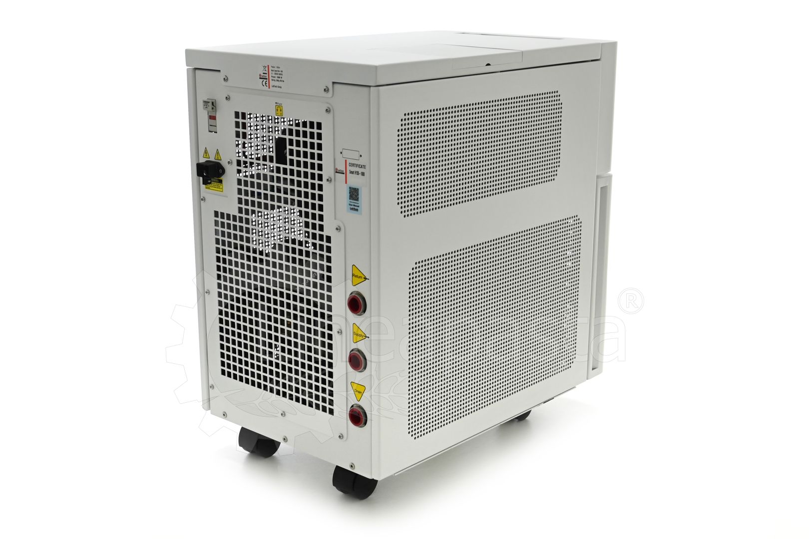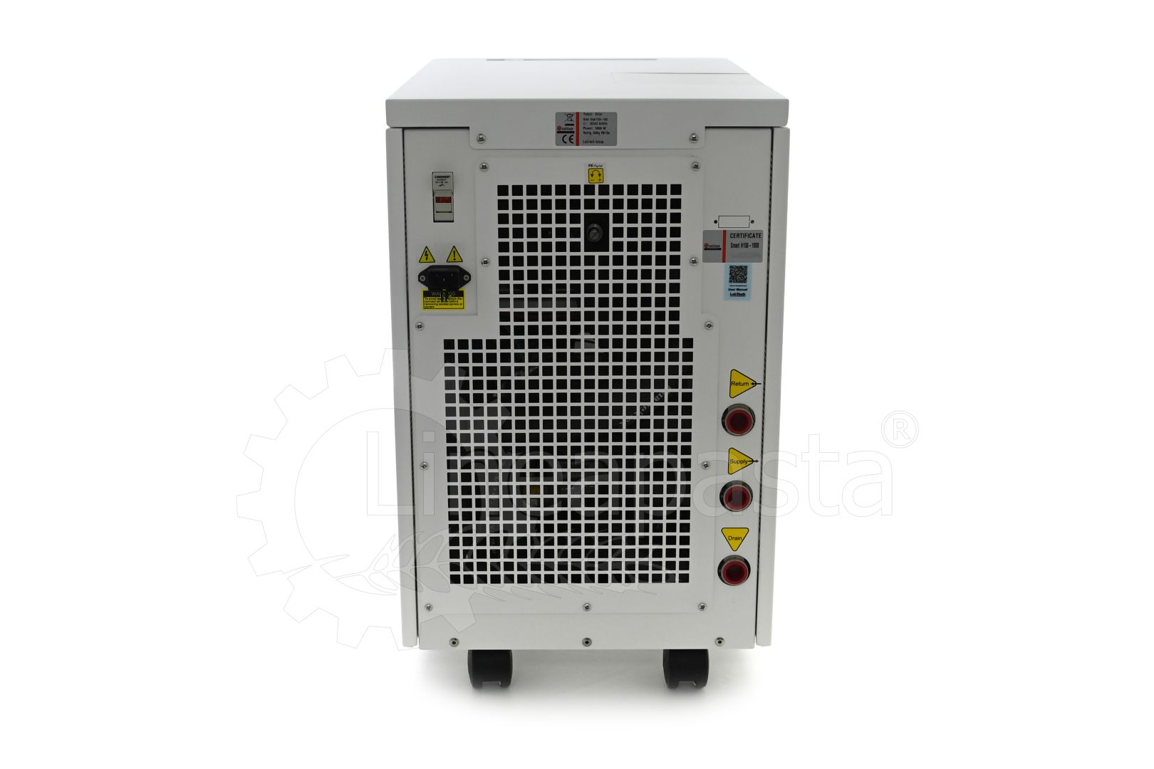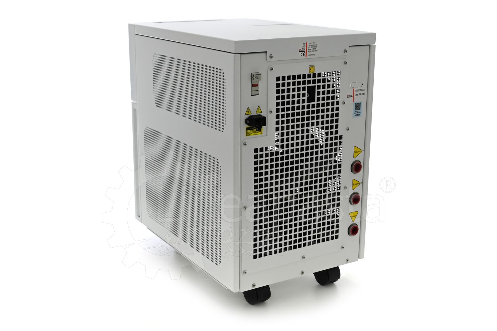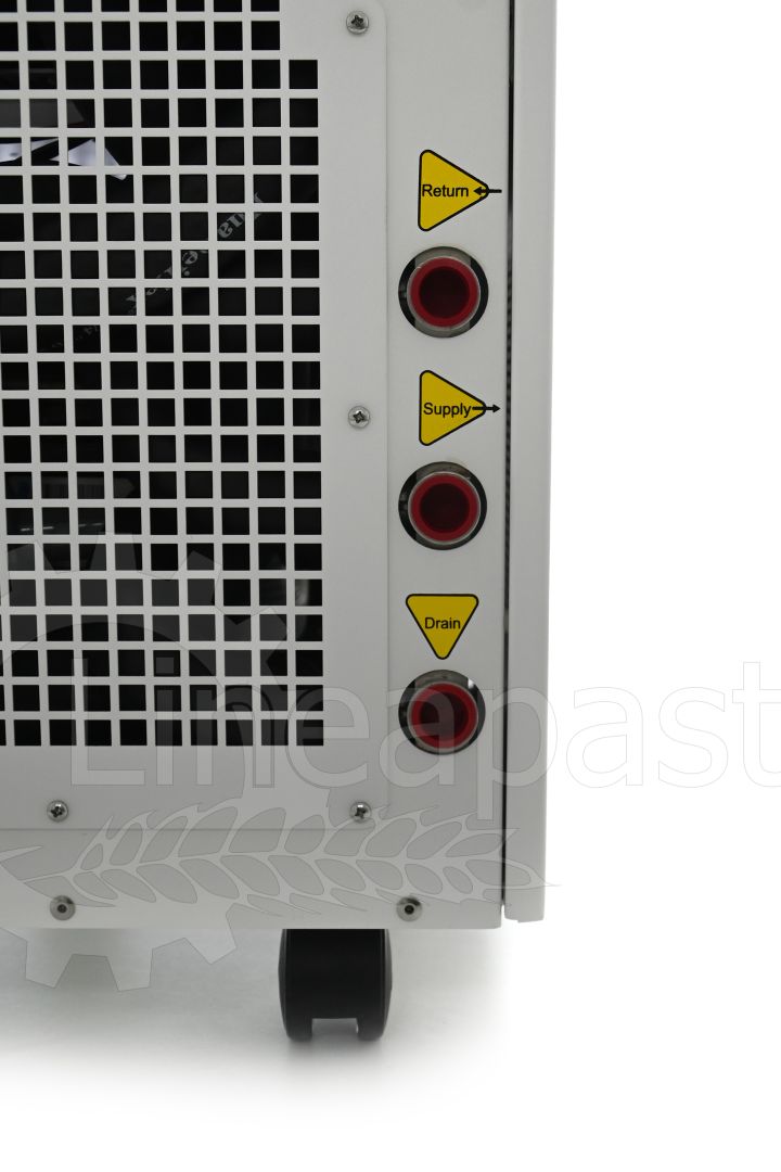 The H150-1000N closed-loop chiller enables the cooling of water entering the extrusion cylinder of machines prepared for the installation of a cooling system. The device will save in water consumption and, by creating a continuous flow of cooled water to the machine cylinder, make the extrusion operation more homogeneous, preventing the overheating of the die. Using semiconductor refrigeration technology, the chiller is extremely lightweight and offers a cooling power of 1 kW. The Labtech water chiller is a state-of-the-art product that ensures homogeneous and consistent cooling conditions; it is also conceived and designed to minimize the noise during operation thanks to the absence of a compressor. In addition to offering an excellent level of quietness, the chiller offers excellent robustness while retaining great portability and compactness. It is also reliable, user-friendly, and has an excellent price/performance ratio. The water outlet temperature ranges from +8º C to +35º C with an accuracy of ± 0,1ºC and can be controlled through the bright color LCD touch screen display. The system is equipped with an alarm device that constantly monitors the temperature and water level inside the 2,5-liter tank to ensure maximum safety and reliability during use.