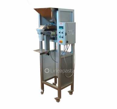 The semi-automatic small-pasta packaging machine DS Small is suitable for all small-sized granular products (pasta shapes such as stelline, risoni, etc., typically used in soups or broths). Semi-automatic packaging machine designed for a low-cost packaging management to allow small-medium-sized businesses operating in the pasta sector, such as laboratories or pasta factories, to pack pasta quickly and inexpensively. Simply load the product into the hopper at the top of the machine, set the desired packaging weight and press the product release button that will pour into the preformed bag.