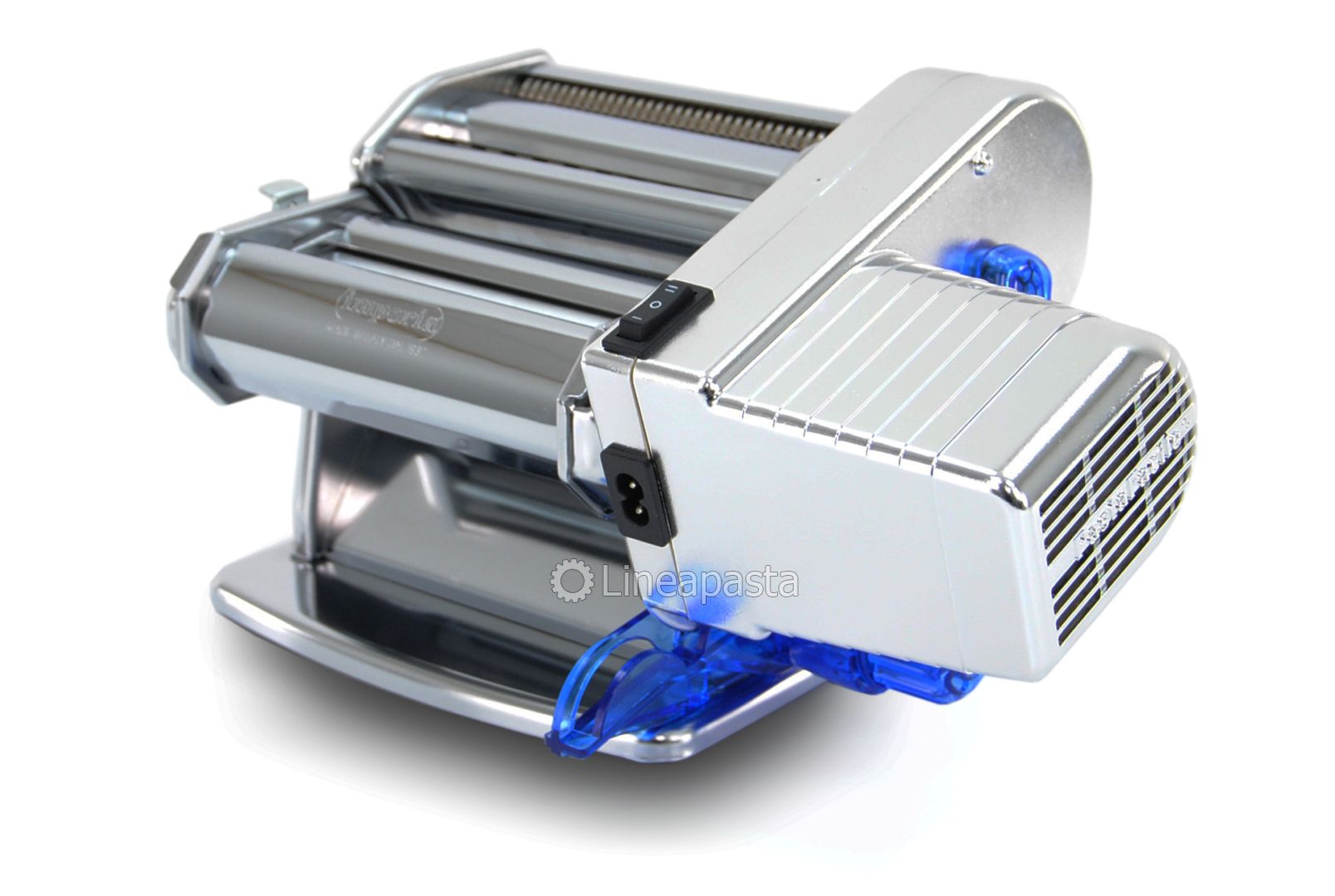 The handy motor that turns any manual pasta machine into an automatic electric one. Imperia PastaFacile, plug-in mounted on your manual pasta machine, allows you to work with both hands, making work faster. It also allows you to obtain a homogeneous sheet of pasta thanks to the constant speed of the rollers. Imperia PastaFacile has a two-speed button: one for sheet and cut pasta, the other intermittently for making ravioli (using the Imperia RavioliMaker accessory, sold separately).