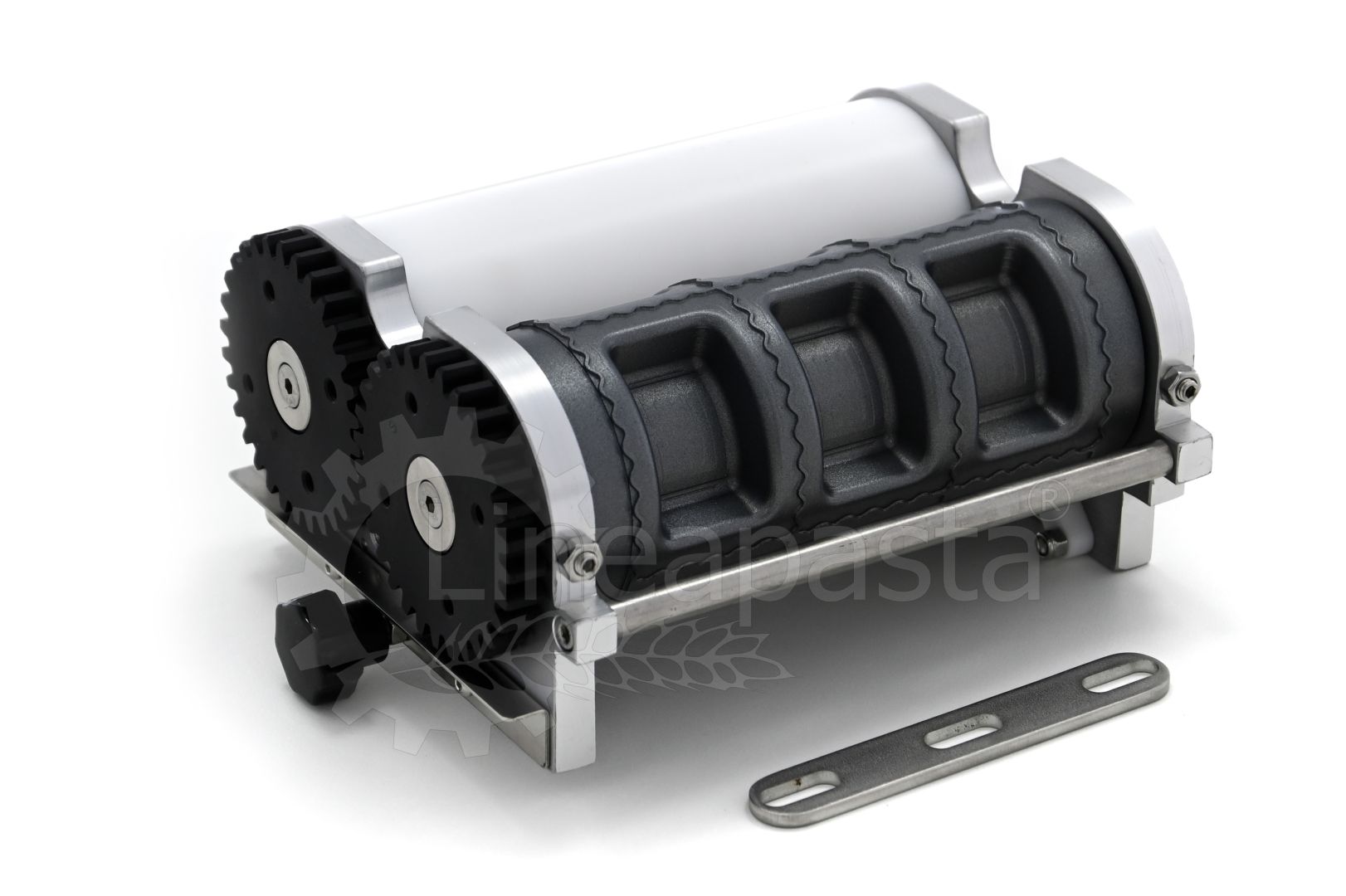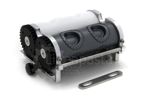 Multipasta group La Monferrina is a multifunction group that can be assembled with various machine models. It produces both double-sheet ravioli and tagliatelle thanks to interchangeable moulds; it also produces gnocchi made with potatoes in various shapes. It is fitted with an automatic filling regulation system for ravioli and an automatic pasta sheet thickness regulation system for tagliatelle, the assembly of all accessories is simple and practical.