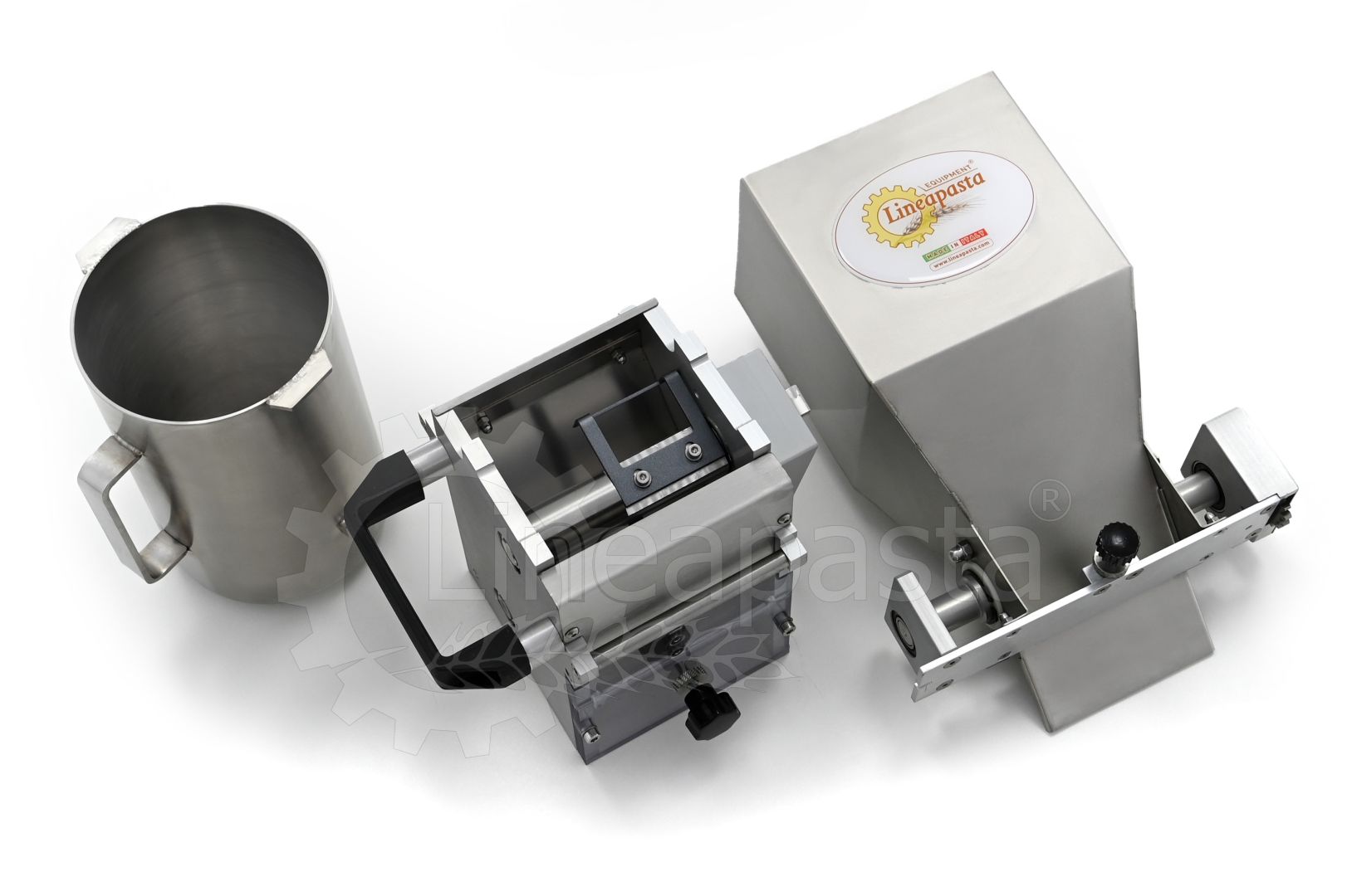 - Cutting Unit: the cutting unit produces long pasta cut by length and in different sizes by inserting special cutting units. The length is adjustable using a timer. Available sizes: mm 2, 4, 6, 8, 12, 24 and jagged-edge cuts.