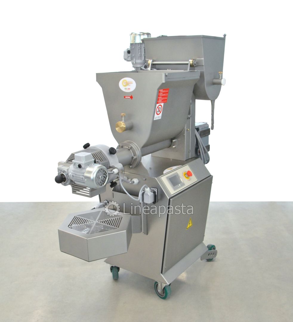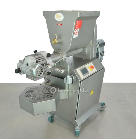 The machine is equipped with a touch screen control system with the ability to load and customize recipes according to your production needs, customizing the extrusion speed, the knife speed and the temperature of the extrusion cylinder.