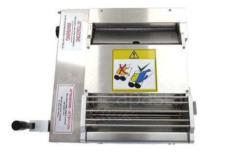 Monferrina Nina pasta sheeter is a simple to use countertop machine which, in a single body, allows you to produce pasta sheet with adjustable thickness and tagliatelle in two different widths: 2 and 6 mm.