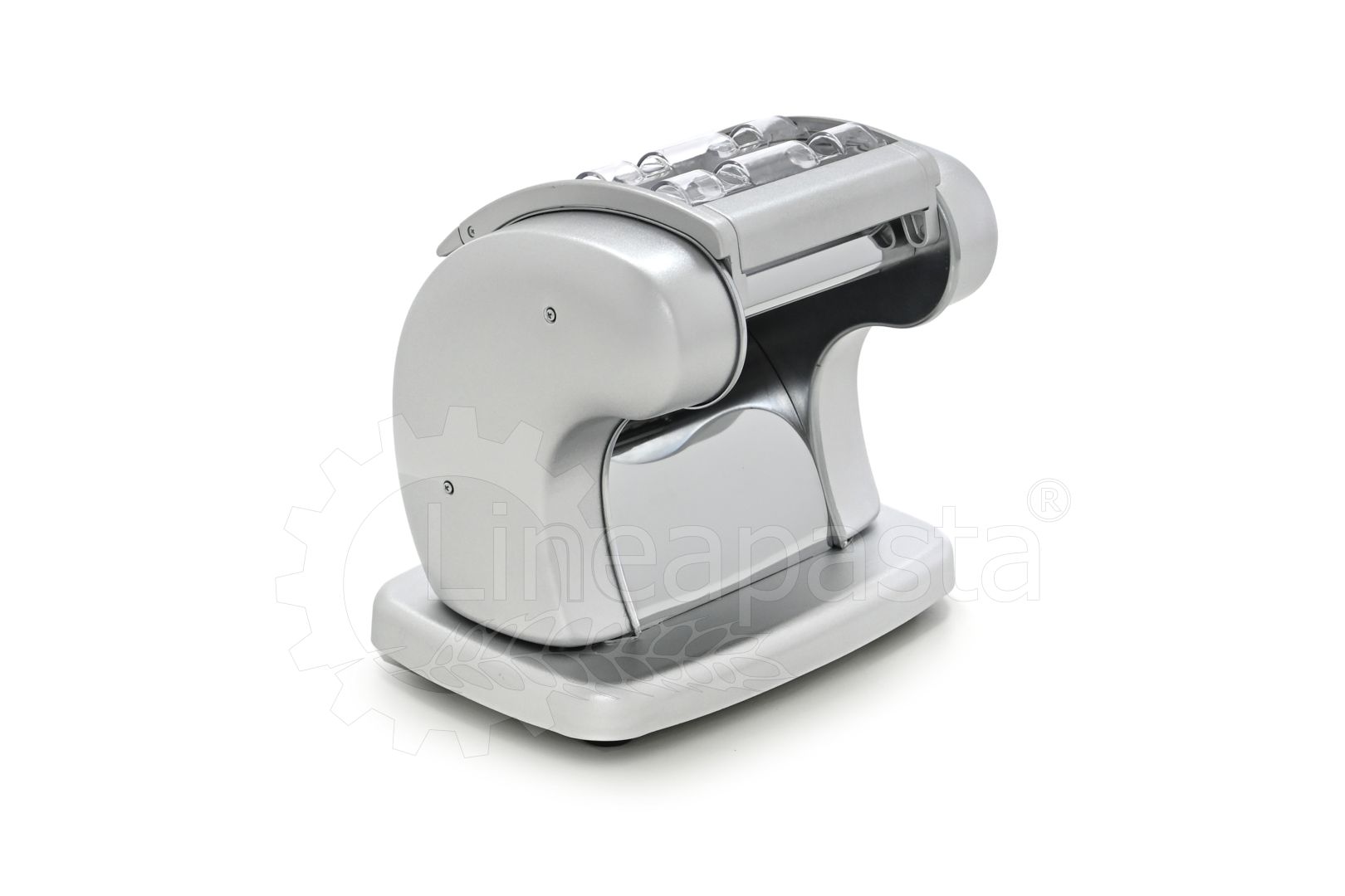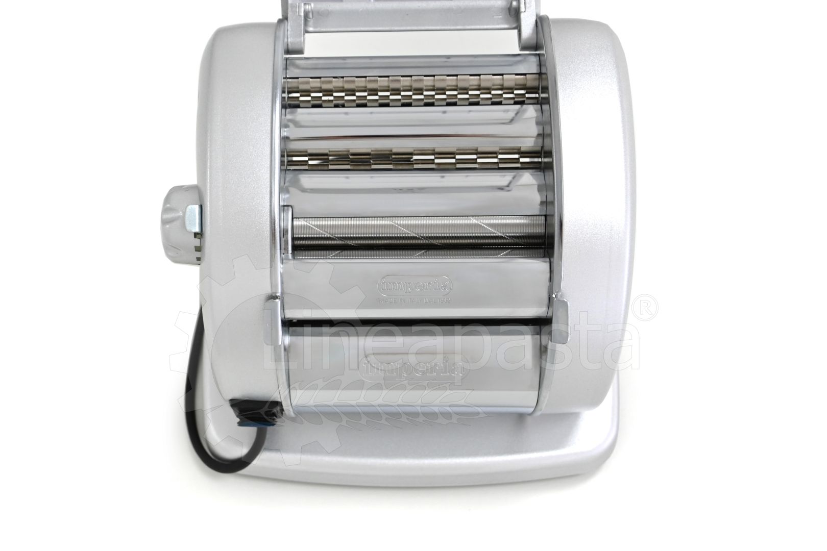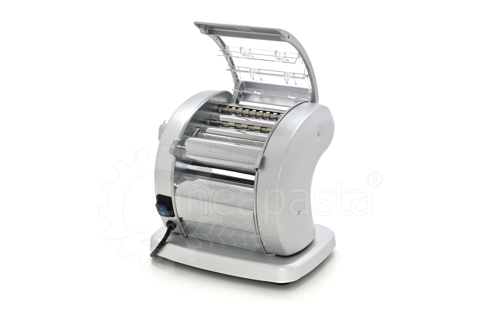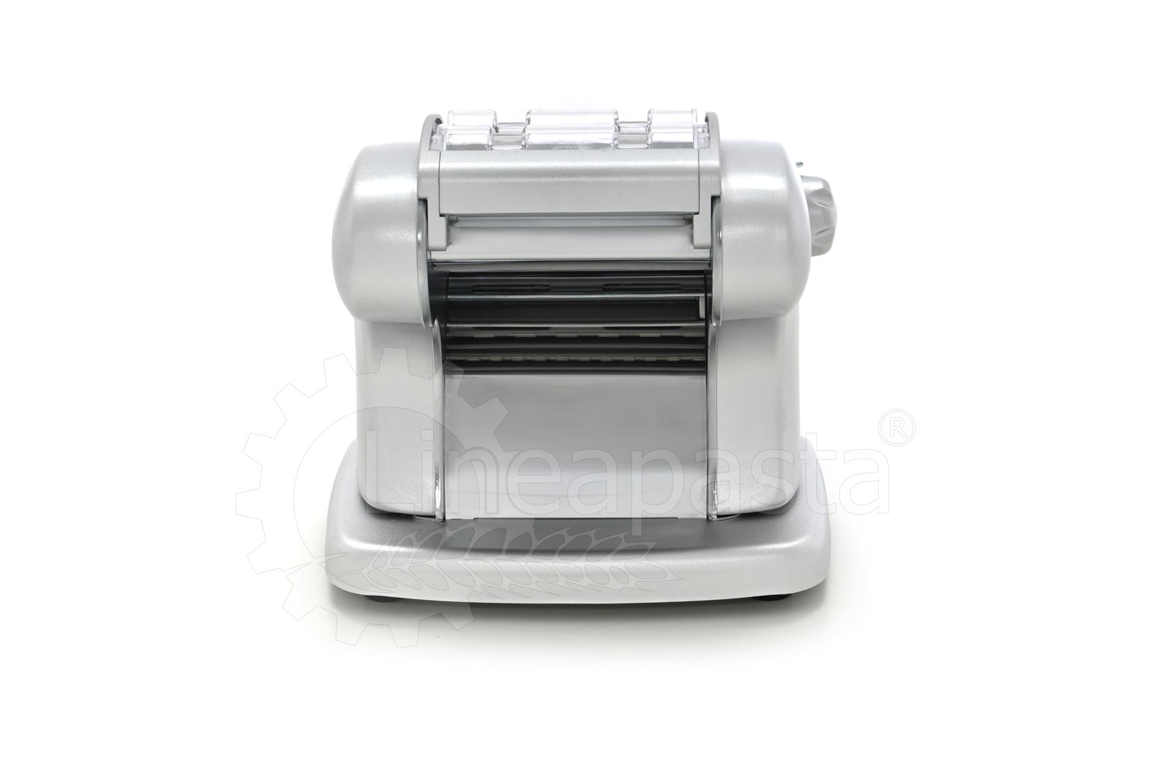 Imperia PastaPresto Gourmet Silver (Cod. 5700 / 5720) is a motorized pasta sheeter suitable for producing homemade pasta, it is characterized by 150 mm rough rollers that give the pasta sheet a rustic texture perfect for enhancing the flavor of sauces and gravies. The machine is equipped with an electric motor, which allows you to make the pasta sheet in six different thicknesses and two types of pasta: Lasagnette 12 mm and Fettuccine 6,5 mm. Imperia PastaPresto Gourmet is available in two color variants: silver and anthracite gray.