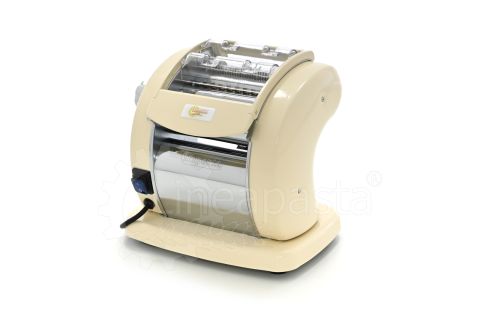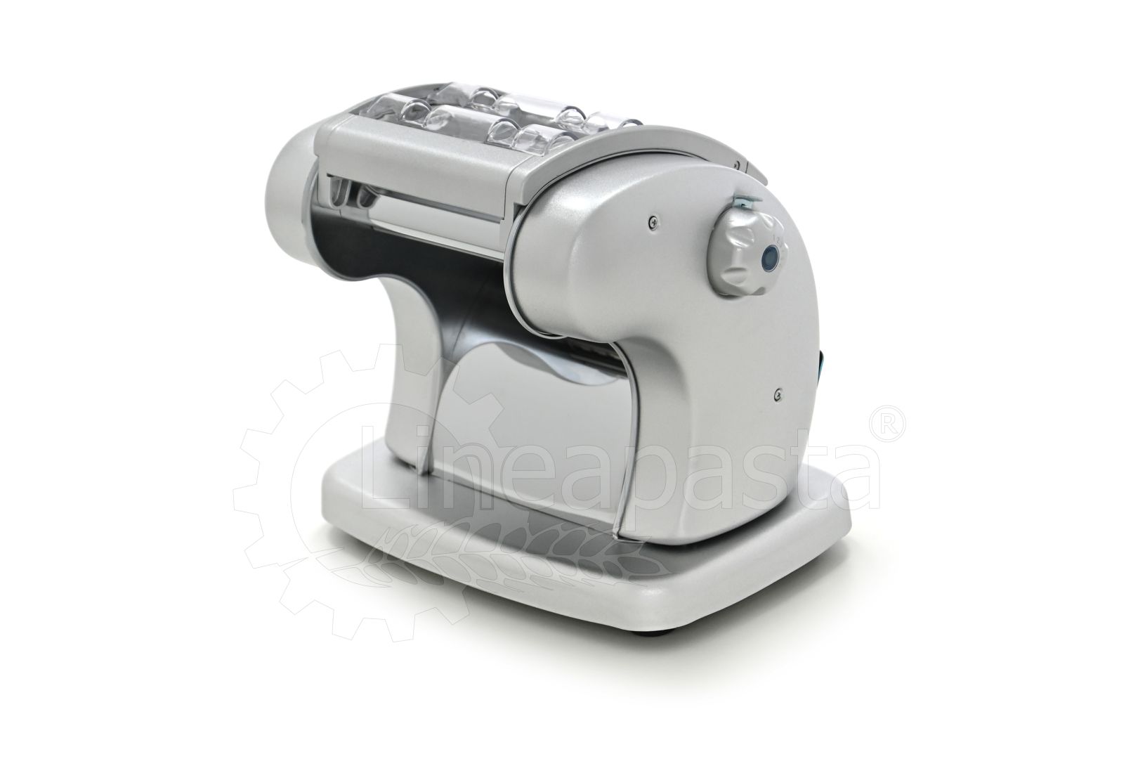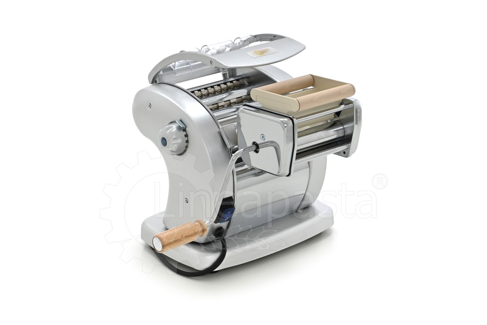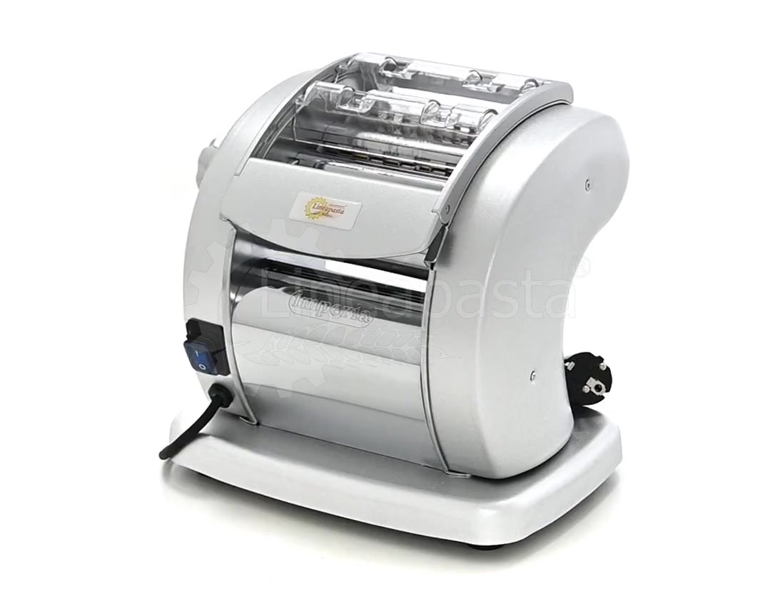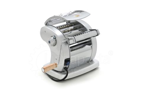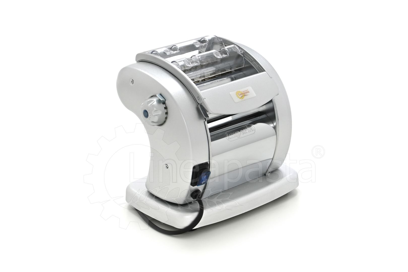Imperia PastaPresto Gourmet Silver (Cod. 5700 / 5720) is a motorized pasta sheeter suitable for producing homemade pasta, it is characterized by 150 mm rough rollers that give the pasta sheet a rustic texture perfect for enhancing the flavor of sauces and gravies. The machine is equipped with an electric motor, which allows you to make the pasta sheet in six different thicknesses and two types of pasta: Lasagnette 12 mm and Fettuccine 6,5 mm. Imperia PastaPresto Gourmet is available in two color variants: silver and anthracite gray.