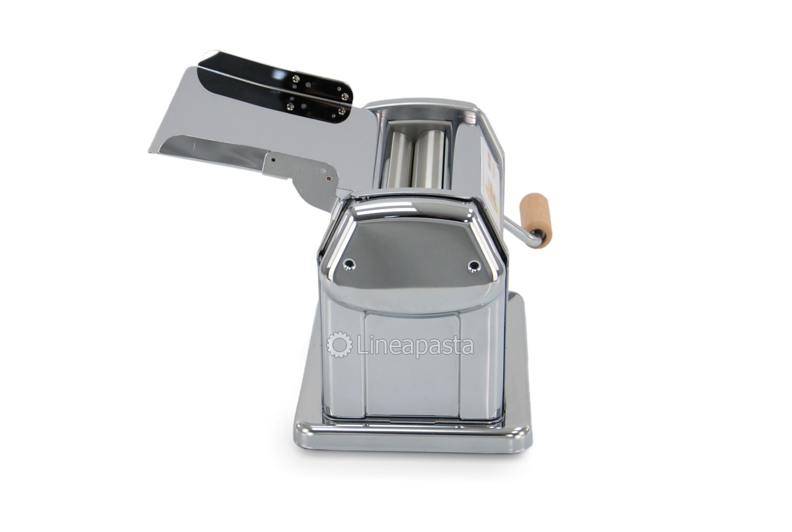 Imperia Restaurant Manual pasta sheeter (Cod. 010 / Cod. 6010) is manufactured in Italy with great craftsmanship to guarantee its robustness and durability over time. With the help of its optional accessories (to be purchased separately), it is possible to produce an infinite variety of pasta-based first courses: spaghetti, capelli d'angelo, tagliatelle, trenette, fettuccine, lasagne etc. The Restaurant Manual is available in two different versions: with smooth rollers to obtain a smoother and more homogeneous sheet with a more "industrial" appearance or with rough rollers to obtain a more home-made effect, reproducing the result that would be obtained with the rolling pin.