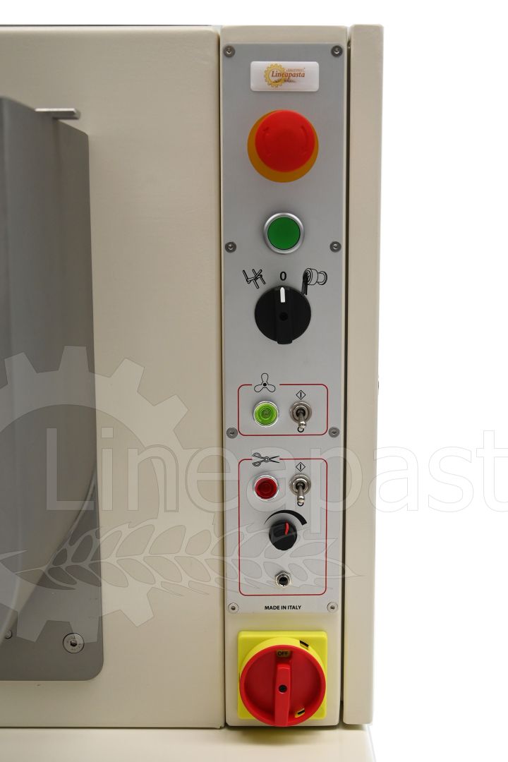 - Electronic cutter that allows to automatically cut the pasta extruded from the machine and automate the process of production