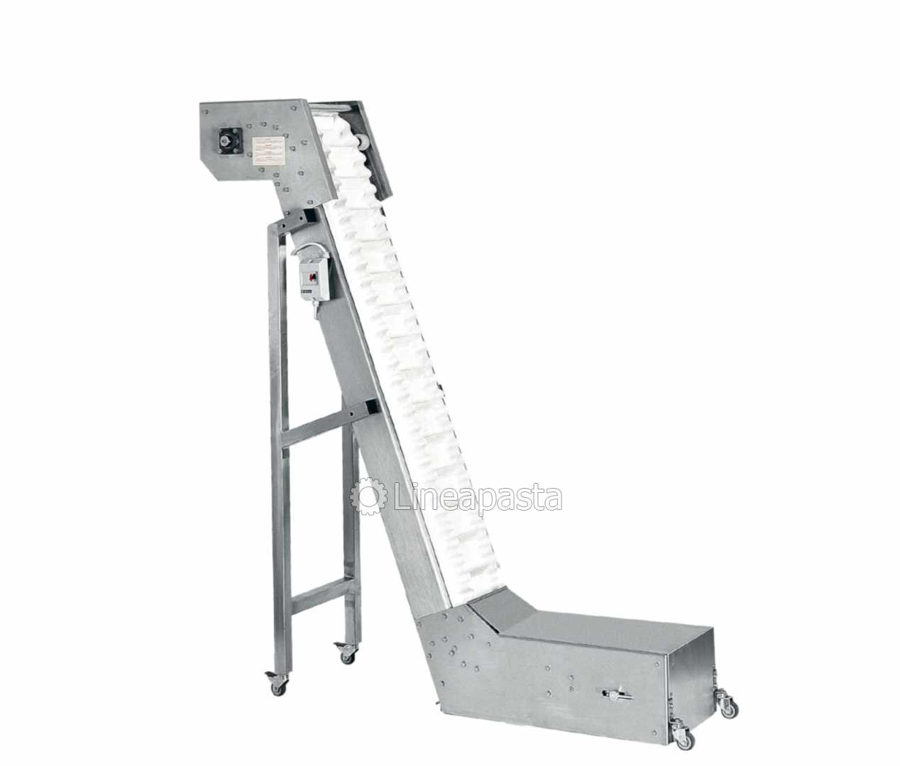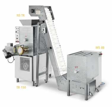 It is possible to combine the machine with two optional accessories to make it continuous production: the NS TR conveyor belt and the MS 80 dough mixer. These allow you to reach a maximum production of 150kg/h.