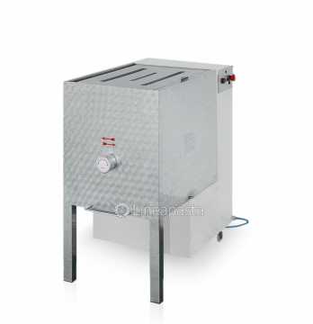 TR 150 fresh pasta machine is a machine equipped with a mixing vat with a capacity of 70kg of dough (flour + liquids), capable of reaching a production of 85 kg/h of short and long pasta, depending on the die used.