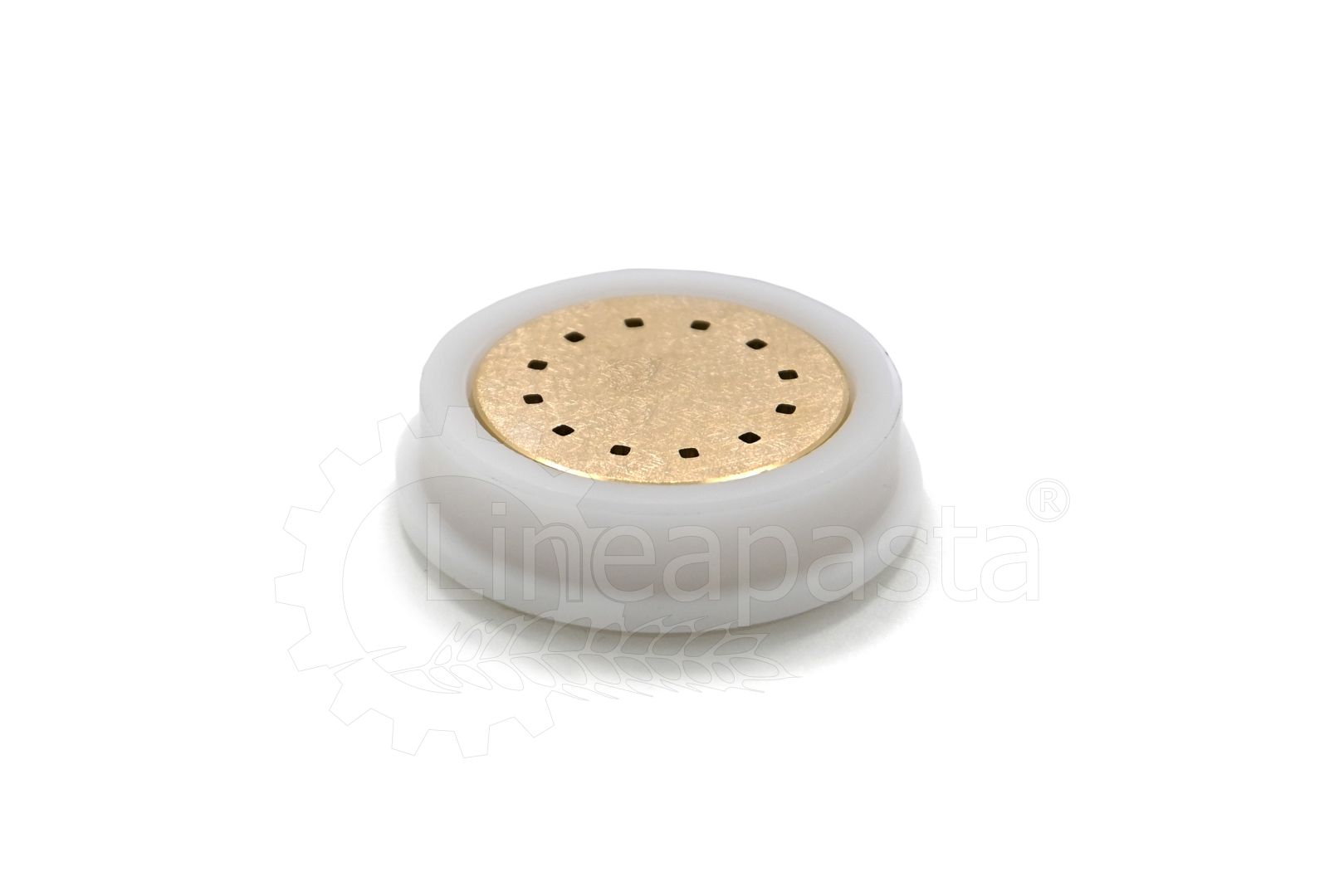 Reduction ring compatible with the Simac 700, Simac 1000 and Simac 1400 pasta machine models. This reduction ring made of POMC resin allows you to use the Ø45 mm Kenwood dies on Simac pasta machines, which use Ø57 mm dies.