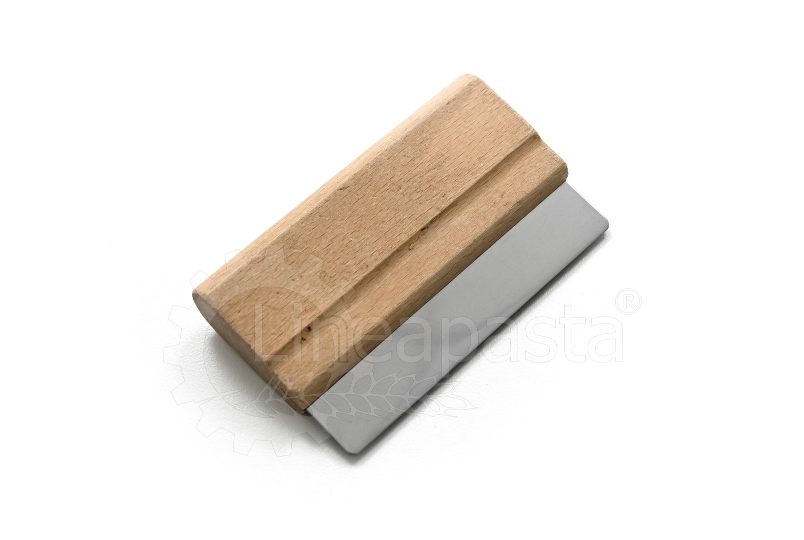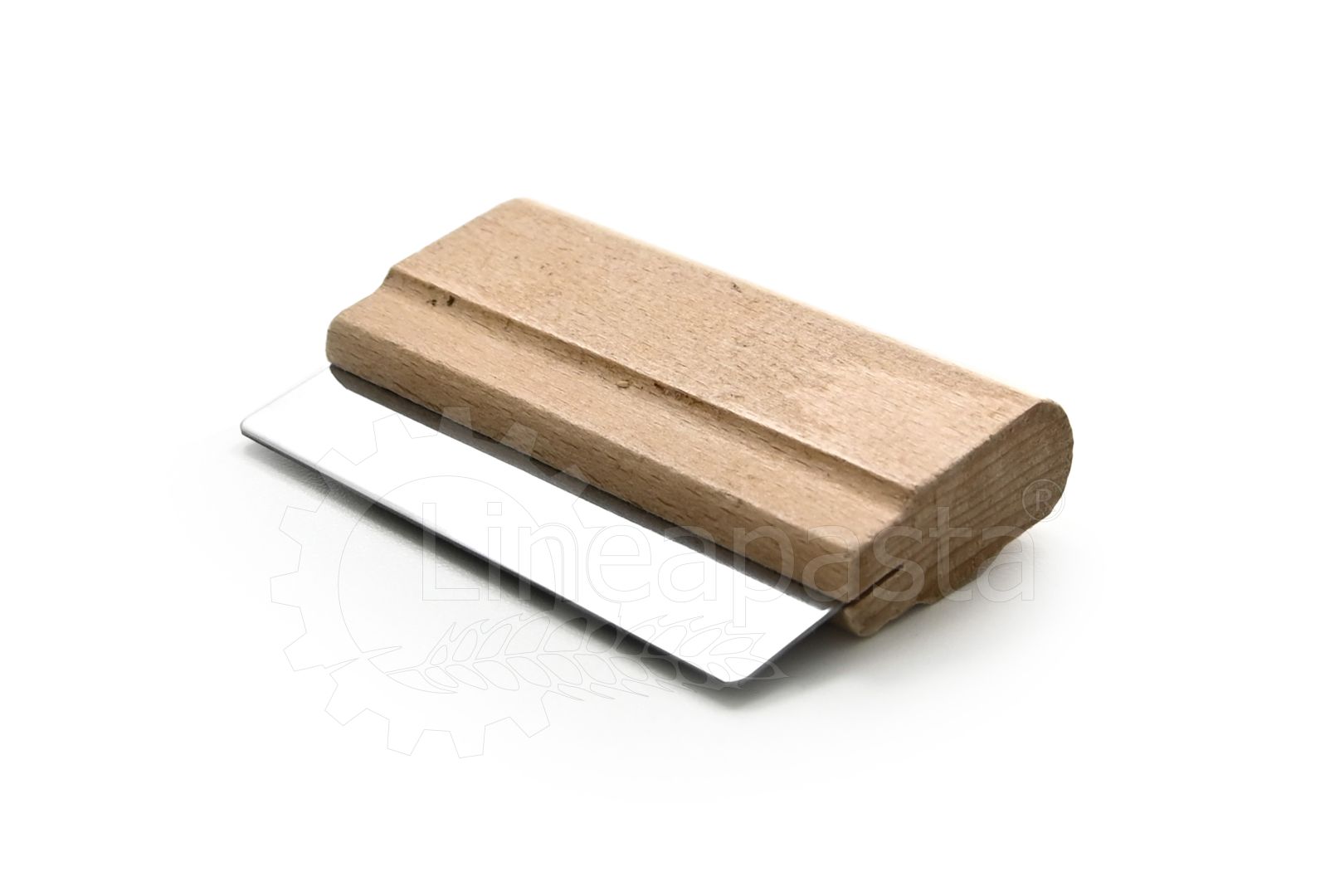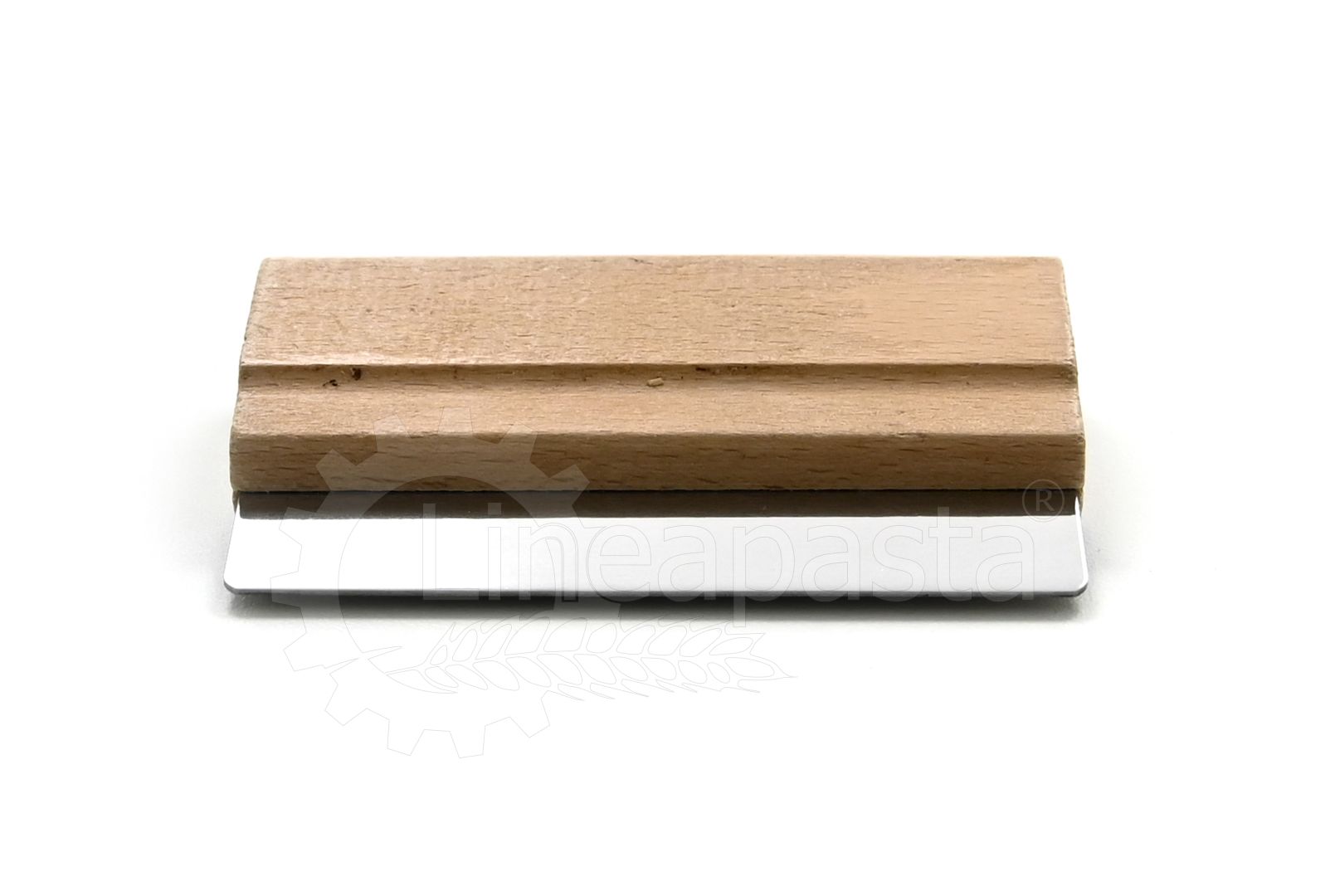 70 mm wide stainless steel dough cutter / scraper, equipped with a comfortable wooden handle, is made of robust and durable material. This tool, suitable for both professional and home use, is designed for manually cutting extruded dough and for cleaning the work surface during the production phase of dough such as for pasta, pizza, biscuits or desserts.