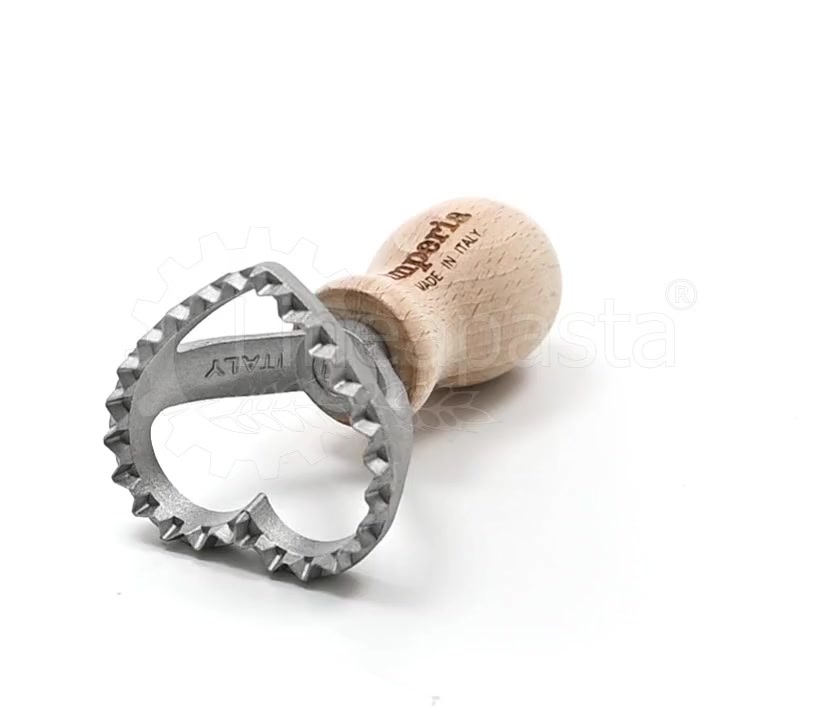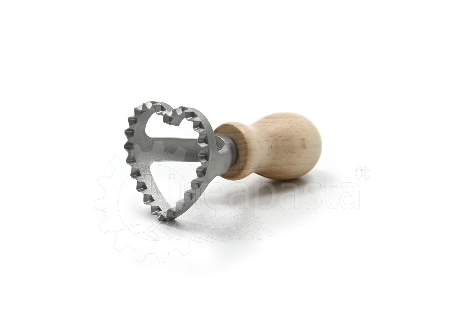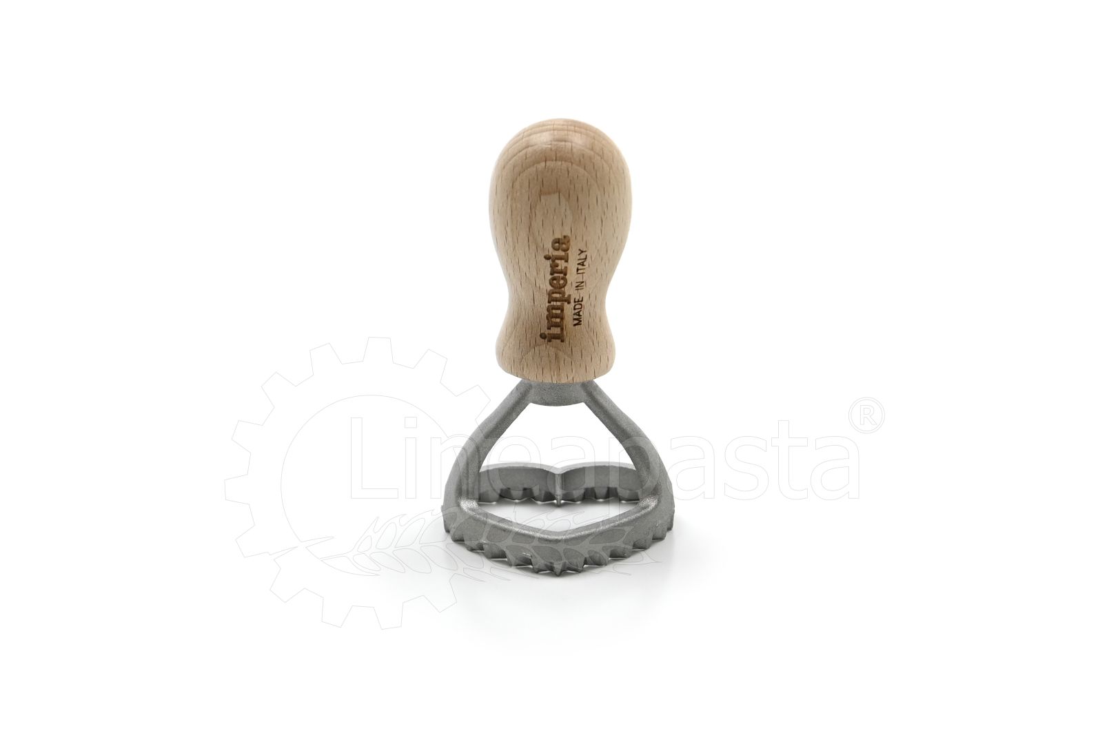 Imperia mould for the preparation of heart-shaped ravioli 55 mm in diameter. This ravioli cutter is equipped with a practical wooden handle, is made of shaped aluminum and allows you to cut the sheet in a clean and fast way during the production of ravioli.