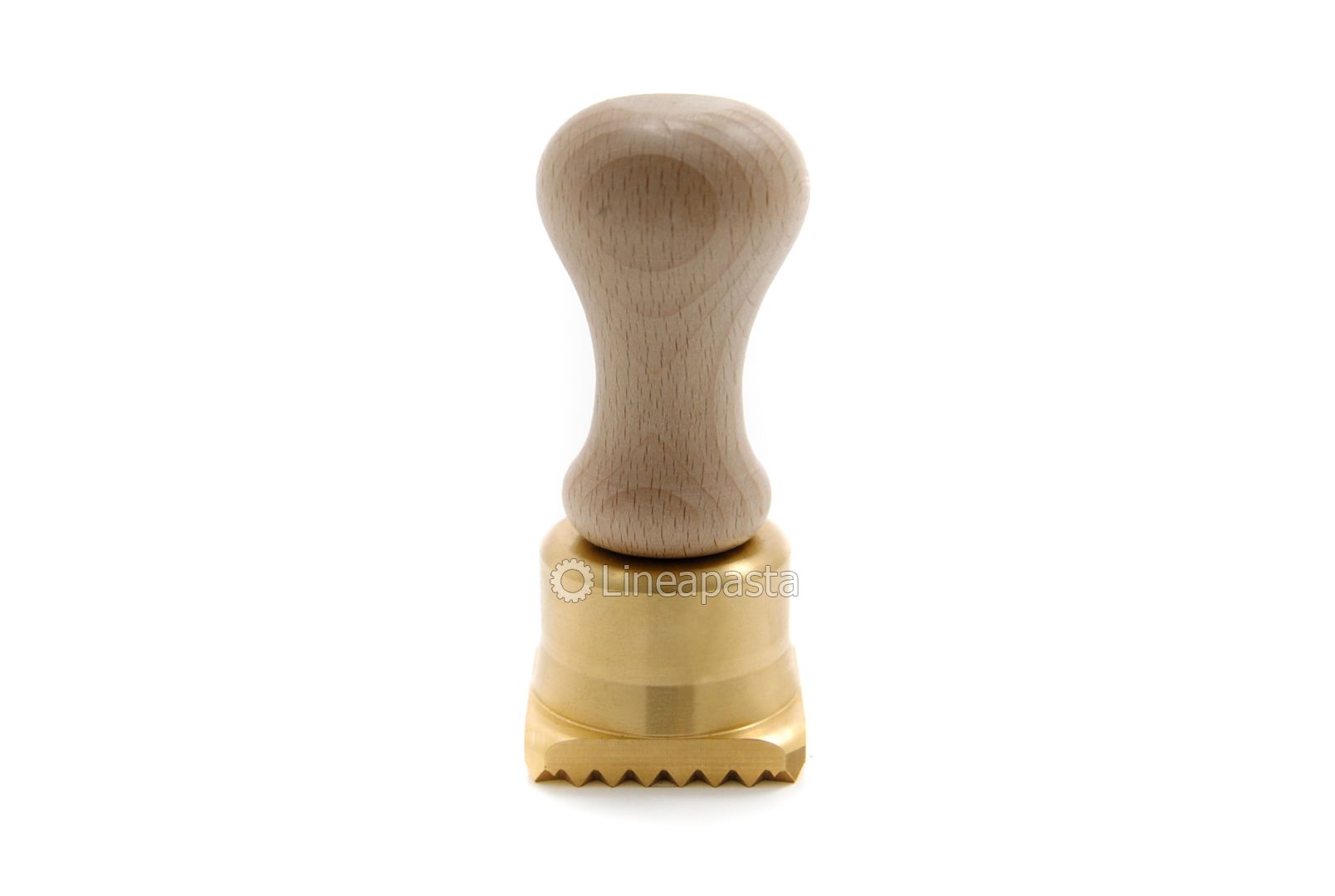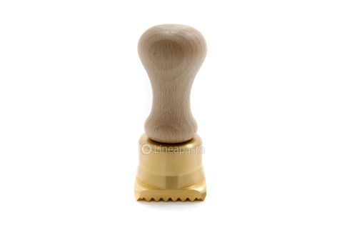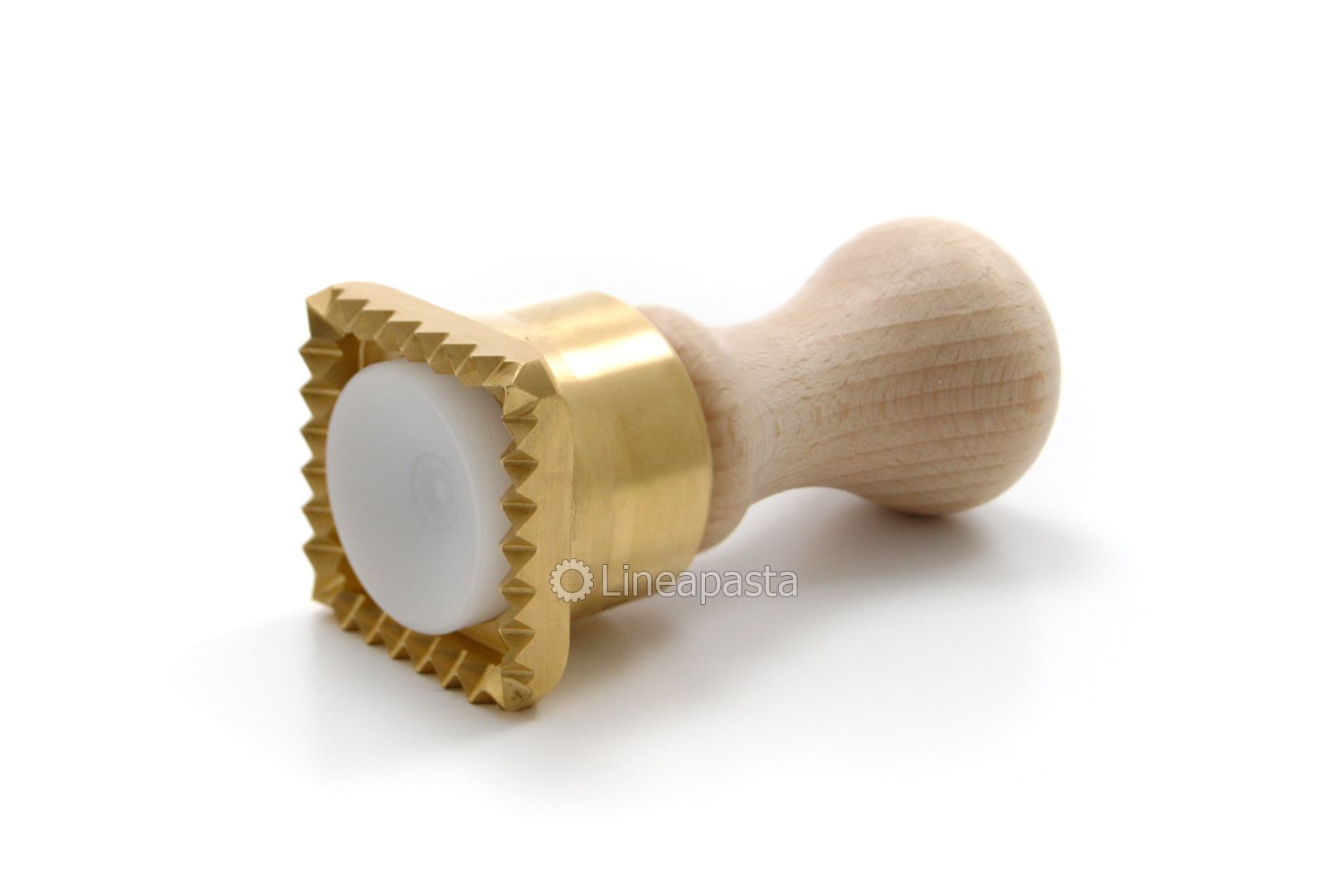 Pasta cutter for 46x46mm square ravioli. The brass mould has a square shape, a comfortable wooden handle and a practical plastic ejector that makes it quick and easy to make ravioli.