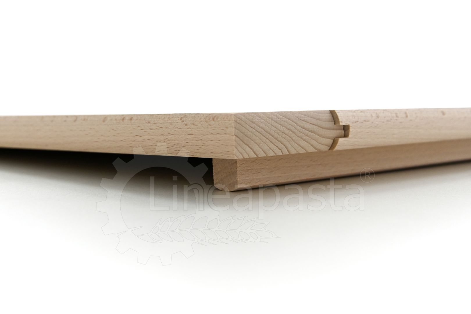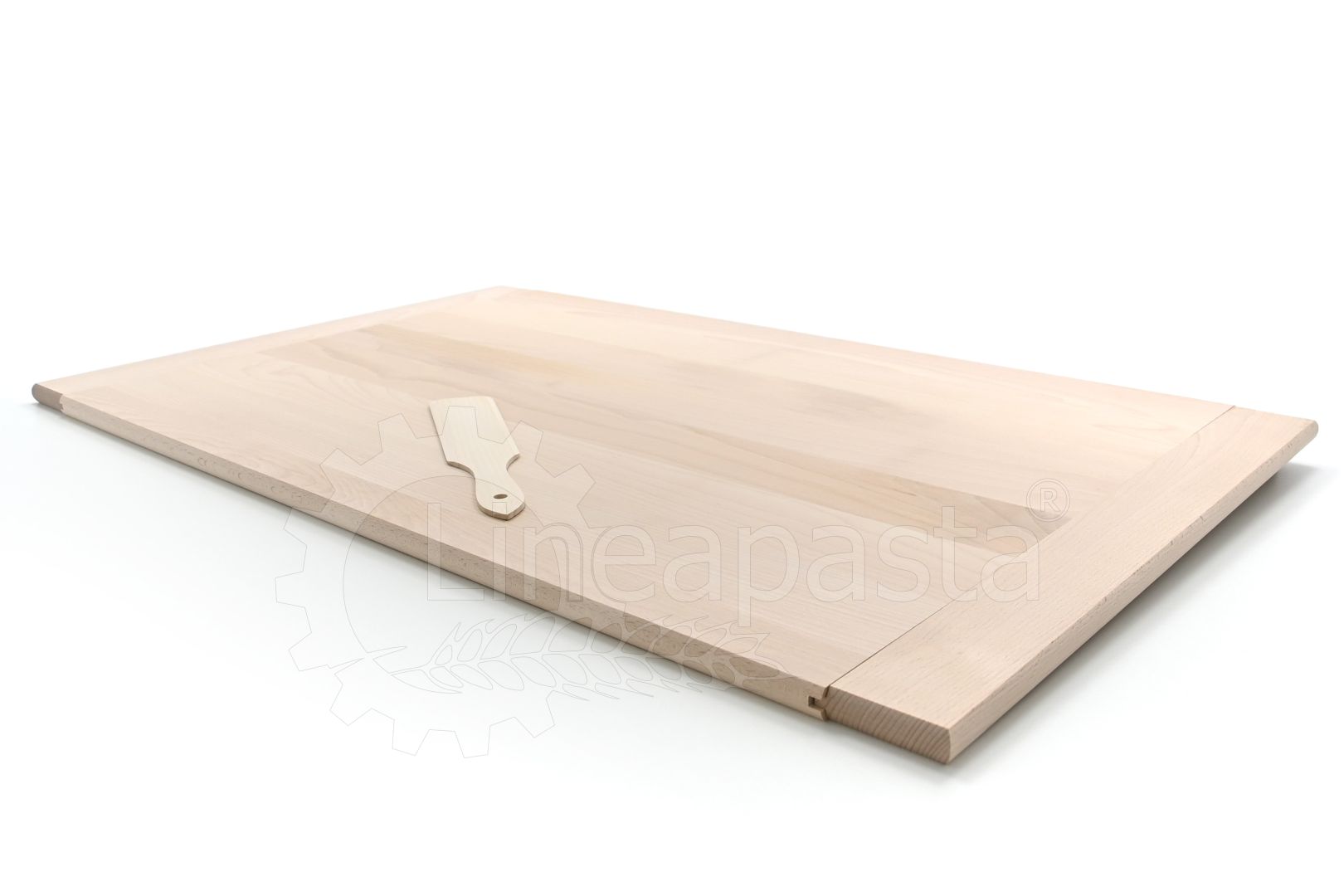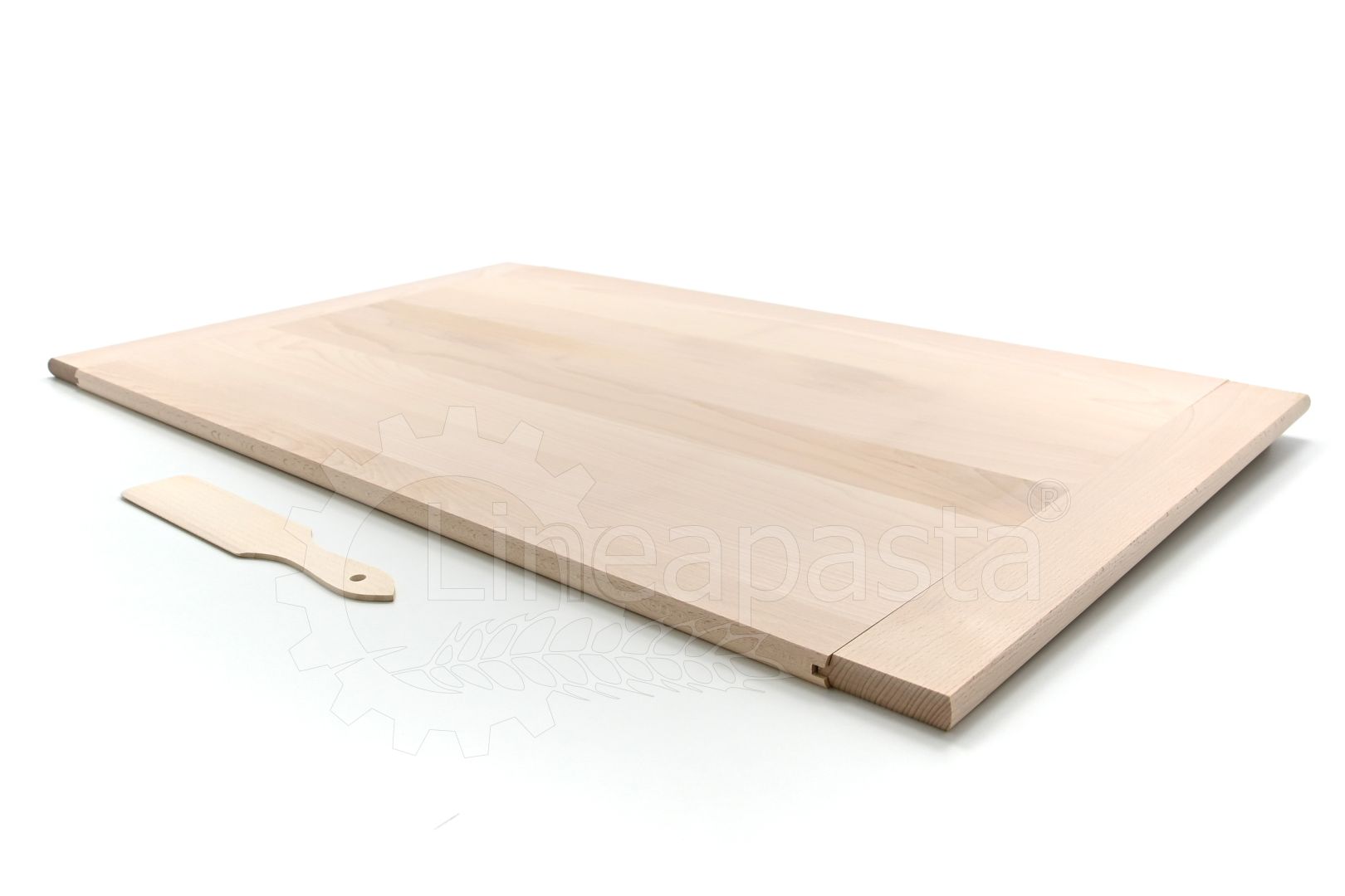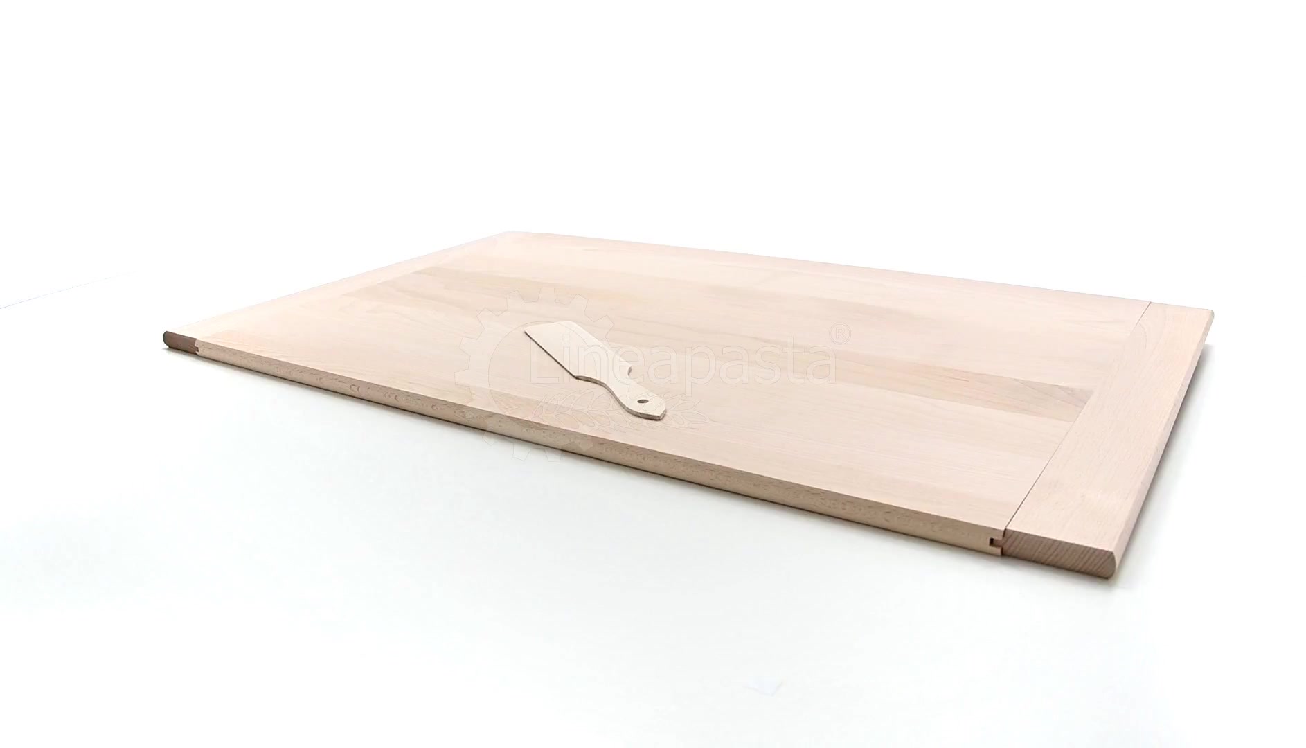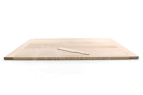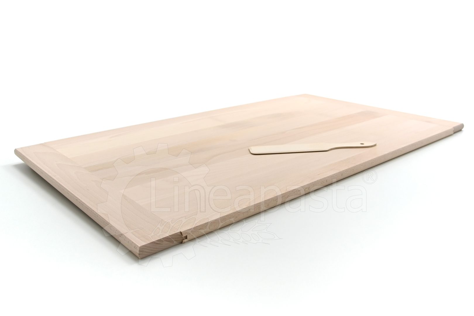 Beech wood board designed for processing dough such as pasta, pizza, pasta sheet, focaccia and desserts. The large surface of the board allows you not to ruin or dirty the kitchen table, which is equipped with a convenient integrated riser that slightly tilts the worktop to make it easier to use. The wooden board is sold with a 30 cm wooden spatula, useful for working the ingredients and cutting the dough during the production phase.