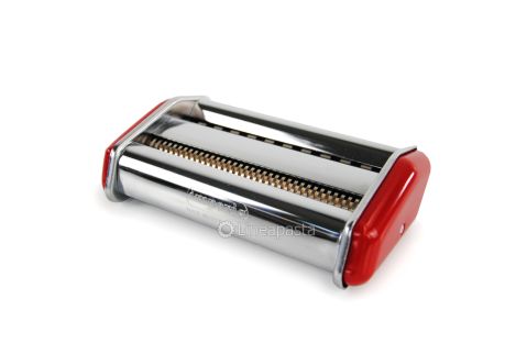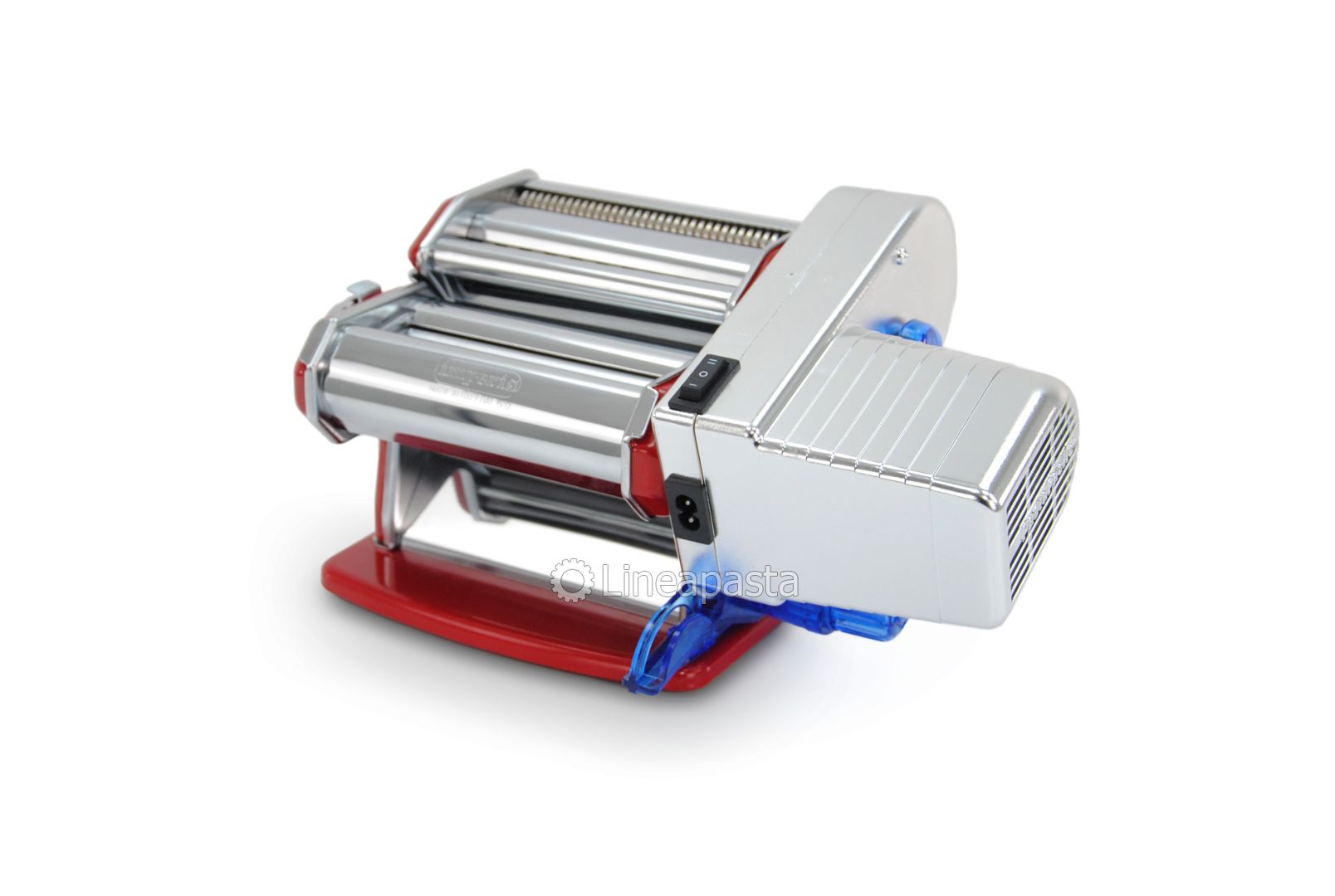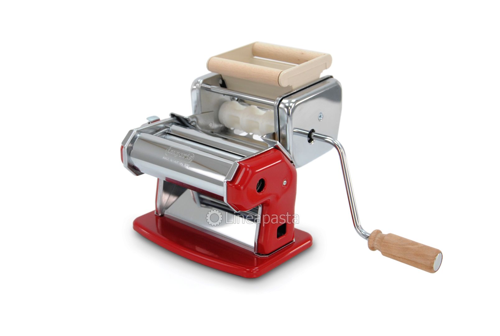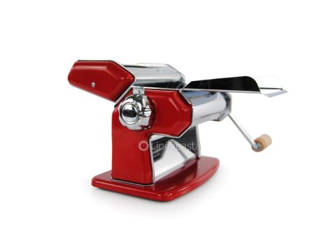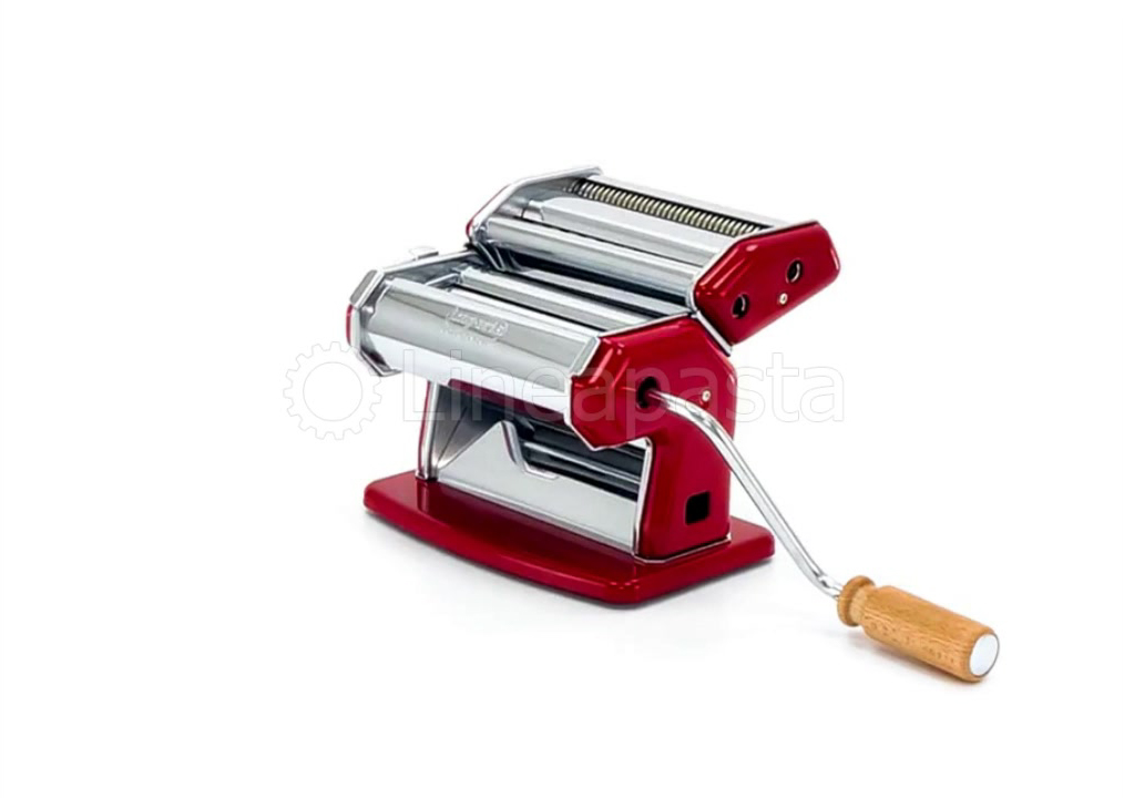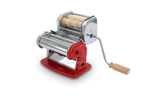 La laminadora Imperia iPasta Rojo (Cod. 4120) se produce en Italia y está realizada en acero barnizado, para ofrecer una variación de color del modelo cromado, garantizando al mismo tiempo su durabilidad. Con Imperia iPasta y su cortador "Duplex", podrá realizar la lámina en seis grosores diferentes y dos tipos de pasta: Fettuccine 6,5 mm y Tagliolini 2 mm. Además, con la ayuda de sus accesorios (se venden por separado), preparará una variedad infinita de primeros platos a base de pasta: spaghetti, tagliolini, fettuccine, capelli d'angelo, trenette, pappardelle, lasagnette, cavatelli, rigatelli, reginette, ravioli, raviolini y gnocchetti sardi. Imperia le sorprenderá por su gran versatilidad y su extrema facilidad de uso. Usted hará la mejor pasta fresca casera en pocos minutos. Se incluyen con la laminadora una tolva, una manivela, una abrazadera, un pincel para la limpieza de los rodillos y una bolsa protectora de algodón. Imperia iPasta está disponible en cuatro variantes de colores: acero cromado, rojo, plata y crema.