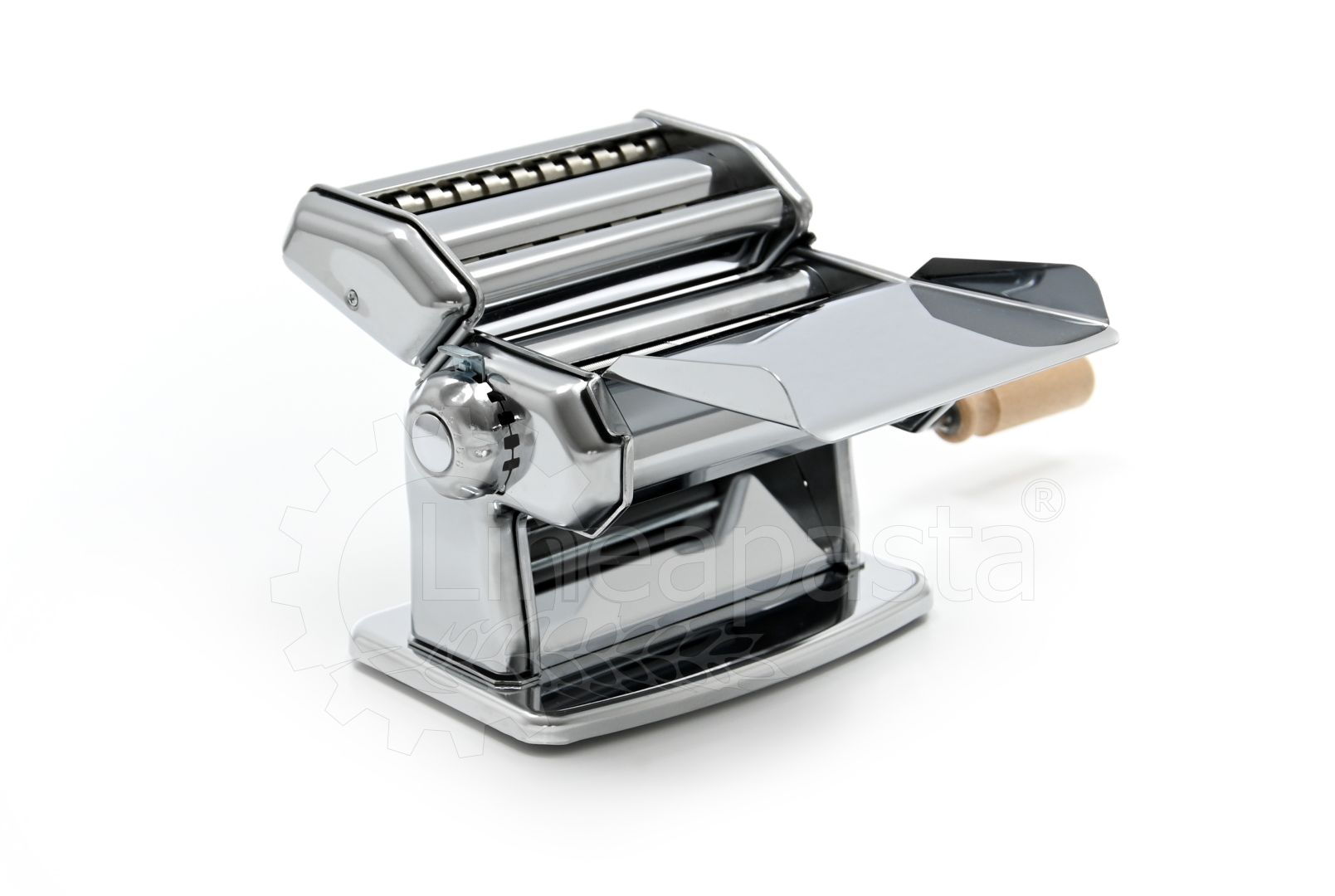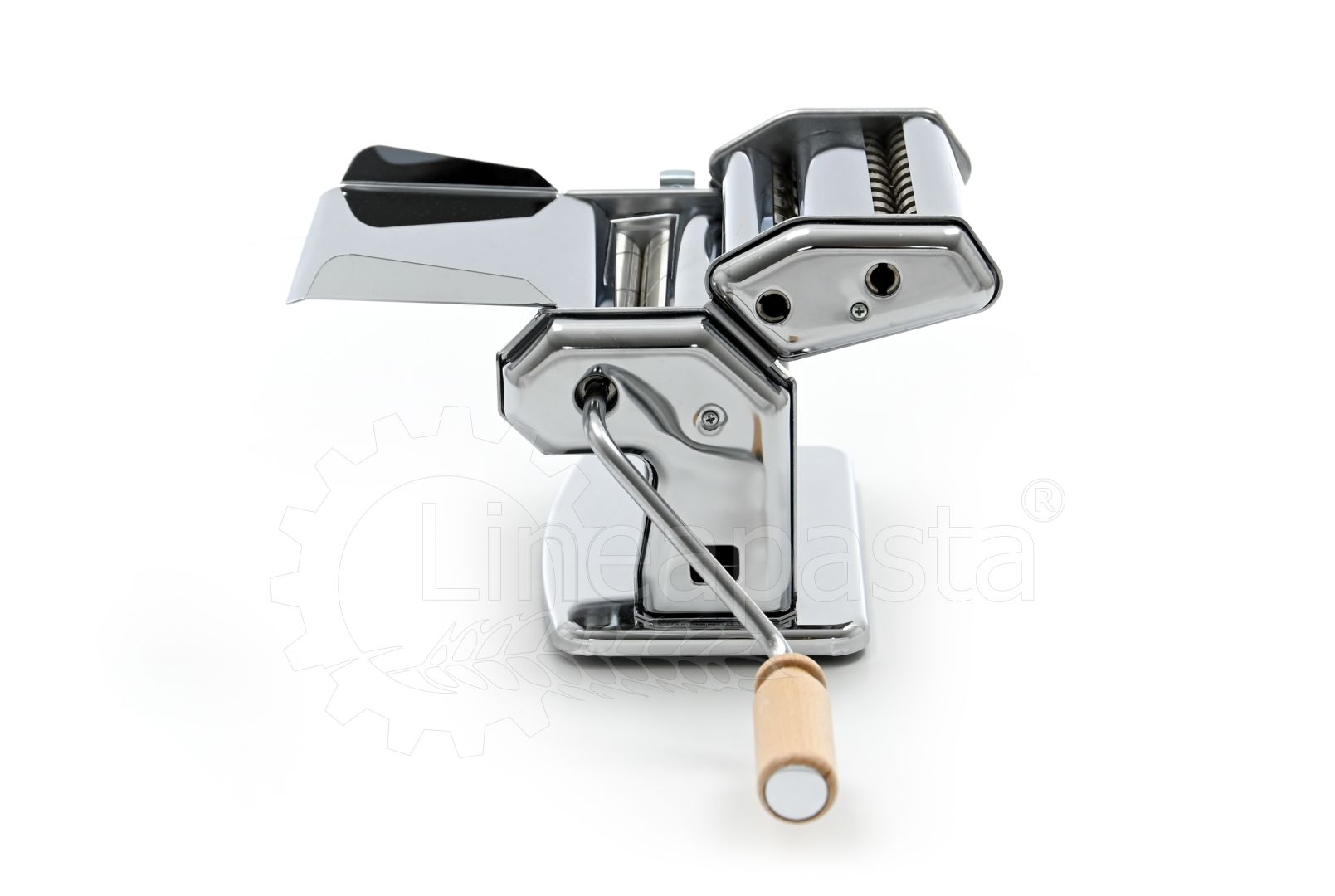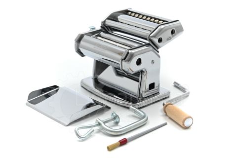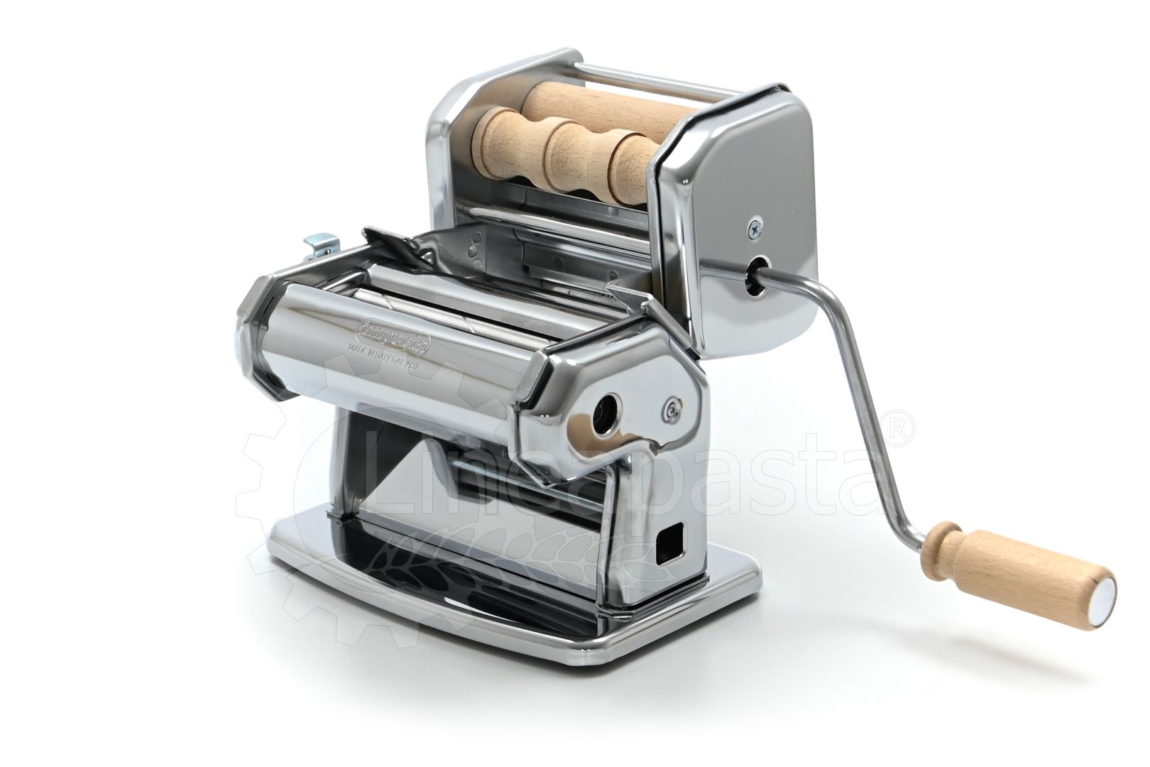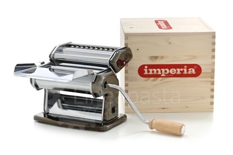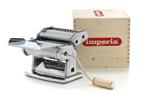 La máquina Imperia iPasta Ruvida Gourmet Acero cromado (Cod. 5140) es una laminadora de pasta caracterizada por rodillos rugosos de acero inoxidable para la producción de una hoja de pasta con textura rústica, perfecta para realzar el sabroso sabor de salsas. Imperia iPasta Ruvida Gourmet permite extender una lámina de masa de 150 mm en hasta seis espesores diferentes y está equipada con un cortador "Duplex" para la producción de Fettuccine de 6,5 mm y Lasagnette de 12 mm. Es posible preparar una infinita variedad de primeros platos a base de pasta como spaghetti, tagliolini, trenette, pappardelle, ravioli, gnocchetti sardi y muchos otros formatos con los correspondientes accesorios opcionales (se venden por separado). Esta laminadora Imperia se suministra con una pinza de trabajo que permite anclar la máquina a la mesa y una elegante caja de madera donde puede guardar la máquina una vez que haya terminado de usarla. Se incluyen con la laminadora una tolva, un pincel para la limpieza de los rodillos y una bolsa protectora de algodón. Fácil de usar y muy versátil, Imperia iPasta Ruvida Gourmet está disponible en tres colores: acero cromado, negro y cobre.