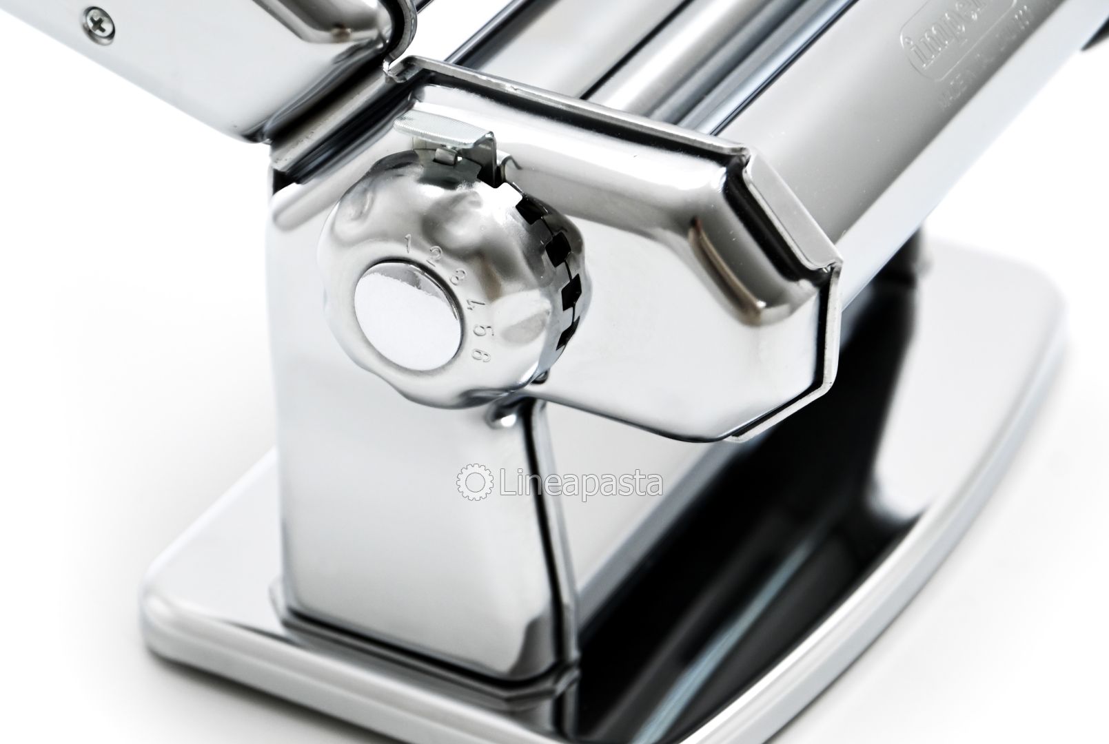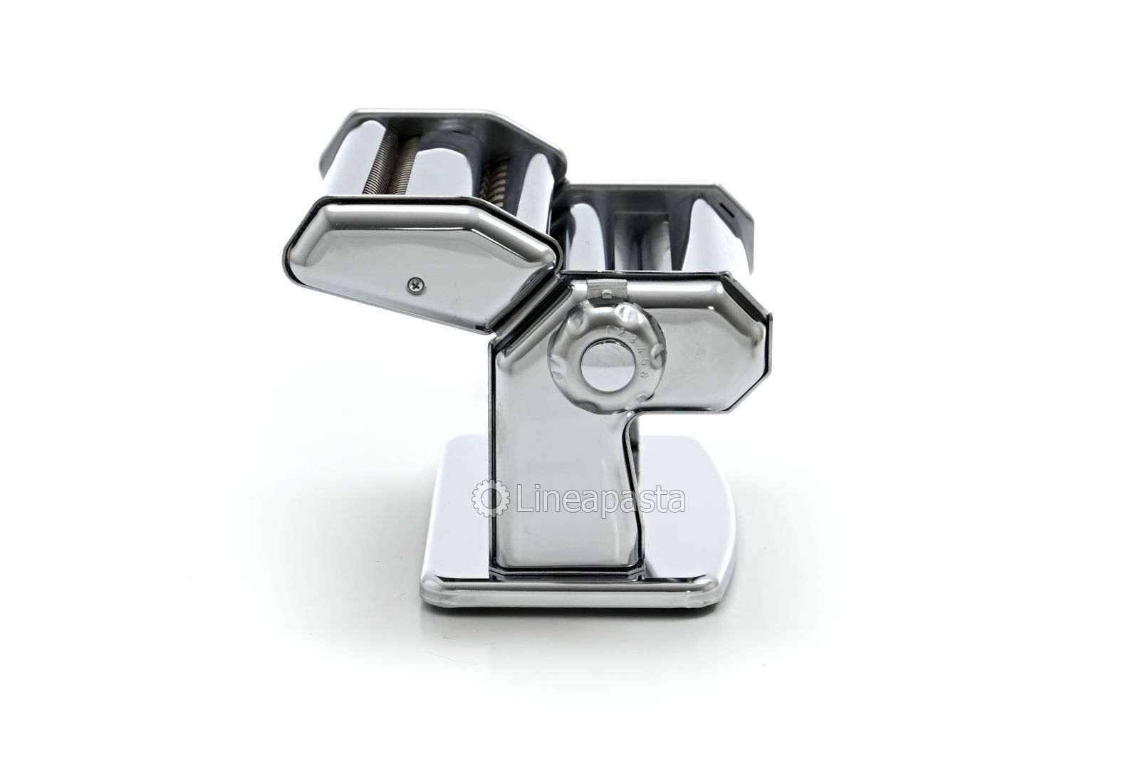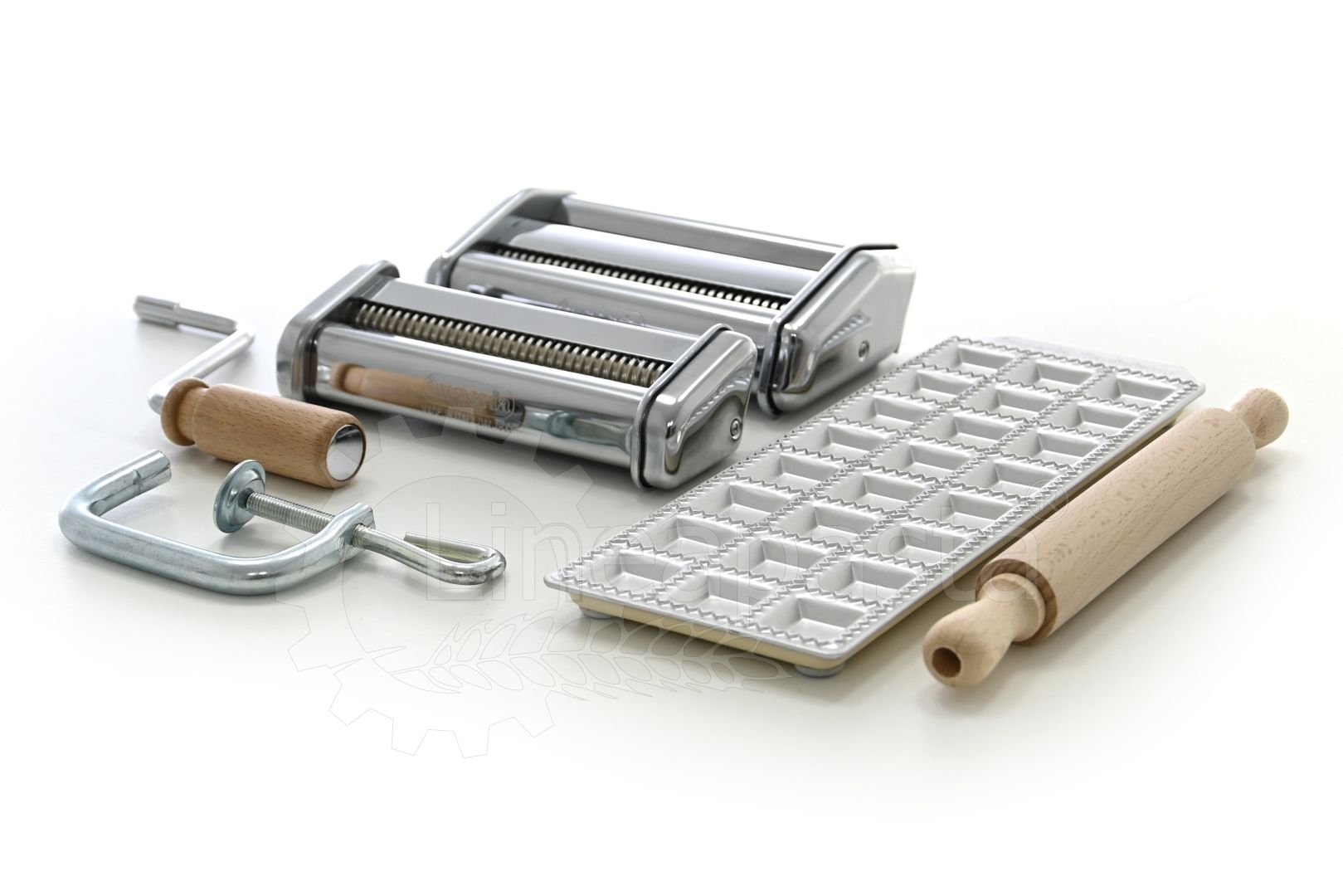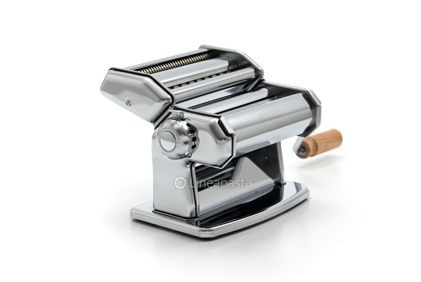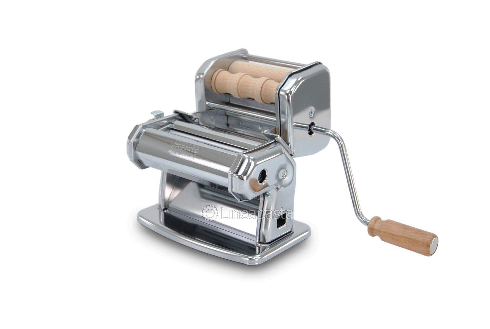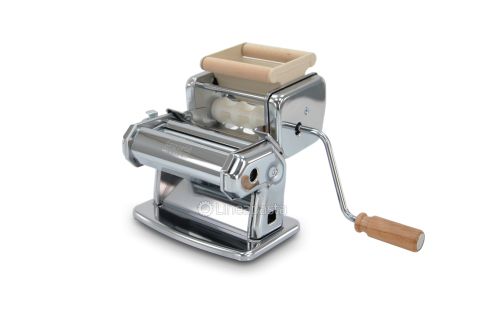 Imperia Pastaia Italiana (Cód. 3508) es una laminadora manual para pasta fresca. Es una máquina para pasta fabricada en Italia con gran artesanía para garantizar su robustez y durabilidad en el tiempo. Con Imperia Pastaia Italiana podrá elaborar fácilmente masa en hoja de seis espesores diferentes, así como cuatro tipos de pasta: espaguetis, fettuccine, tagliolini y ravioles cuadrados. Con la laminadora se incluyen los siguientes accesorios: la pinza, la manivela, un rodillo de madera natural, un molde Raviolamp de 24 raviolis cuadrados, un cortador de Spaghetti Simplex Ø2 mm y un cortador Duplex para la producción de Fettuccine 6,5 y Tagliolini 2 mm.