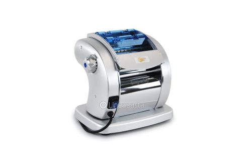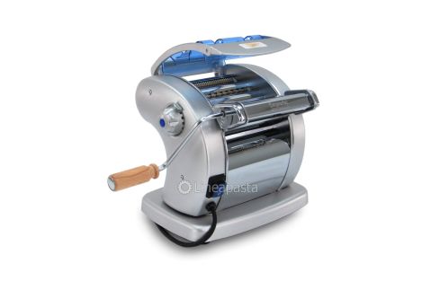 Imperia PastaPresto Plata (Cod.4700 / 4720), elegante y funcional, es la nueva laminadora motorizada Imperia para el hogar. Su diseño refinado está a la altura de la practicidad y la tradición de la buena pasta hecha en casa. La máquina está equipada con rodillos de 150 mm y un motor eléctrico, que permite realizar la lámina en seis grosores diferentes y dos tipos de pasta: Tagliolini 2 mm y Fettuccine 6,5 mm.