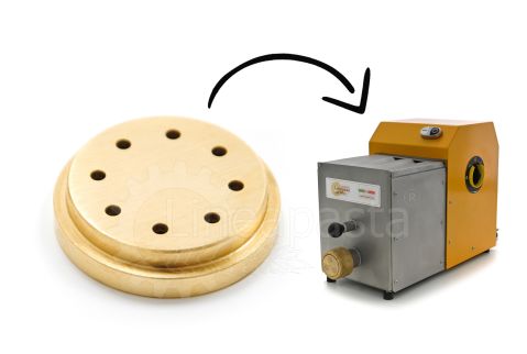 En resumen: las trefiladoras de latón con insertos de bronce o teflón son un componente clave en las máquinas de pasta. La elección del material influye notablemente en el producto final, el mantenimiento necesario y los costes de producción. Las trefiladoras de bronce son la opción preferida cuando la tradición, la calidad y una superficie que retenga la salsa son fundamentales; las trefiladoras de teflón son preferibles cuando la producción exige rapidez, eficiencia y bajo coste.