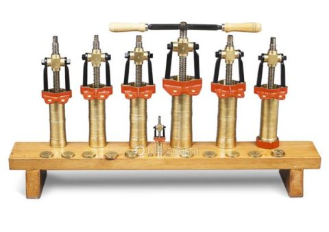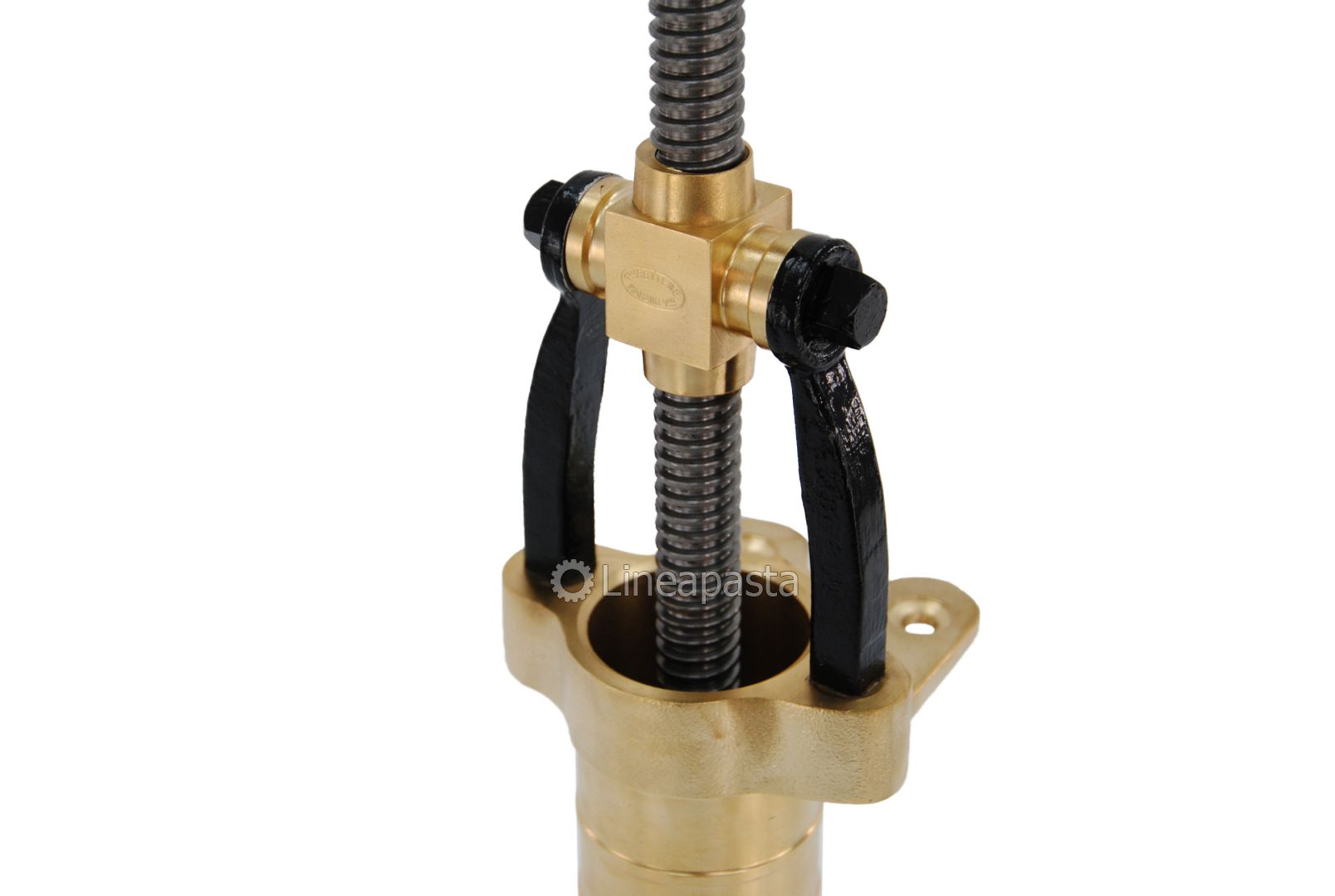 Prensa para pasta diseñada para la producción manual de diferentes formatos de pasta. La prensa es de latón y es un artículo hecho a mano.