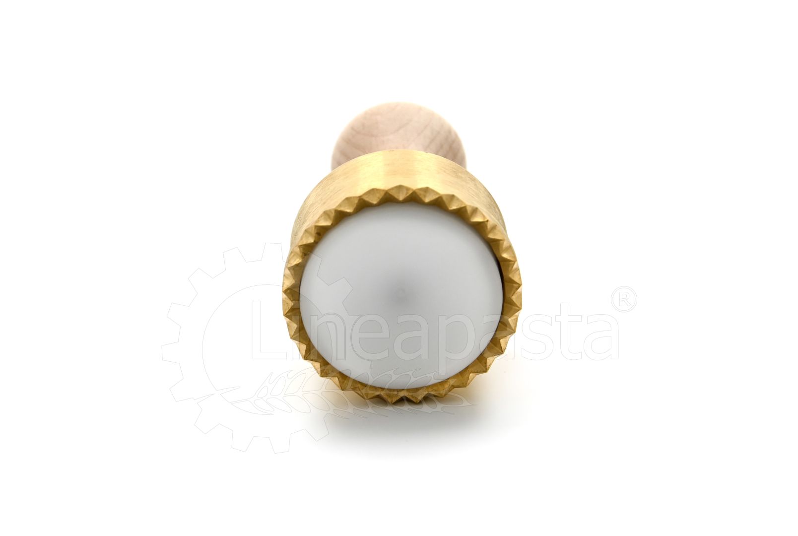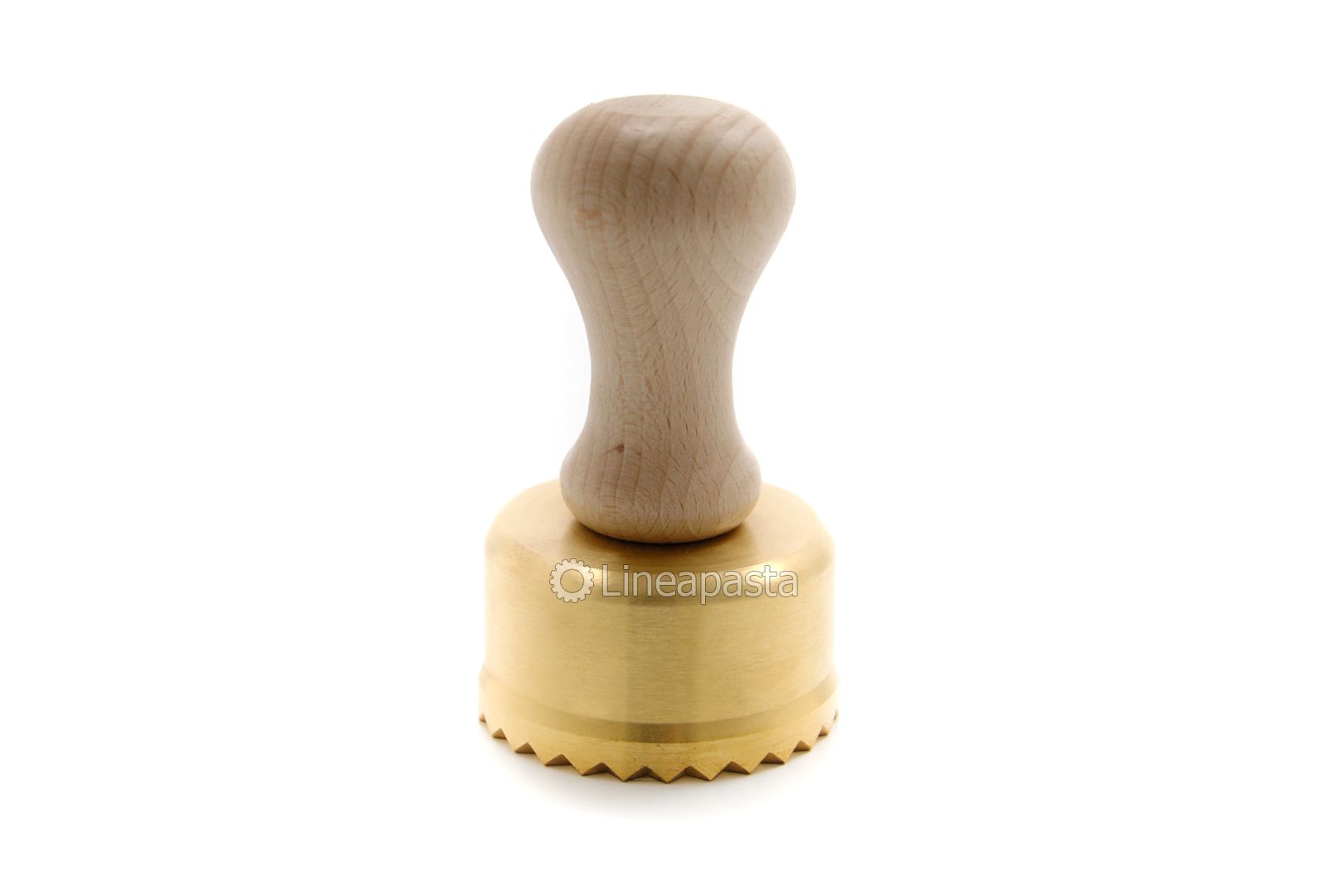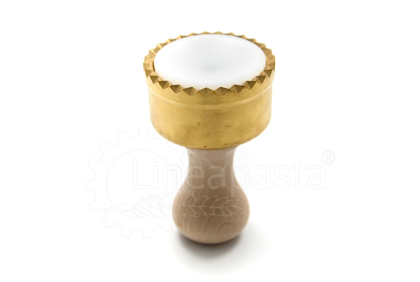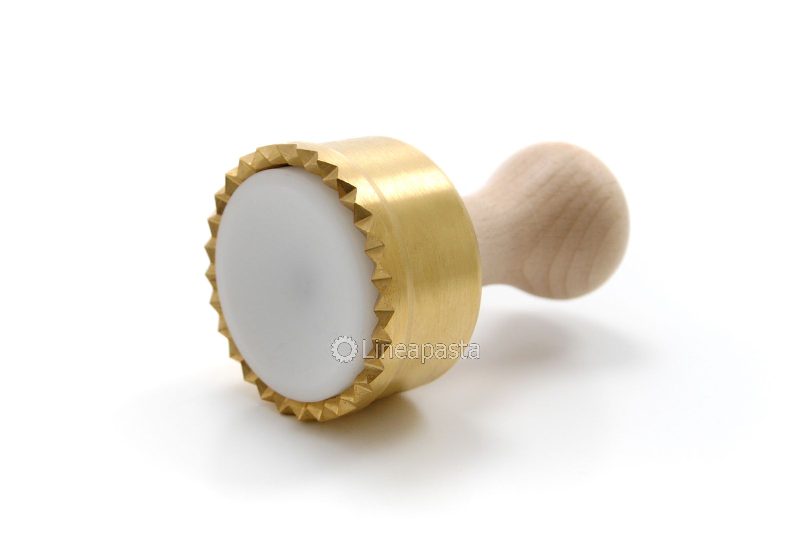 Molde de pasta para raviolis redondos de 65mm de diámetro. El molde de forma circular está equipado con un práctico expulsor de plástico, que se inserta dentro de una parte afilada de latón. El mecanismo de expulsión automática hace que la creación de raviolis sea fácil y rápida.