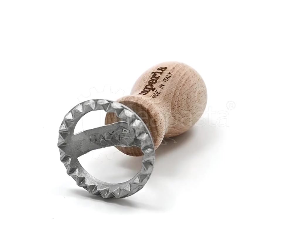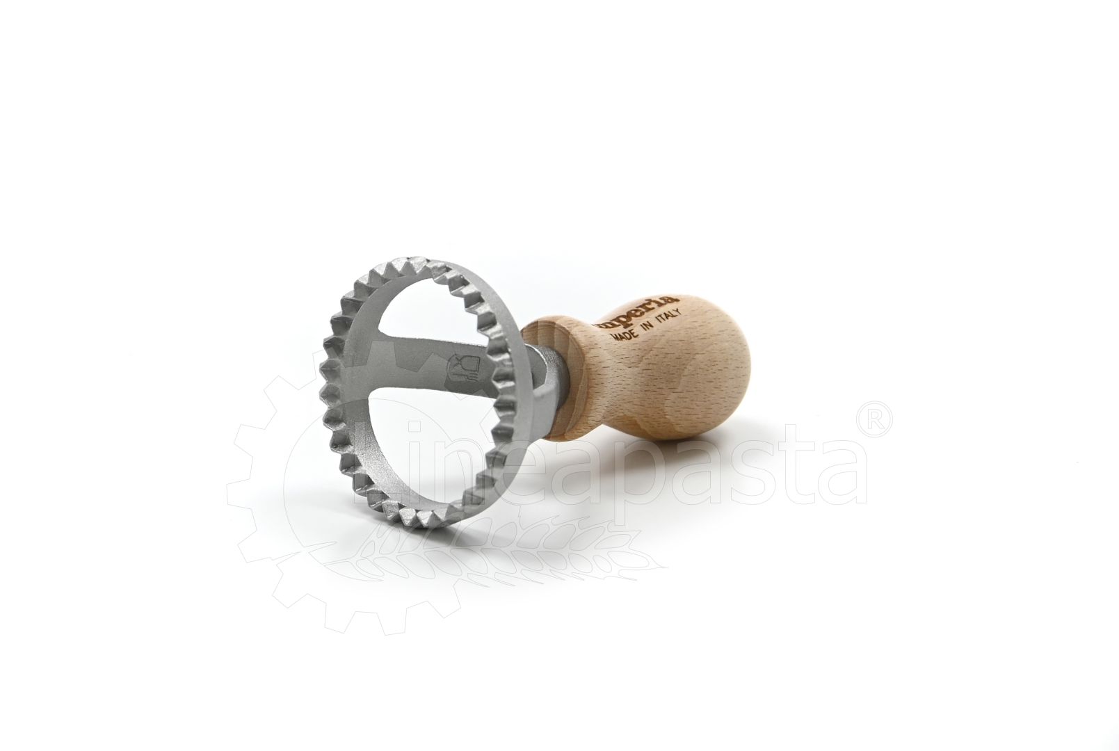 Molde Imperia para hacer raviolis redondos de 58 mm de diámetro. Este cortador de raviolis está equipado de un cómodo mango de madera, mientras que la parte afilada está fabricada en aluminio y permite un corte preciso de la lámina, acelerando los tiempos de producción de los raviolis.