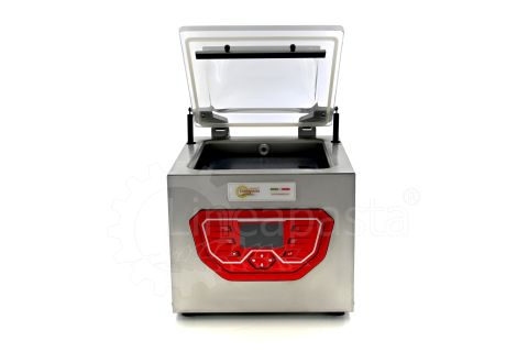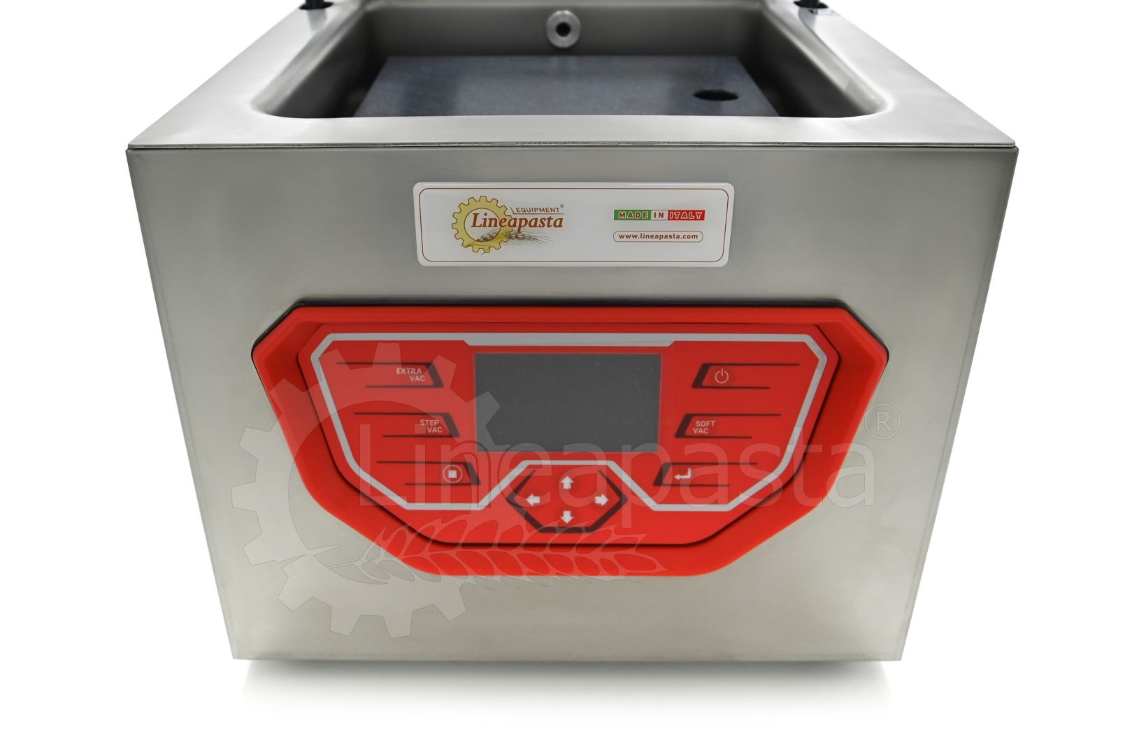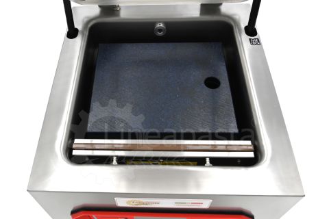 Machine d’emballage à cloche CC400 avec barre de soudure, idéale pour le conditionnement prolongé de la pâte car elle est équipée de la fonction optionnelle avec atmosphère modifiée (ATM) qui permet de préserver la forme et les caractéristiques du produit. Le conditionnement sous atmosphère modifiée sur machine à cloche est indispensable car il évite l’écrasement de la pâte qui se créerait avec la création du vide dans l’emballage.