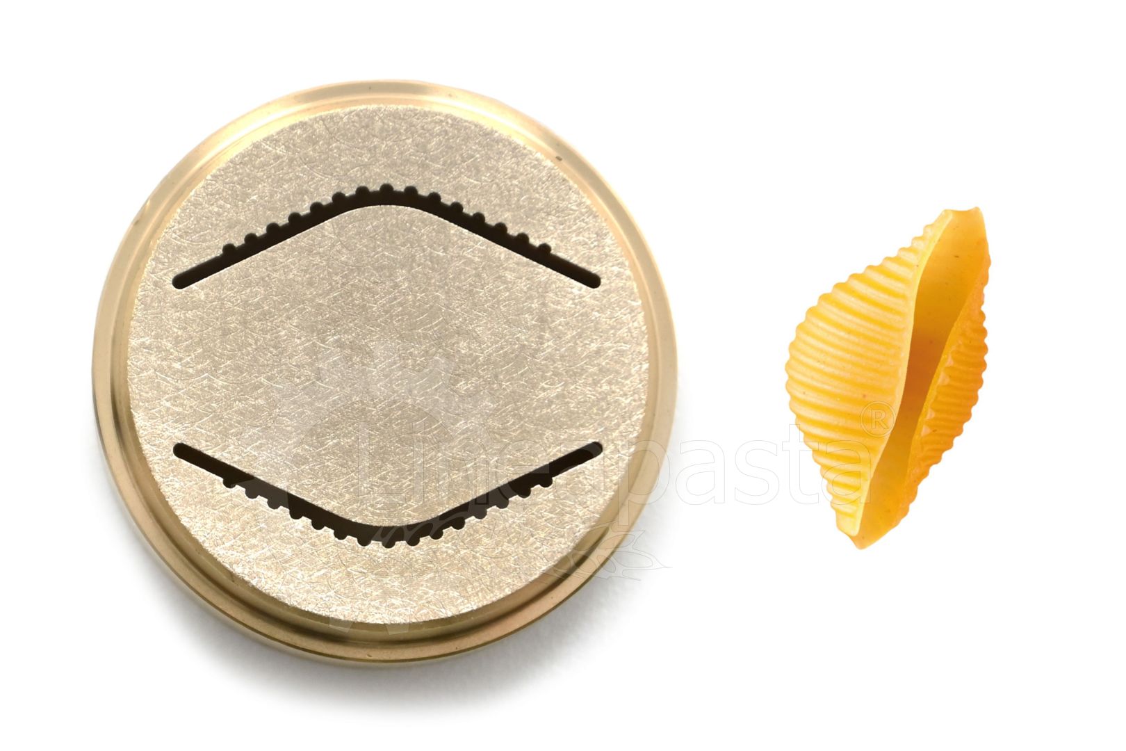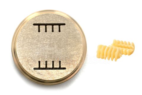 Pâte feuilletée 130 mm à épaisseur réglable - Pâte feuilletée 105x0,6 mm / 105x0,8 mm / 105x1,2 mm - Biscotti - Bucatini Ø3,6x1,1 mm - Calamarata Ø28x1,5 mm - Canestroni rigati Ø26 mm - Cannelloni Ø28x0,8 mm - Caserecce 9 mm - Cavatelli 24x1 mm - Chicche di patate Ø13 mm - Conchigliette da brodo 13 mm - Conchigliette rigate 18 mm - Conchiglie rigate 32,5 mm - Fiocco di neve 27 mm - Fusilli 3P 6,5 mm / 10 mm - Fusilli calabresi 5,4x1,4 mm - Fusilli rigati 3P 10 mm - Fusilloni giganti 16,5 mm - Gnocchi 24,5 mm - Gnocchi napoletani 26 mm - Gnocchi sardi 24x1 mm - Gramigna Ø3,5 mm - Grissini Ø6 mm / Ø11 mm - Grissini POM Ø6 mm / Ø12 mm - Linguine 3,6x1,5 mm - Linguine rigate 5x2,1 mm - Maccheroni siciliani 7x2 mm - Maccheroni bugiardi Ø11 mm - Mafalde 25,5 mm - Mafaldine 18 mm - Malloreddus 25x1,1 mm - Mezze maniche rigate Ø20 mm - Occhi di lupo rigati Ø15,5 mm - Orecchiette grandi 22 mm - Paccheri lisci Ø25x1,5 mm - Paccheri rigati Ø25x1,5 mm - Pappardelle 14,5x0,6 mm / 14,5x1,15 mm / 20x0,8 mm / 20x1 mm - Pappardelle rigate 14,7 mm - Passatelli Ø7 mm - Penne rigate 10 mm (uniquement découpe manuelle) - Pici toscani Ø4,2 mm - Pizzoccheri 8,5x2 mm - Radiatori 19 mm / 26 mm - Ricciolo 13,5 mm - Rigatoni Ø12x1,1 mm - Rotini 2P 10,8 mm - Ruote a fiore Ø25 mm - Ruote rigate Ø13 mm - Scialatielli 5x3 mm / 5,6x3,6 mm - Sedanini rigati Ø6,5 mm / Ø8,5 mm - Spaghetti alla chitarra 2x2 mm / 2,5x2,5 mm / 3,2x3,2 mm / 4x4 mm - Spaghetti Ø2,5 mm - Spaghettoni Ø3,2 mm - Tagliatelle 6x0,6 mm / 6x0,8 mm / 6x1 mm / 7x1,3 mm / 8x0,6 mm / 8x0,8 mm / 8x1 mm - Tagliolini 3x1 mm - Torchietti 9x1,1 mm - Treccia 8,5 mm - Tripoline 10,8 mm - Ziti lisci Ø7,3x1,15 mm