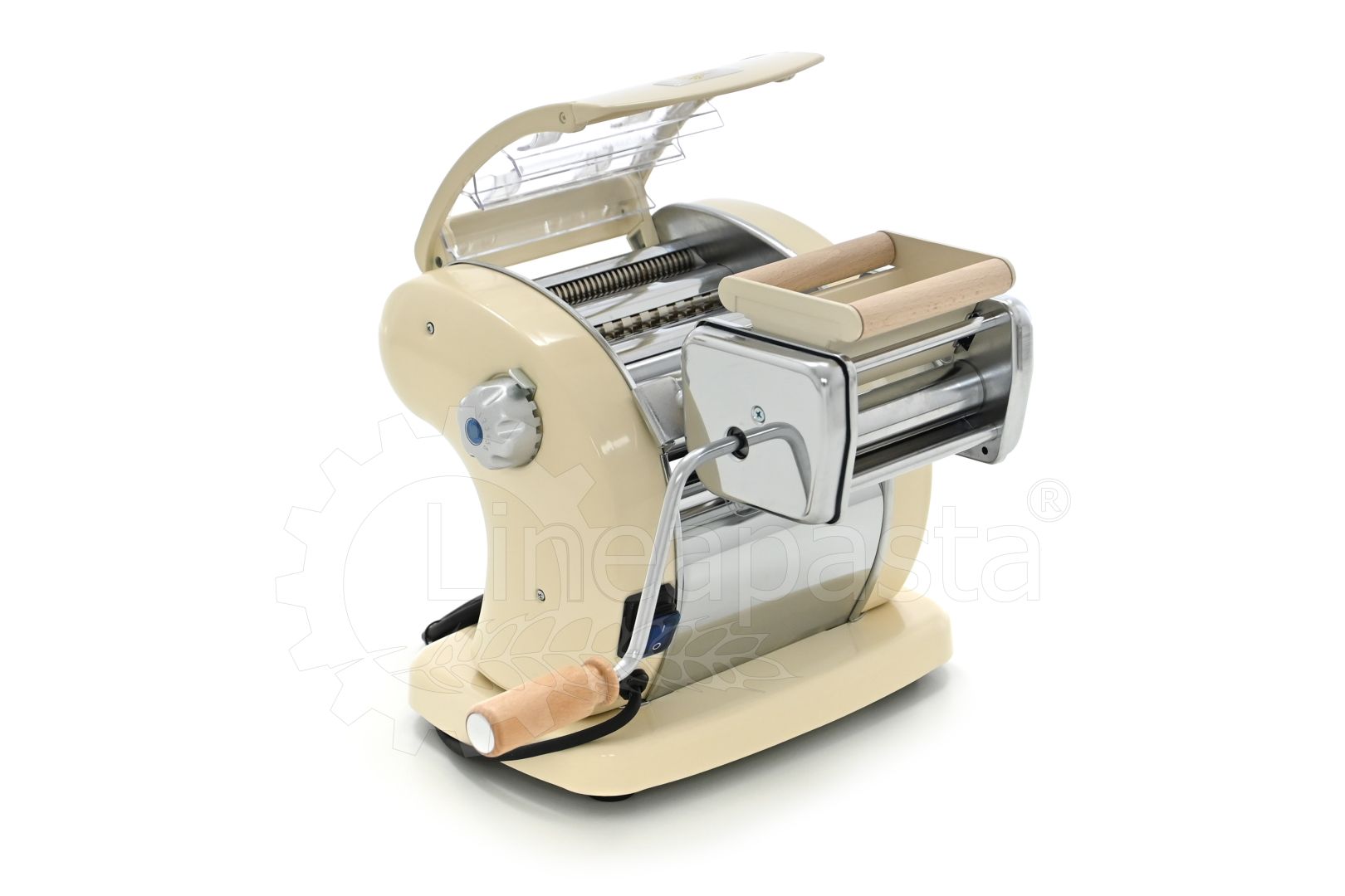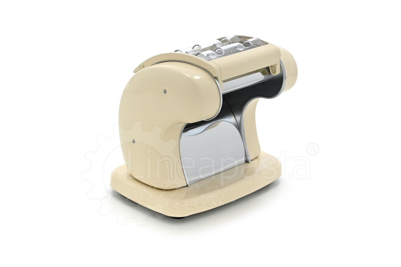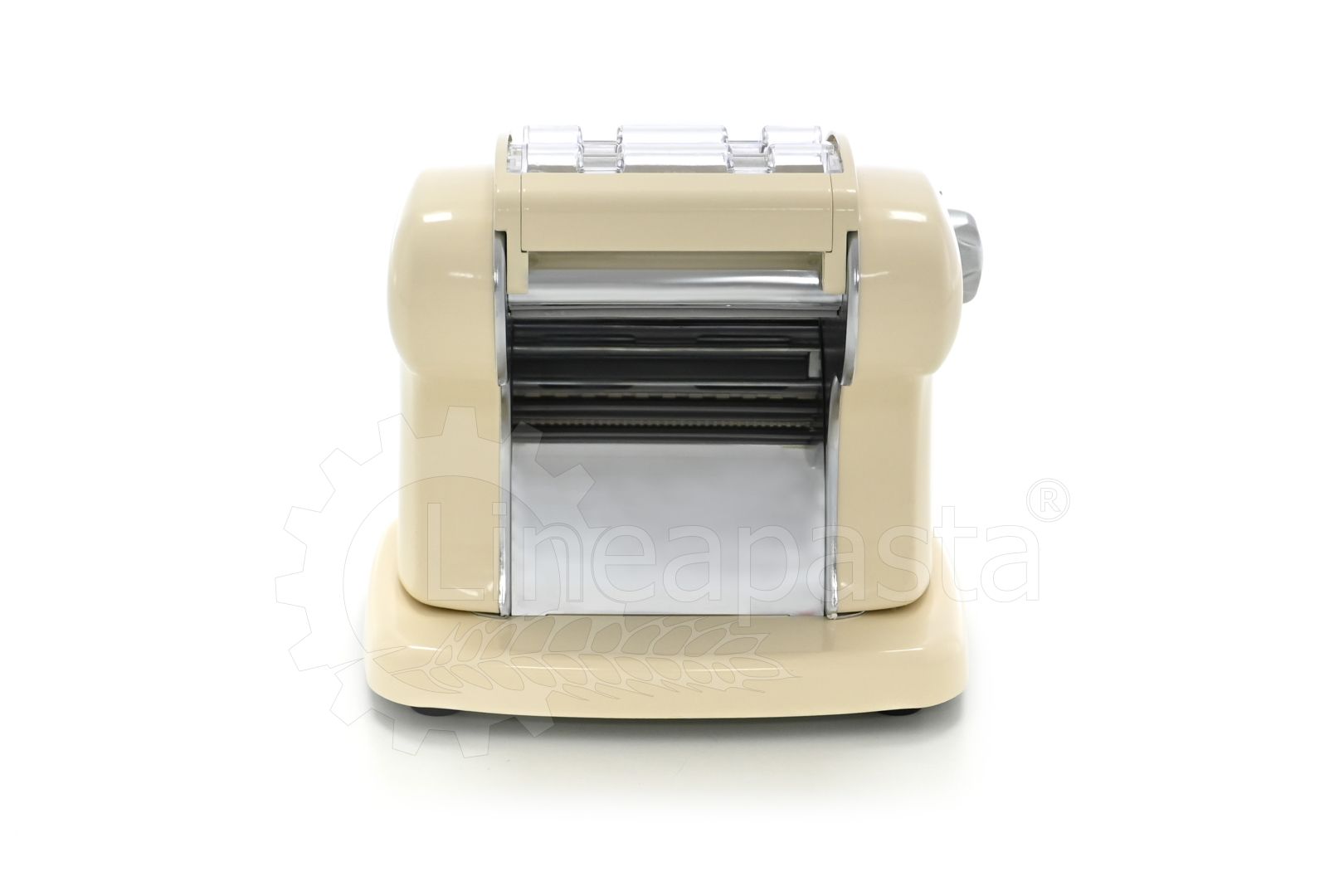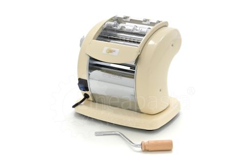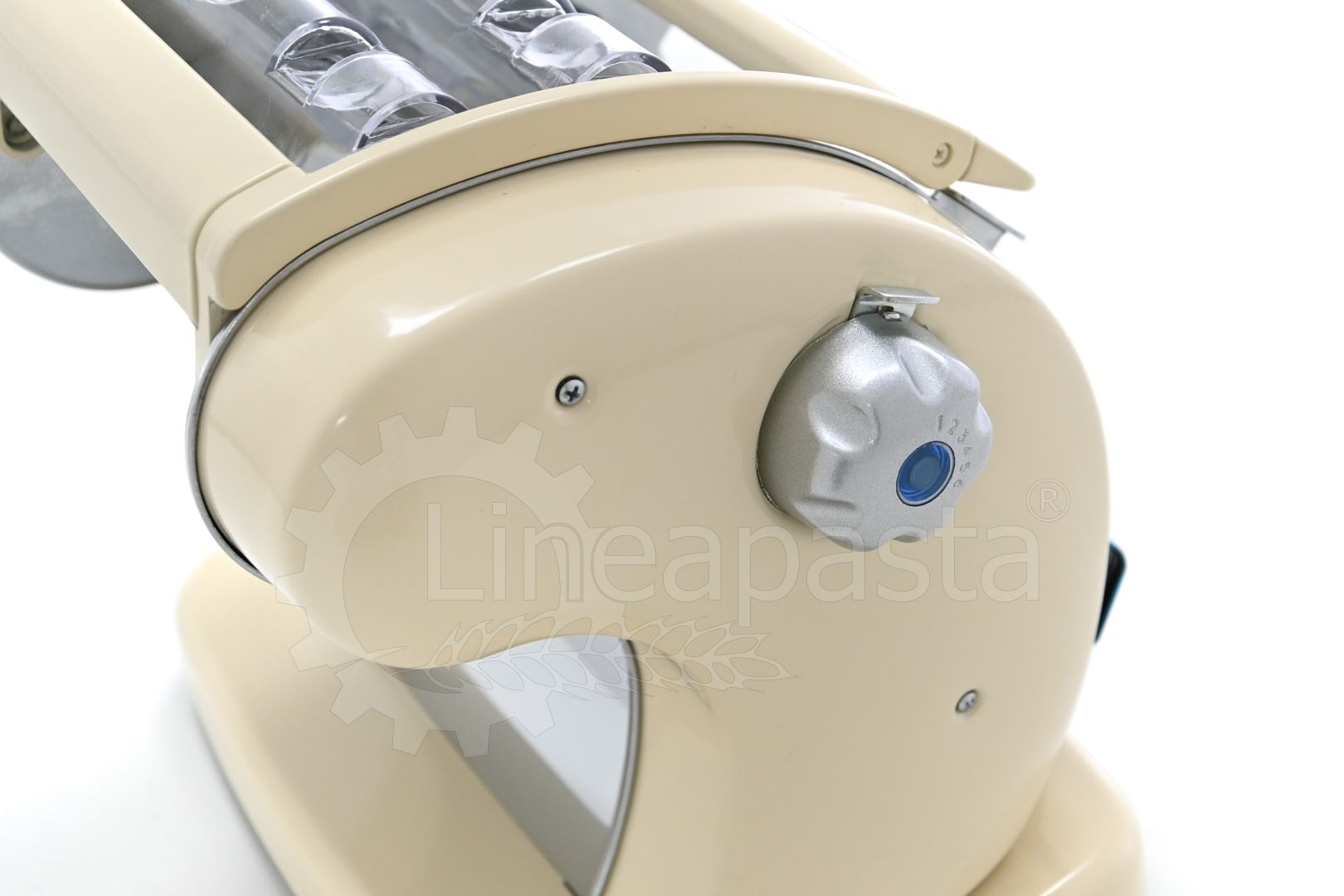 Imperia PastaPresto Crème (Cod.4701 / 4721), élégante et fonctionnelle, est la nouvelle laminoir motorisée Imperia pour la maison. Son design raffiné s'accorde avec la praticité et la tradition des bonnes pâtes faites à la maison. La machine est équipée de rouleaux de 150 mm et d’un moteur électrique, qui permet de réaliser la pâte feuilletée en six épaisseurs différentes et deux types de pâtes: Tagliolini 2 mm et Fettuccine 6,5 mm.