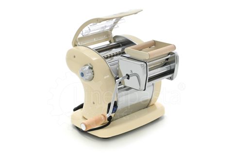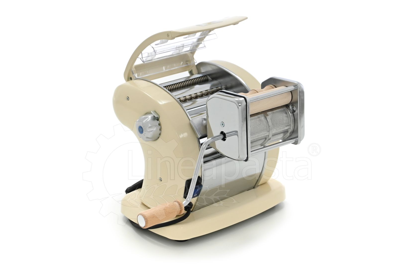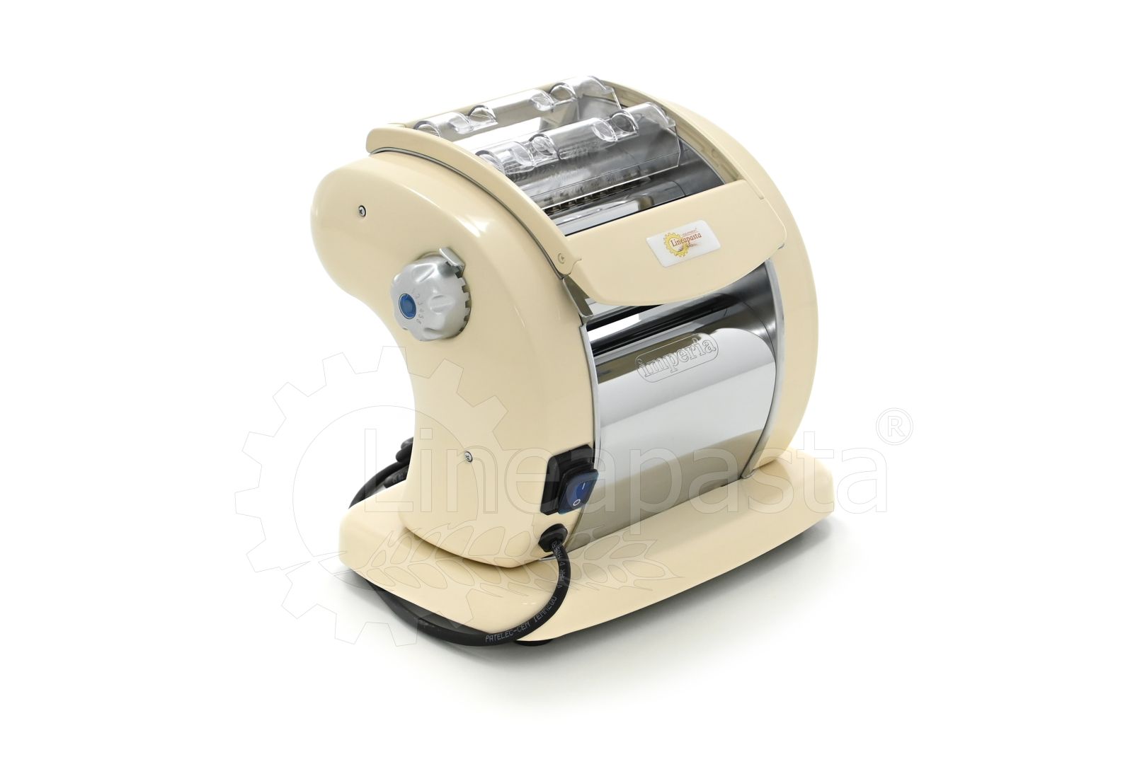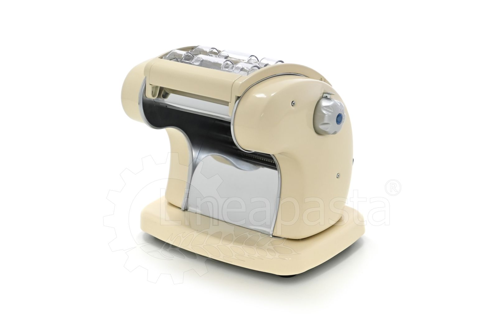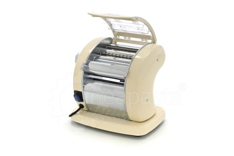 Imperia PastaPresto Crème (Cod.4701 / 4721), élégante et fonctionnelle, est la nouvelle laminoir motorisée Imperia pour la maison. Son design raffiné s'accorde avec la praticité et la tradition des bonnes pâtes faites à la maison. La machine est équipée de rouleaux de 150 mm et d’un moteur électrique, qui permet de réaliser la pâte feuilletée en six épaisseurs différentes et deux types de pâtes: Tagliolini 2 mm et Fettuccine 6,5 mm.