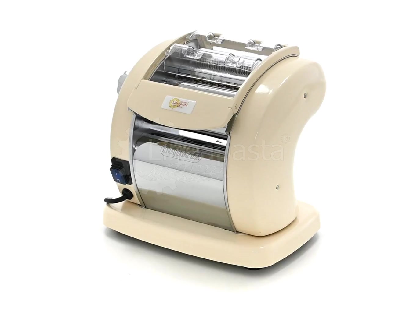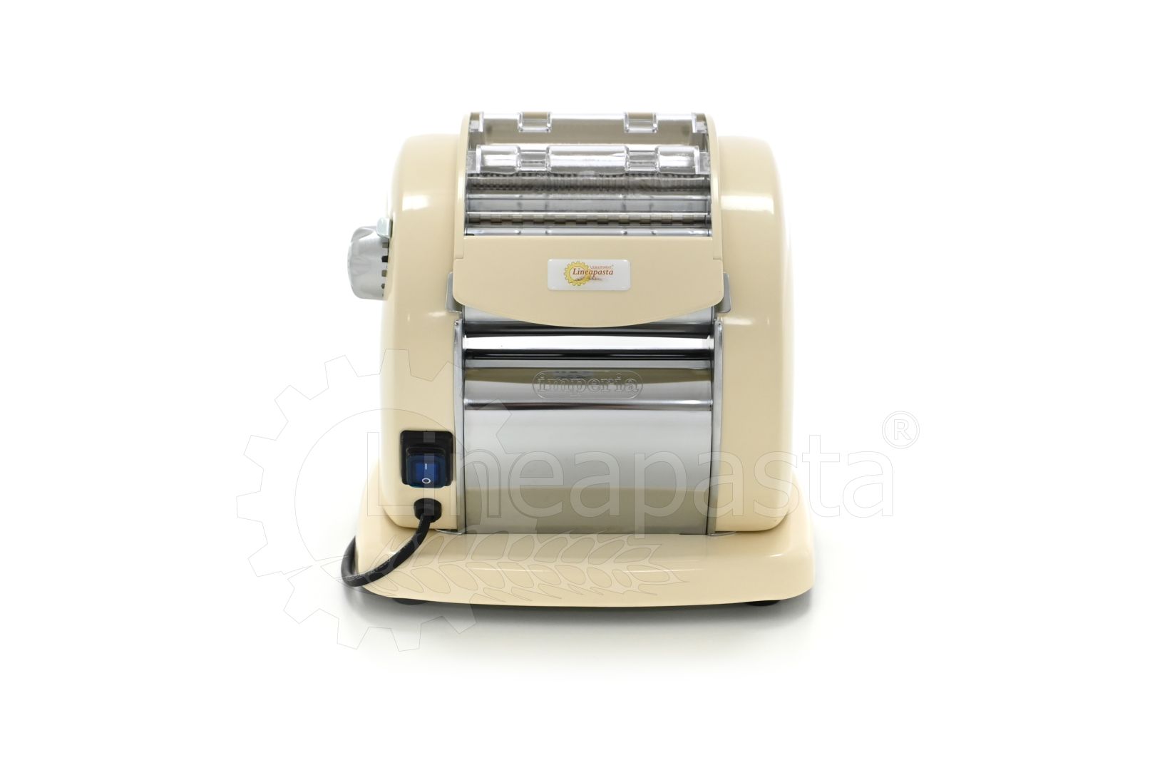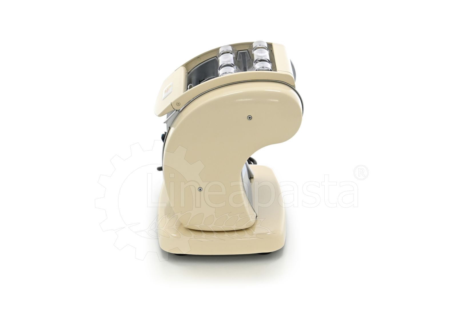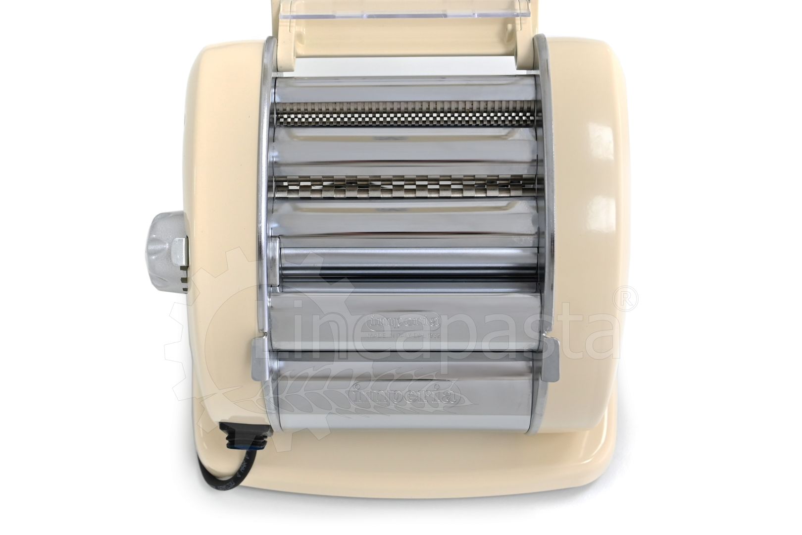 Imperia PastaPresto Crème (Cod.4701 / 4721), élégante et fonctionnelle, est la nouvelle laminoir motorisée Imperia pour la maison. Son design raffiné s'accorde avec la praticité et la tradition des bonnes pâtes faites à la maison. La machine est équipée de rouleaux de 150 mm et d’un moteur électrique, qui permet de réaliser la pâte feuilletée en six épaisseurs différentes et deux types de pâtes: Tagliolini 2 mm et Fettuccine 6,5 mm.