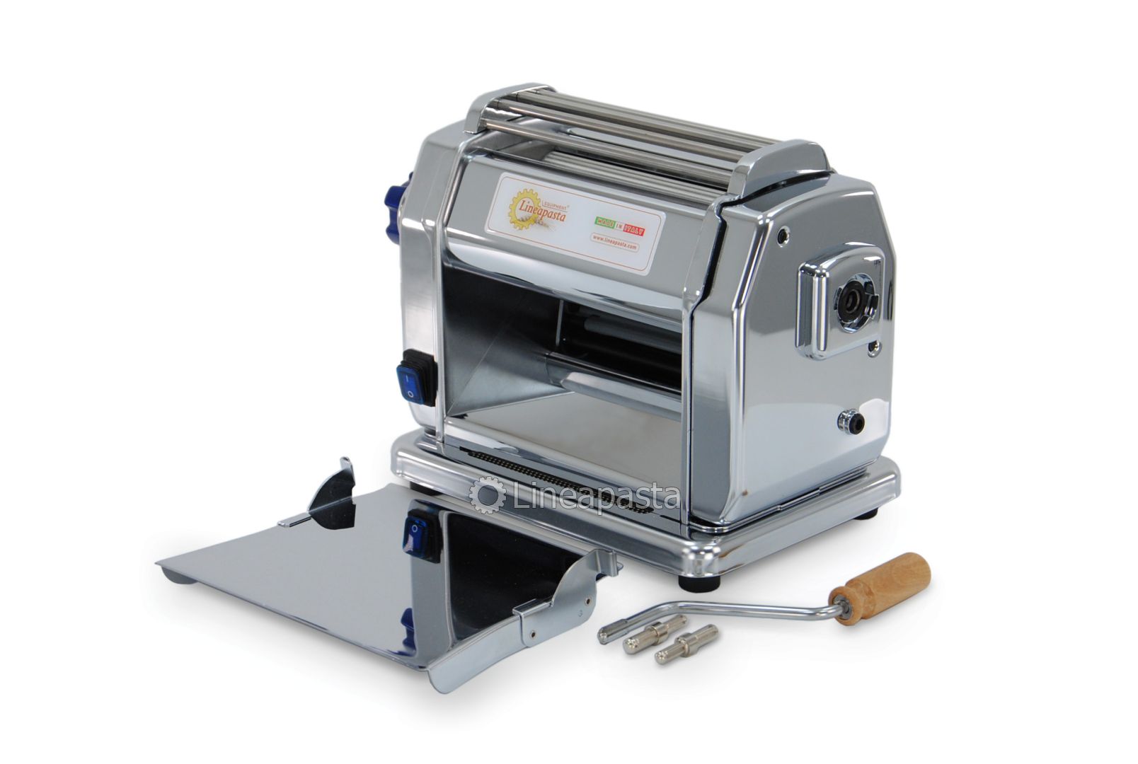 La laminoir Imperia Restaurant Électrique RMN est fabriquée en Italie avec grande habileté artisanale qui lui confère robustesse et durée de vie. Avec l'aide de ses accessoires optionnels (à acheter séparément), il est possible de réaliser une infinie variété d'entrées à base de pâtes: spaghetti, capelli d'angelo, tagliatelle, trenette, fettuccine, lasagnette etc. La Restaurant électrique est disponible en deux versions différentes: avec des rouleaux lisses (Cod. 036 / Cod. 038) pour obtenir une pâte plus lisse et homogène avec un aspect plus "industriel" ou avec des rouleaux rugueux (Cod. 6036 / Cod. 6038) pour obtenir un effet plus fait maison, reproduisant le résultat qui serait être obtenu avec le rouleau à pâtisserie.