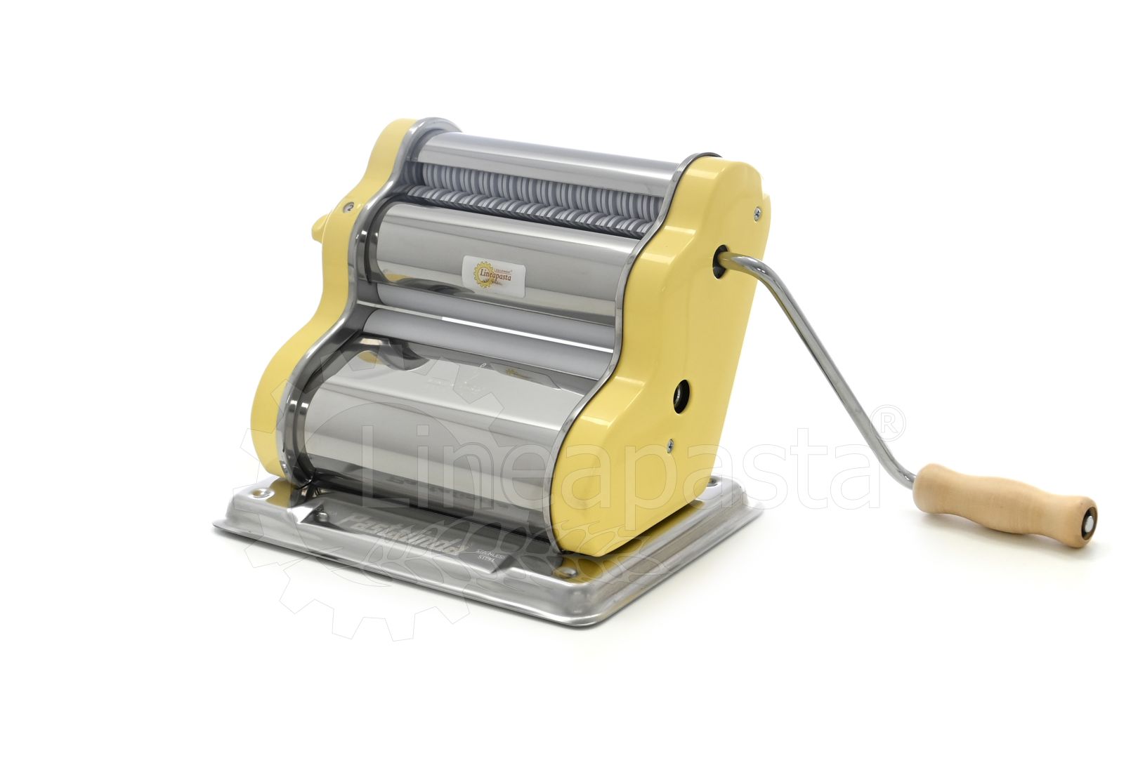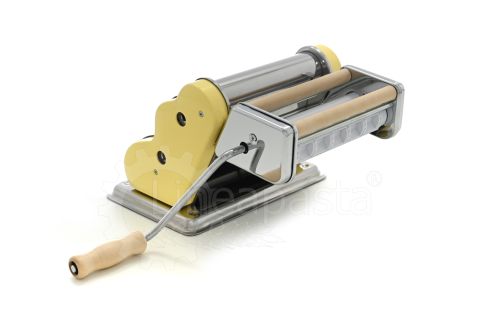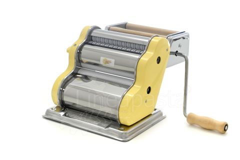 Machine à pâtes fraîches Pastalinda Classica 200 Jaune équipée de rouleaux en acier inoxydable de 200 mm. Grâce au sélecteur pratique, il est possible d'obtenir 9 épaisseurs de feuilles et 2 modes de coupe. Le laminoir Classica 200 vous permet de préparer facilement et rapidement une feuille de pâtes jusqu'à 20 cm de large, des Tagliolini de 2,5 mm et des Tagliatelle de 7 mm. La machine est dotée d'un châssis en acier inoxydable pour plus de solidité et de robustesse, et d'une base antidérapante. La boîte contient une poignée en acier, deux pinces pratiques pour fixer la machine au plan de travail et un manuel d'instructions avec quelques recettes de base. En outre, grâce à l'attache pratique, il est possible de monter l'accessoire pour faire des raviolis carrés de 2,5 cm de côté. Pastalinda Classica 200 est disponible en variantes de couleur: jaune et chrome.
