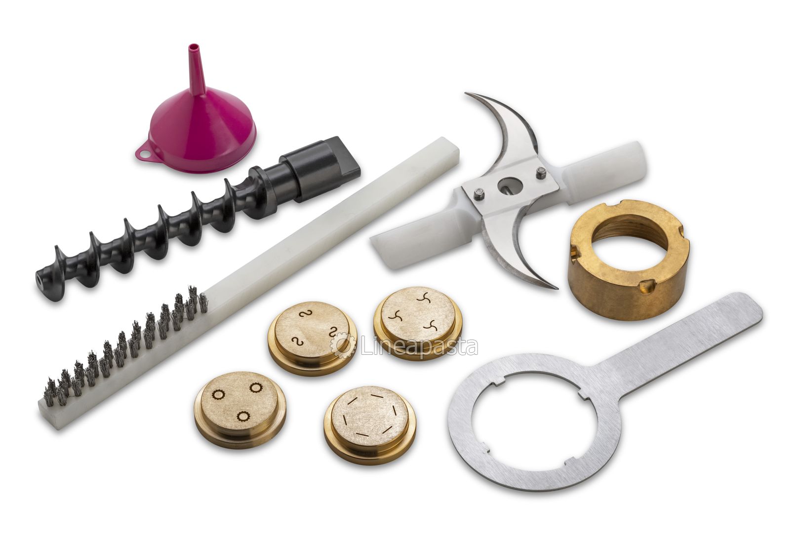 - Couteau électronique pour pâtes courtes (veuillez noter que le couteau coupe-pâtes électronique pour pâtes courtes ne peut pas être utilisé sur certaines filières: formes spéciales qui nécessitent une coupe nette avec le grattoir ou formes qui ont un insert d'extrusion central)
