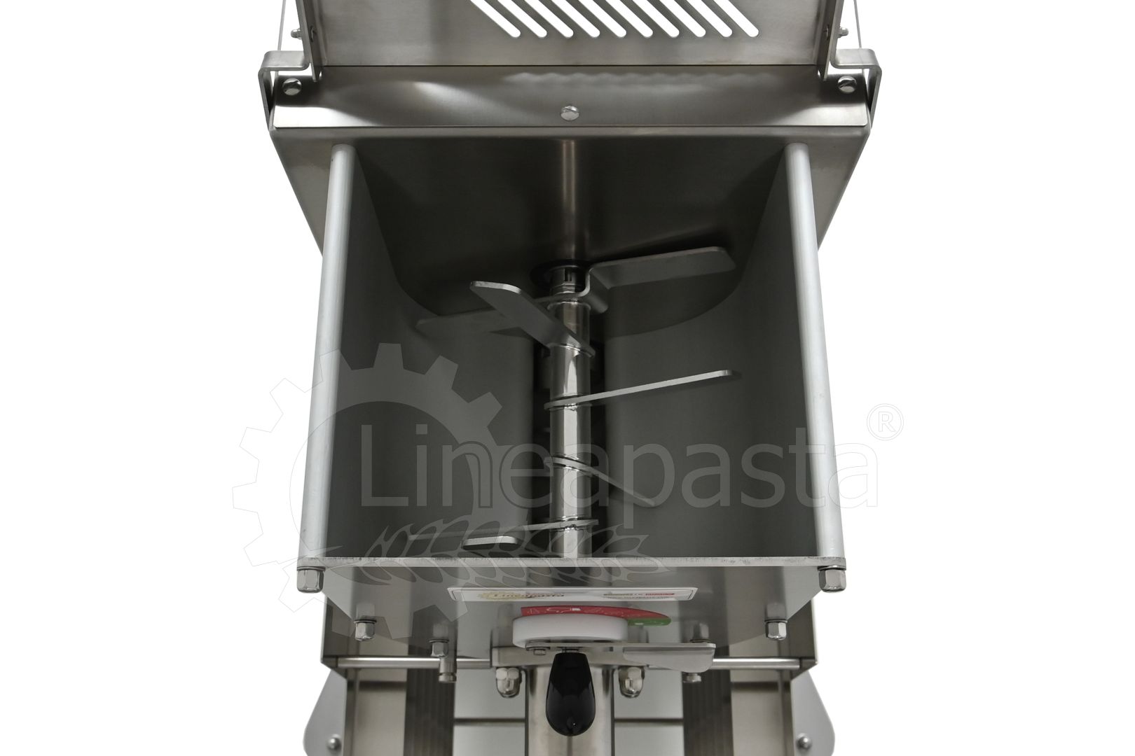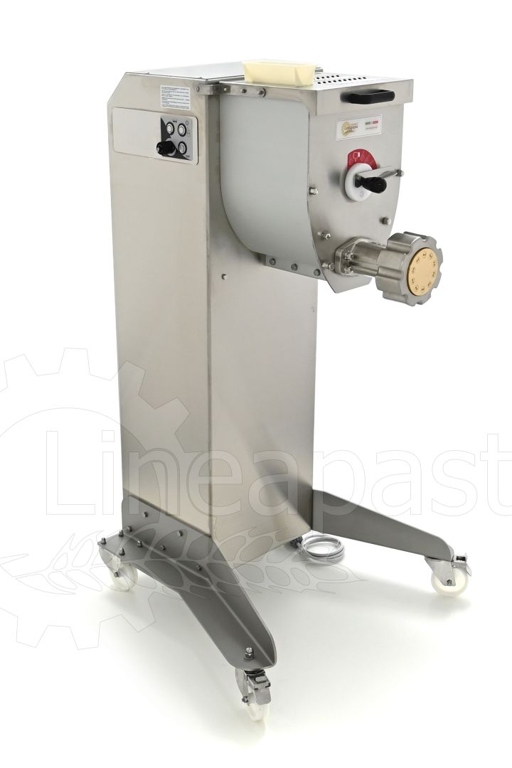 La machine à pâtes Orchestra Ciaopasta 10 est une machine professionnelle pour la production de pâtes fraîches, idéale pour les grands restaurants et les petits ateliers. Cette machine à pâtes extrude la pâte avec n'importe quel type de farine avec ou sans œufs, sans gluten et avec des farines spéciales, en choisissant parmi la vaste sélection de filières en bronze disponibles. Le bac de mélange en aluminium anodisé peut contenir jusqu'à 10 kg de pâte (liquides et farine) et est équipé d'une trémie amovible pour verser les liquides facilement et de manière uniforme. La machine peut être équipée en option d'un coupe-pâtes électronique pour pâtes courtes avec variateur de vitesse. Il est possible d'installer un système de refroidissement par eau qui assure une température d'extrusion constante pendant de longues périodes d'utilisation. La machine est équipée d’un moteur ventilé avec réducteur à bain d’huile et d’un système de ventilation forcée temporisée qui fonctionne même lorsque le moteur est arrêté. La machine Orchestra Ciaopasta 10 est construite conformément aux réglementations nationales et internationales de prévention des accidents et est conçue pour permettre un nettoyage rapide et facile puisque toutes les pièces en contact avec la pâte sont en acier inoxydable.