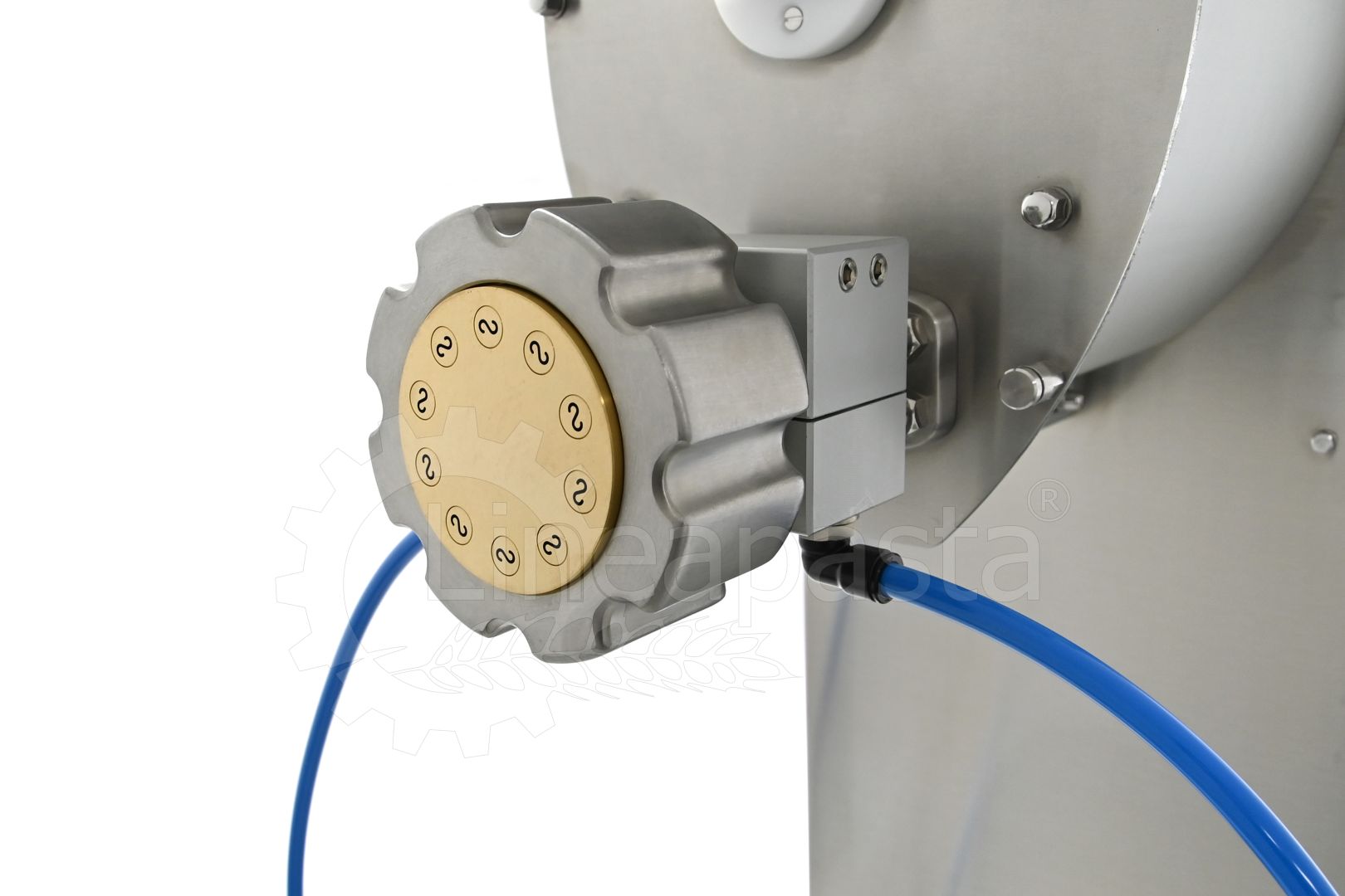 Veuillez noter que le couteau coupe-pâtes électronique pour pâtes courtes ne peut pas être utilisé sur certaines filières: formes spéciales qui nécessitent une coupe nette avec le grattoir ou formes qui ont un insert d'extrusion central.