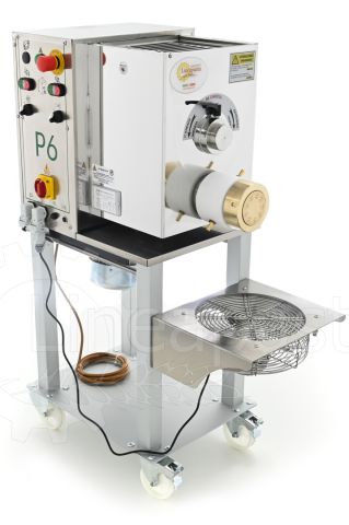 La P6, grâce à ses accessoires optionnels, permet également de réaliser des raviolis doubles feuilles (avec moule fixe grâce au Groupe Ravioli 170mm ou interchangeable grâce au Multipasta) et/ou des gnocchis grâce au Groupe Gnocchi. Son fonctionnement est simple et efficace et le changement d'accessoires est rapide et facile. Elle possède une structure externe en aluminium anodisé et les parties en contact avec les pâtes sont en acier inoxydable. Elle est équipée d'un panneau de commande et est conforme aux réglementations en vigueur en matière de prévention des accidents.