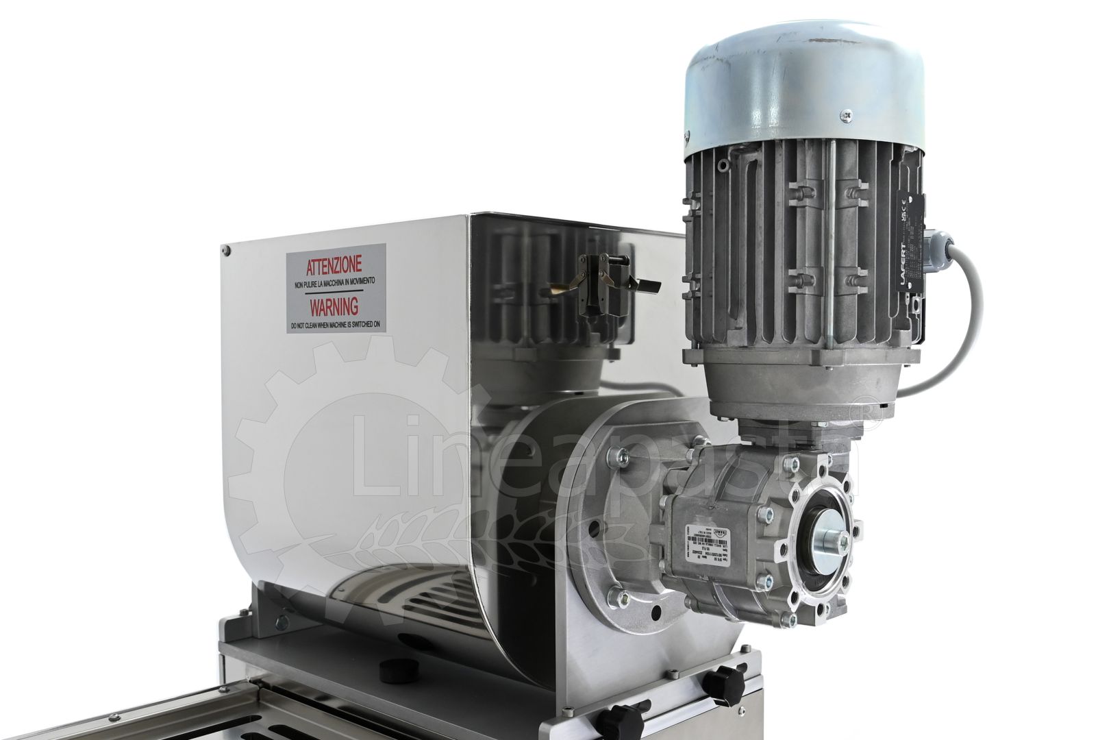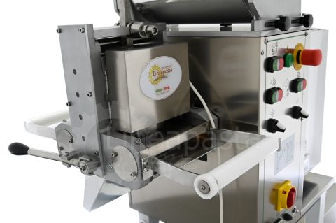 Groupe Ravioli 170mm: permet de préparer des raviolis à double feuille parfaits. Le Groupe Ravioli dispose d'un moule fixe intégré à la machine et une fois le format de production choisi (20X20, 34x40, 40x50, 70x70x70 mm), celui-ci ne peut plus être modifié sauf achat d'un nouveau Groupe Ravioli.