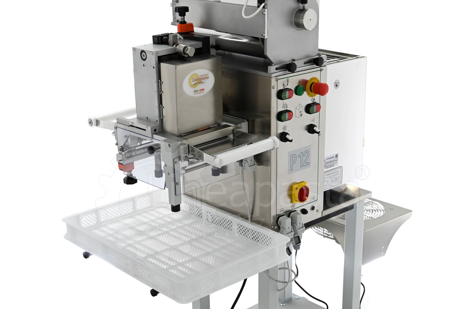 La P12, grâce à ses accessoires optionnels, permet également de réaliser des raviolis doubles feuilles (avec moule fixe grâce au Groupe Ravioli 170mm ou interchangeable grâce au Multipasta) et/ou des gnocchis grâce au Groupe Gnocchi.
