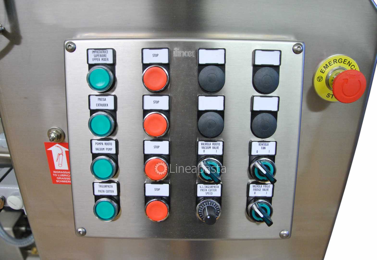 - Variateur électronique (MAC 100V) : permet une capacité de production variable, particulièrement adaptée à la combinaison directe avec des machines pour raviolis, tortellini et cappelletti.