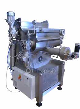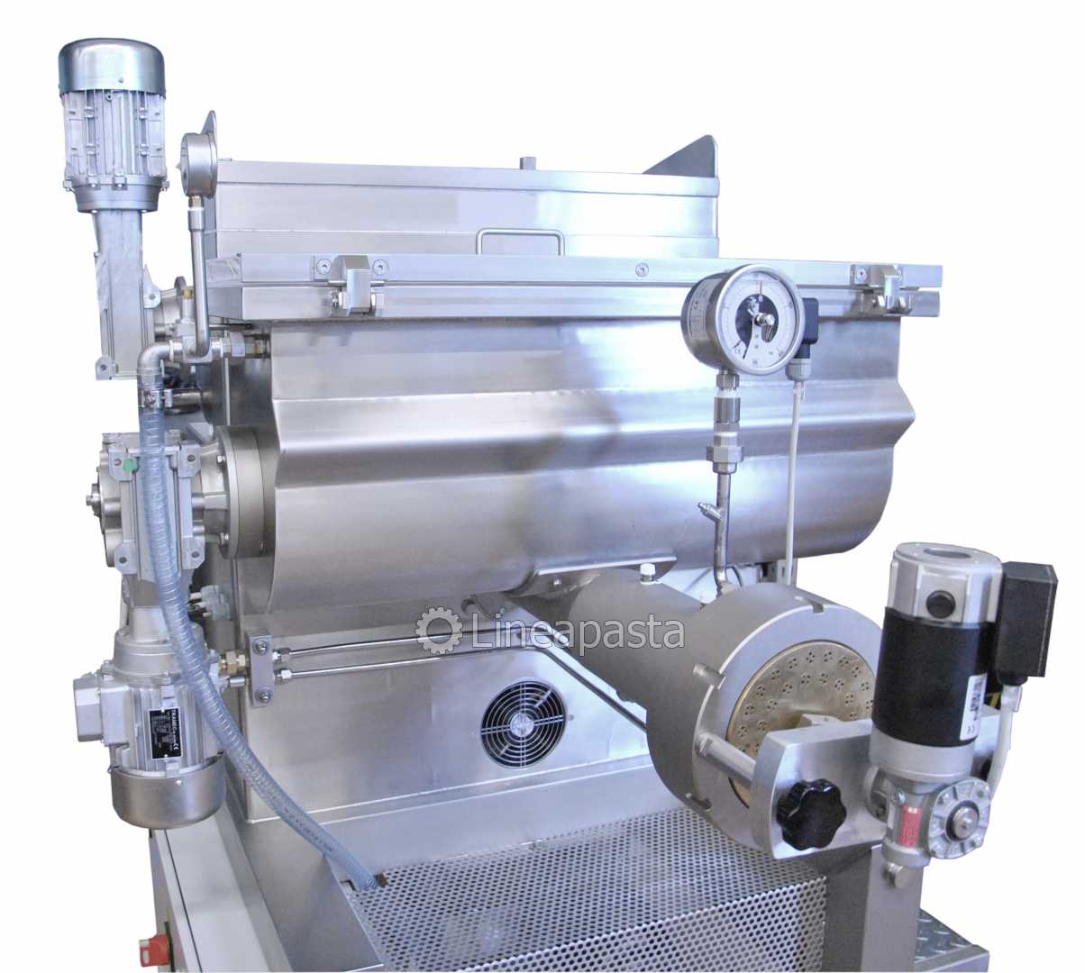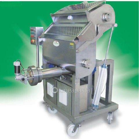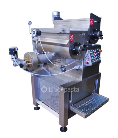 La machine à pâtes fraîches avec sous vide MAC 180SV est un machine hautement fiable avec un fonctionnement simple et efficace; elle est équipée avec double cuve qui permet de pétrir et d'extruder en même temps et donc permet une production à cycle continu de pâtes fraîches, courtes, longues et de pâte feuilletée que peuvent être réalisés avec tout type de farine ou semoule. Elle est équipée d'un dispositif d'extrusion sous vide particulièrement recommandé pour ceux qui souhaitent sécher les pâtes plus tard, car il permet d'obtenir un mélange plus homogène, sans noyau et plus résistant à la casse une fois séchées. De plus, le produit est plus coloré et sans bulles d'air. Les filières peuvent être fournies en laiton-bronze pour produire des pâtes plus rugueuses et plus poreuses, mieux adaptées à la rétention de la sauce, ou en PTFE (Teflon) pour des pâtes plus lisses et plus brillantes. Particulièrement conseillée pour les magasin et les laboratoires, cette machine est équipée d’un panneau de commande et construite entièrement en acier inox et est conformes aux règles de prevention des accidents et aux règles d'hygiène internationales. Elle est livrée avec un coupe-pâte automatique pour pâtes courtes avec variateur de vitesse avec des couteaux à 1, 2 et 4 lames et deux bacs percés.