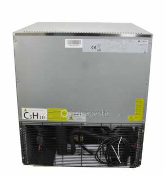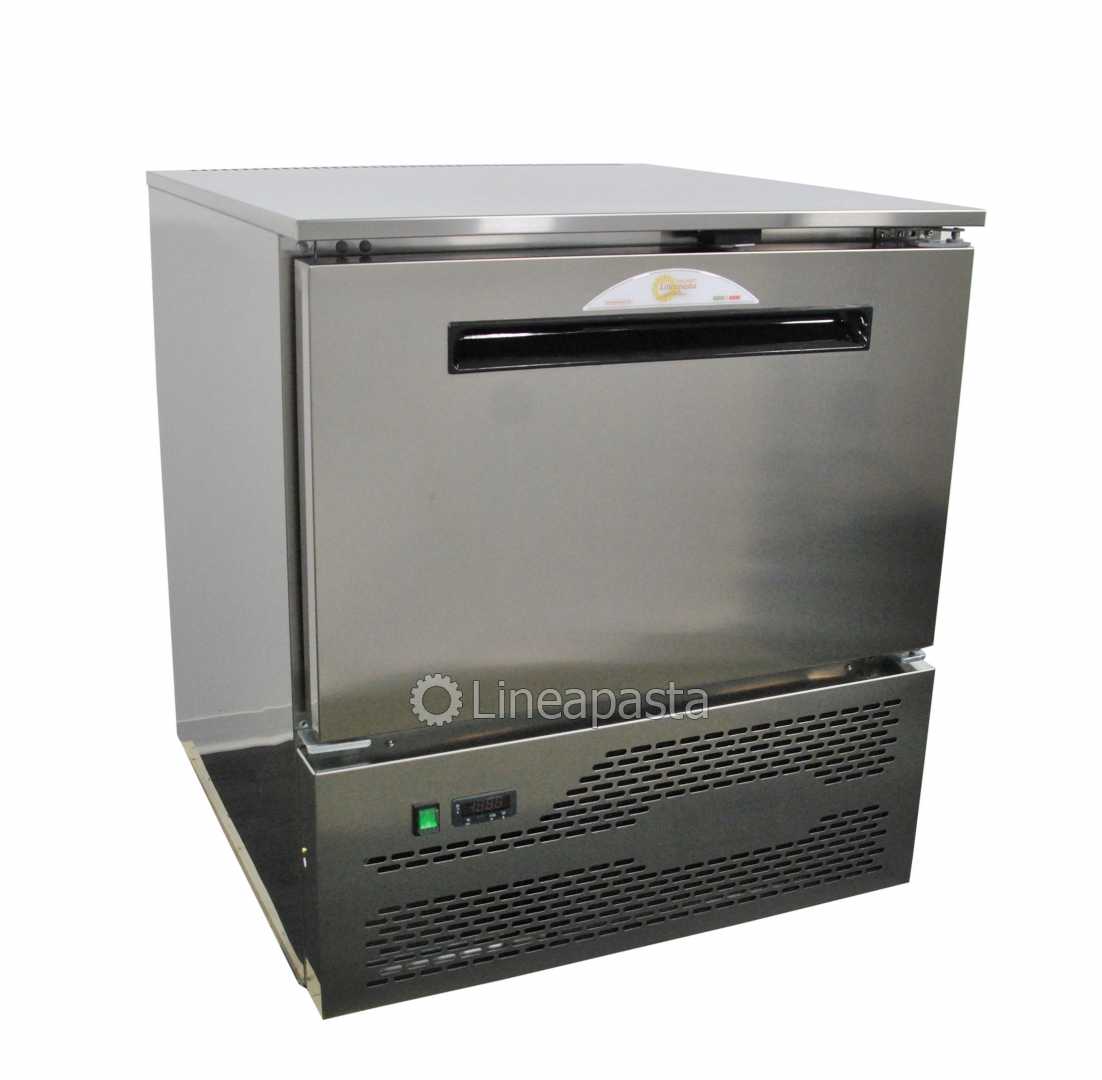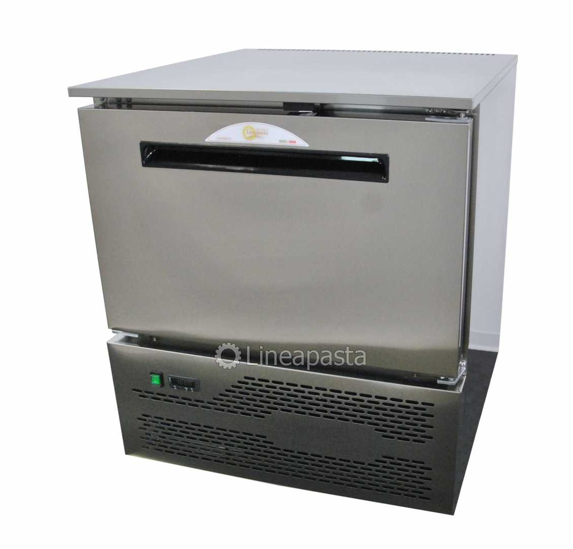 Cellulle de refroidissement rapide ventilé G-D5A avec dégivrage manuel, pieds réglables et 5 supports pour bacs, structure monobloc en acier inoxydable AISI 304 et finition scotch brite satinée externe.