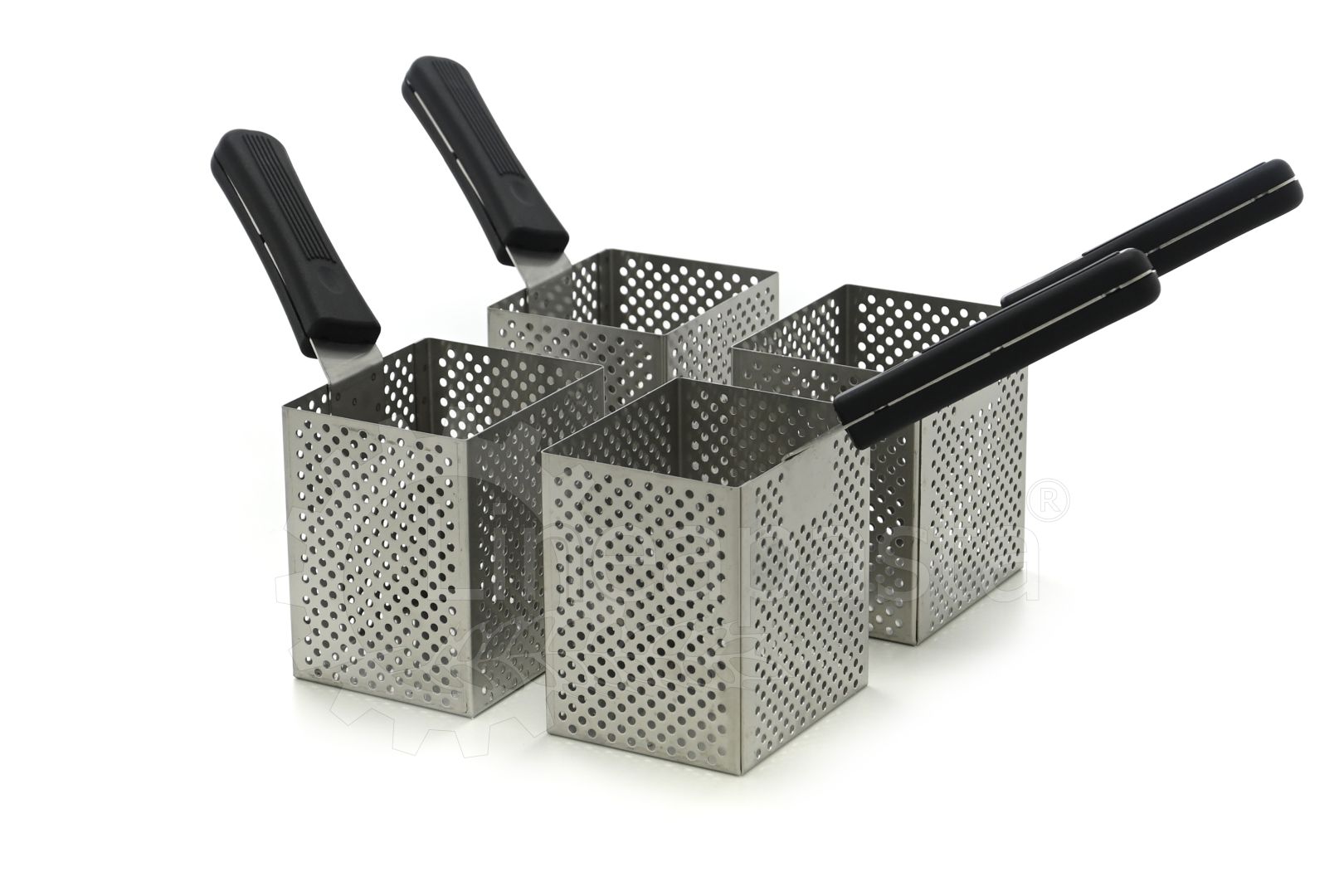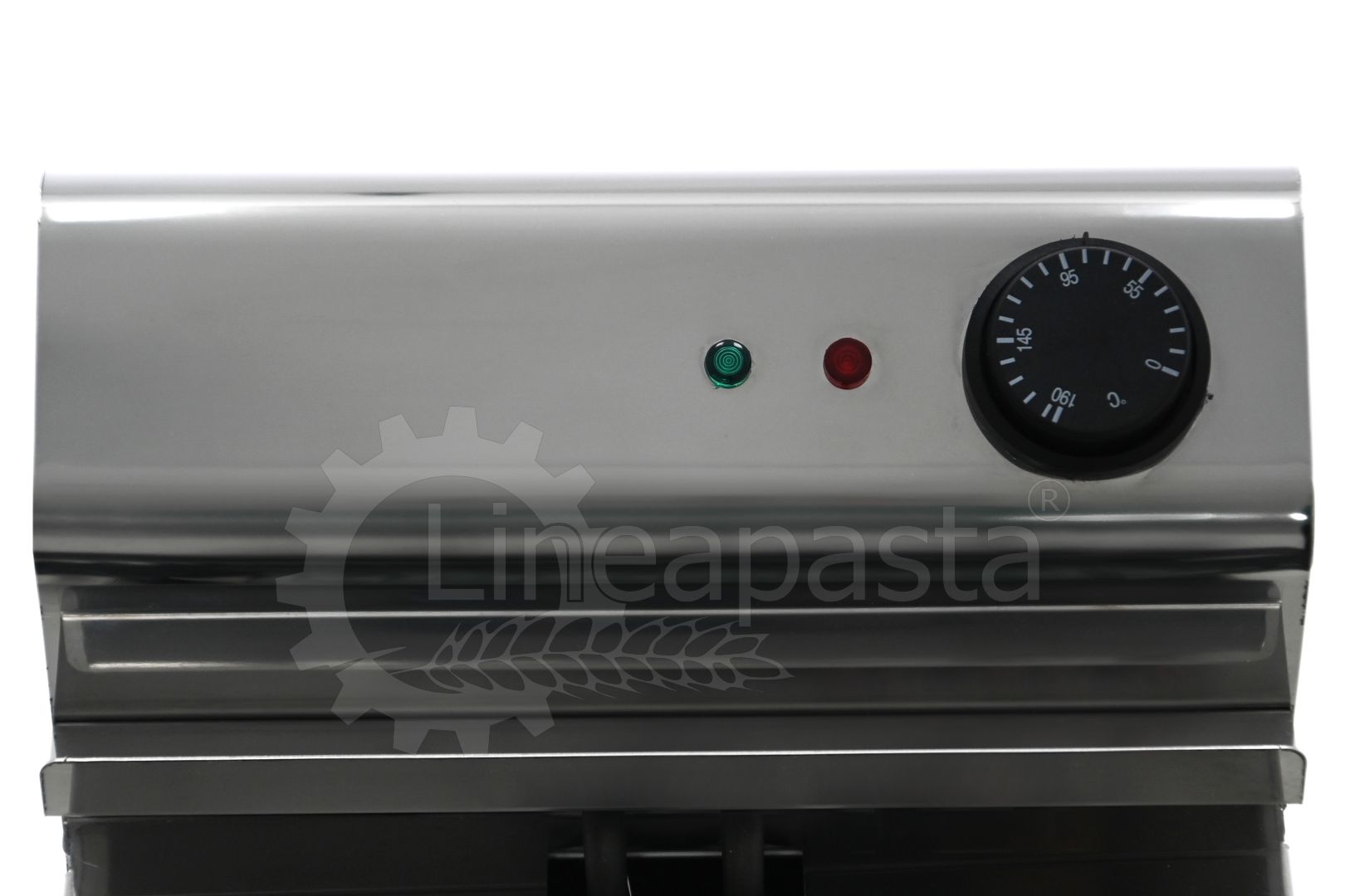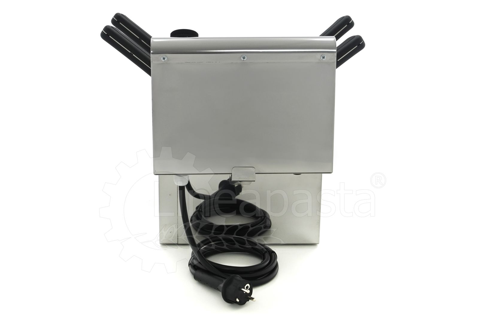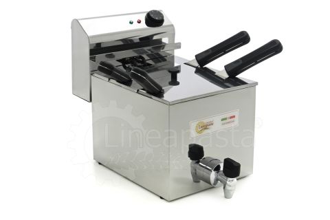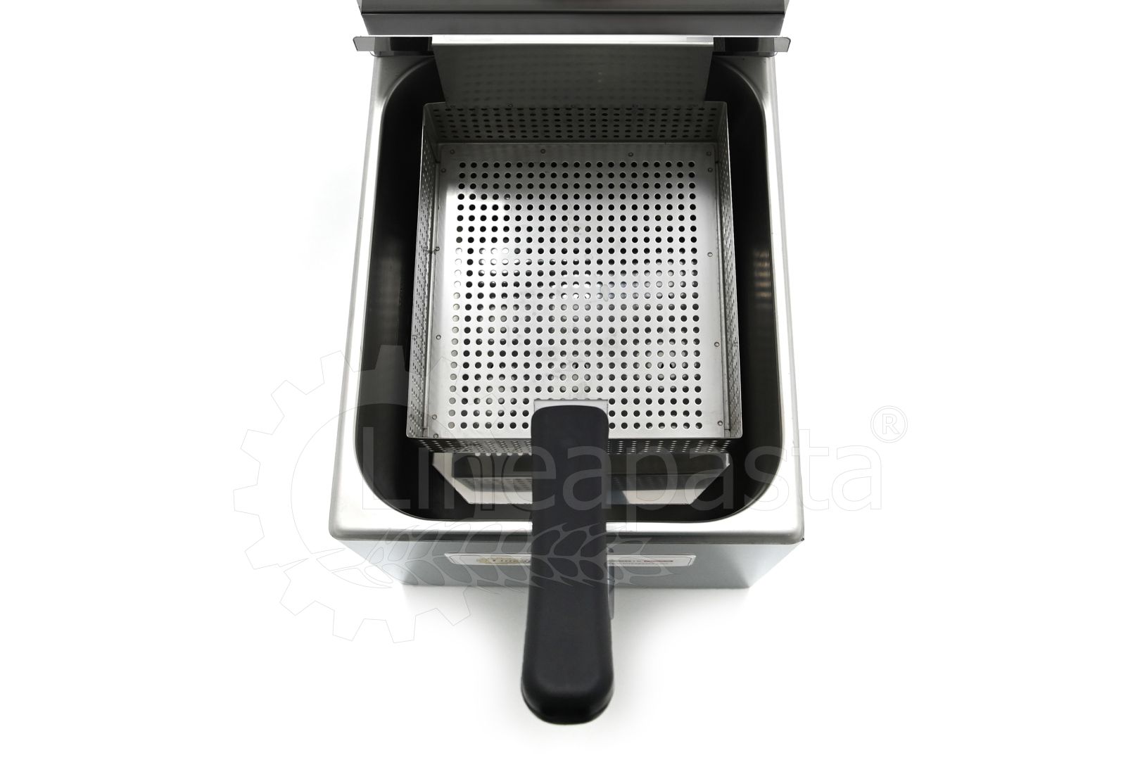 Cuiseur à pâtes avec une capacité de 6 litres d’eau, adapté à la cuisson rapide des pâtes, adapté aux établissements commerciaux tels que les bars ou les activités qui n’ont pas besoin de préparer de grandes quantités de pâtes. La machine entièrement en acier inoxydable est équipée de quatre paniers micro-perforés, qui sont équipés d’une poignée pratique. Ce cuiseur à pâtes est équipé de résistances spéciales avec traitement antirouille et dispose d’un robinet pour l’évacuation de l’eau. Le cuiseur à pâtes dispose d’un thermostat de contrôle et d’une protection thermique de sécurité, qui empêche la température de dépasser le seuil au-delà duquel on risque d’endommager l’équipement. Vous pouvez combiner le cuiseur à pâtes avec un panier plus grand que ceux fournis, ou un panier spécial pour la cuisson à la vapeur.