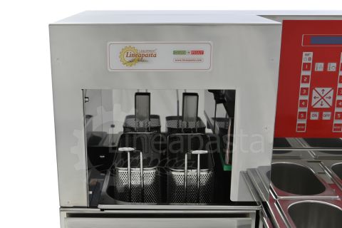 Le cuiseur de pâtes CS est également disponible dans une version à 4 paniers qui permet de préparer jusqu'à 240 portions/h.